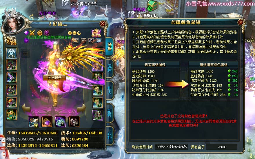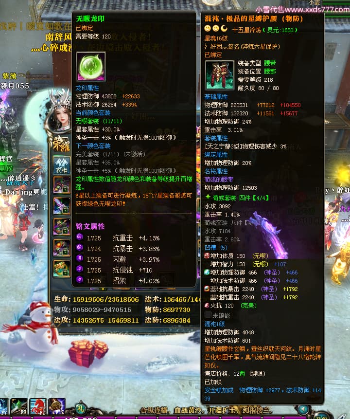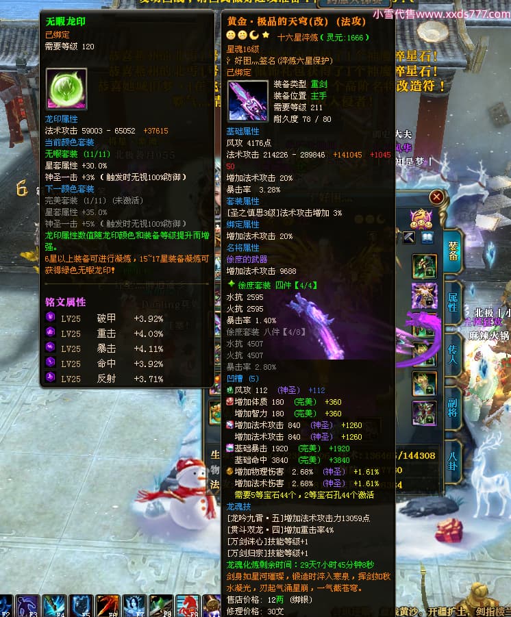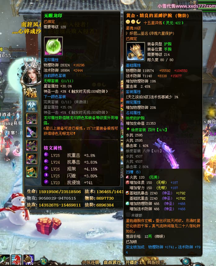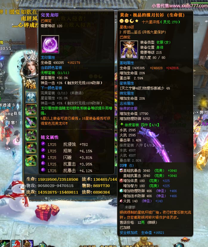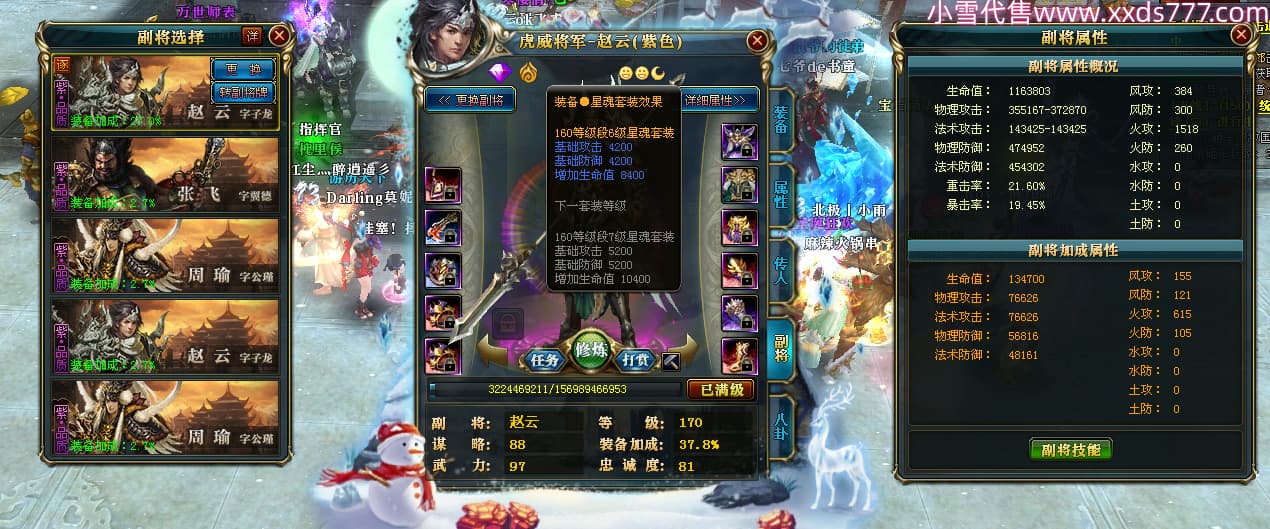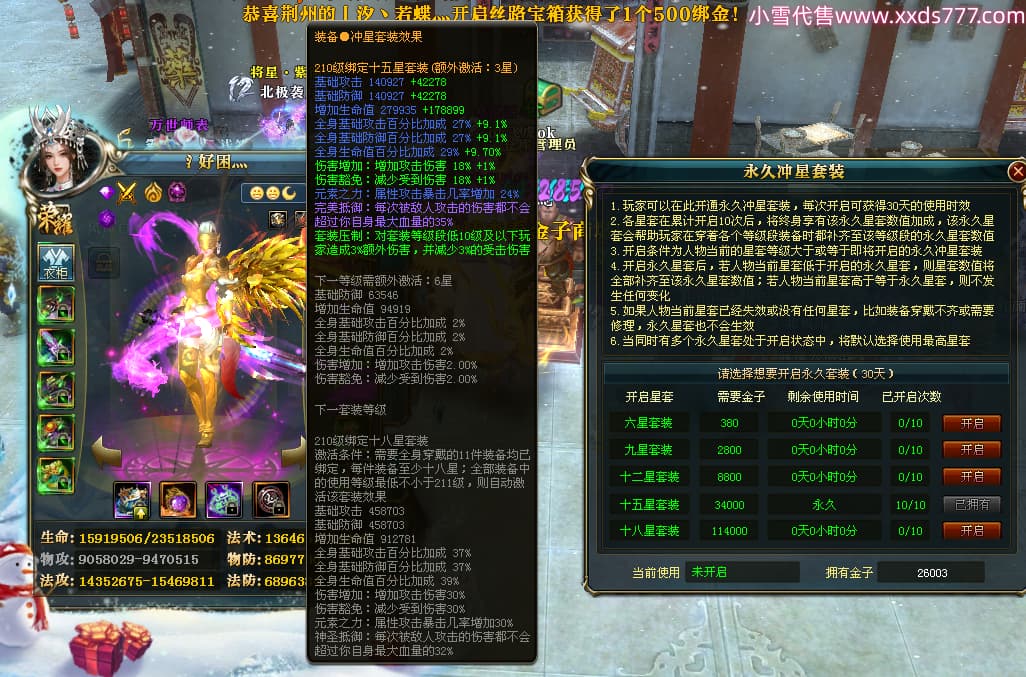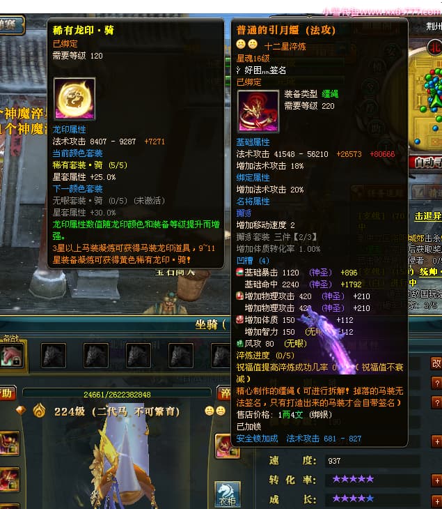 编号W24407 氵好困灬 龙舞九州 荆州 本国排名15名 22564W战力 人物黄金精良橙15X(6件混沌) 传人精良紫15X 副将精良紫15X 马普通橙12X 精良紫15披风 人物星魂16级 传人星魂12级 副将星魂6级 马星魂16级 人物铭刻15级 点亮16星 马铭刻1件14级2件13级其余12级 点亮1件14星其余12星 人物绿龙印(1件紫龙印) 马黄龙印 六等单双属性神圣完美无暇石头 黄蓝孔 已开完永久15星套
