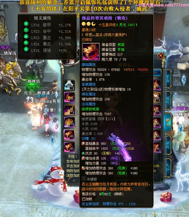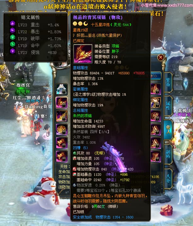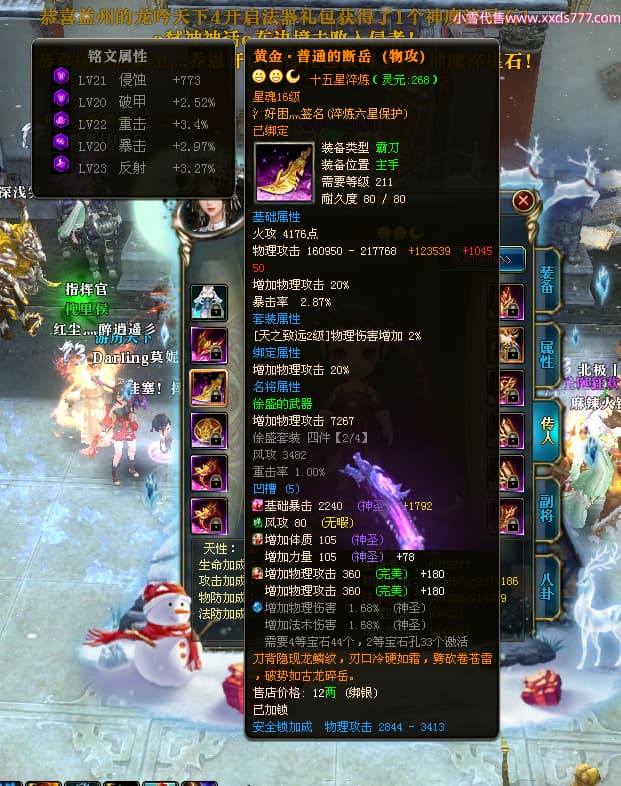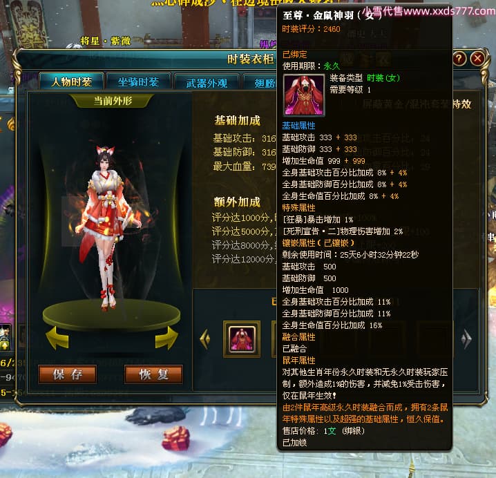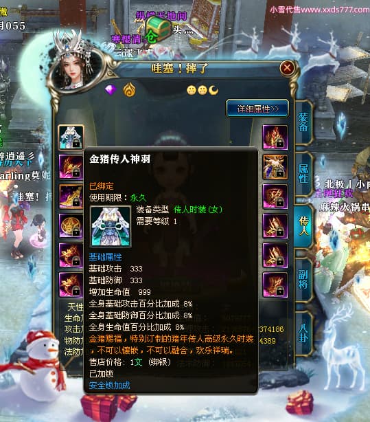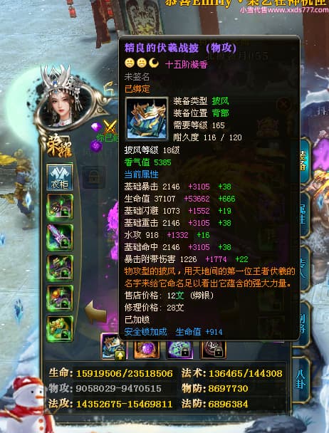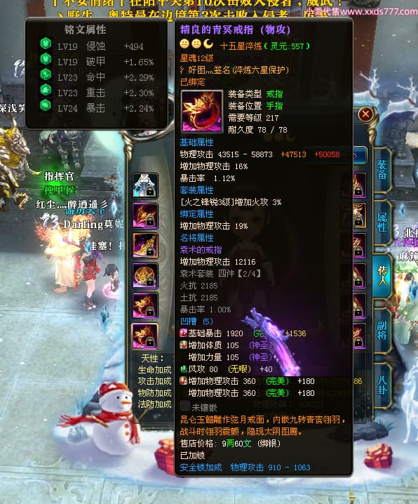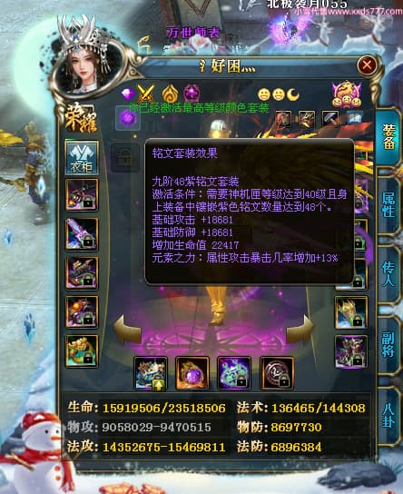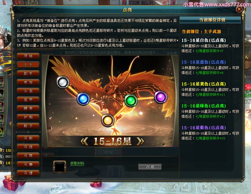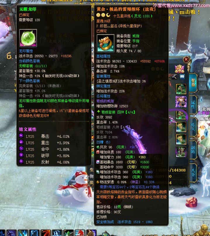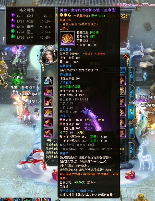 编号W24407 氵好困灬 龙舞九州 荆州 本国排名15名 22564W战力 人物黄金精良橙15X(6件混沌) 传人精良紫15X 副将精良紫15X 马普通橙12X 精良紫15披风 人物星魂16级 传人星魂12级 副将星魂6级 马星魂16级 人物铭刻15级 点亮16星 马铭刻1件14级2件13级其余12级 点亮1件14星其余12星 人物绿龙印(1件紫龙印) 马黄龙印 六等单双属性神圣完美无暇石头 黄蓝孔 已开完永久15星套