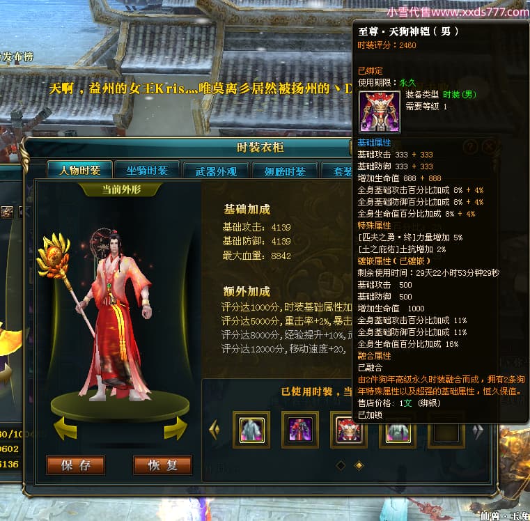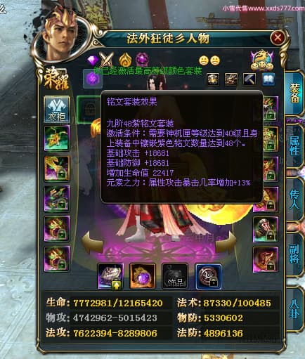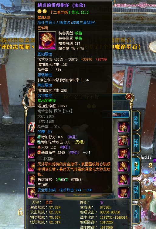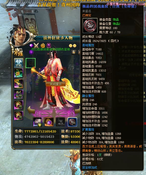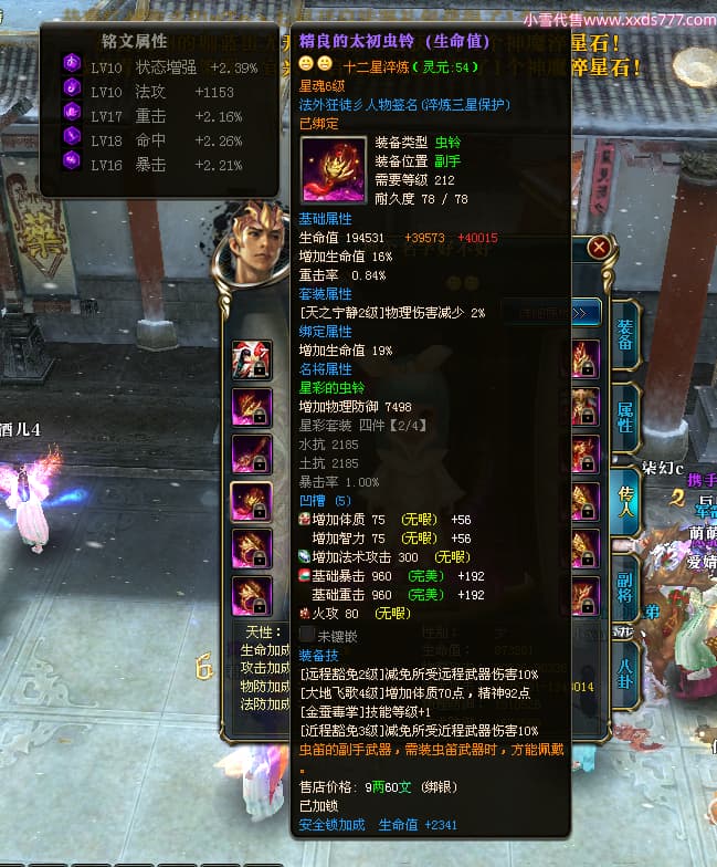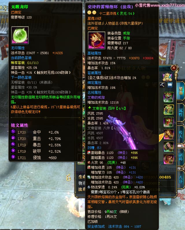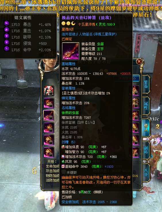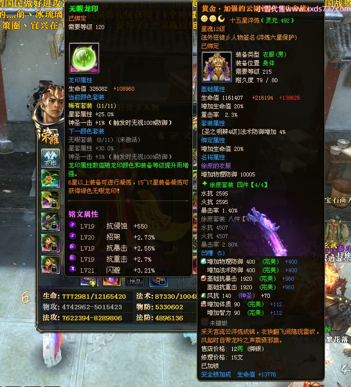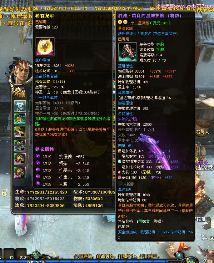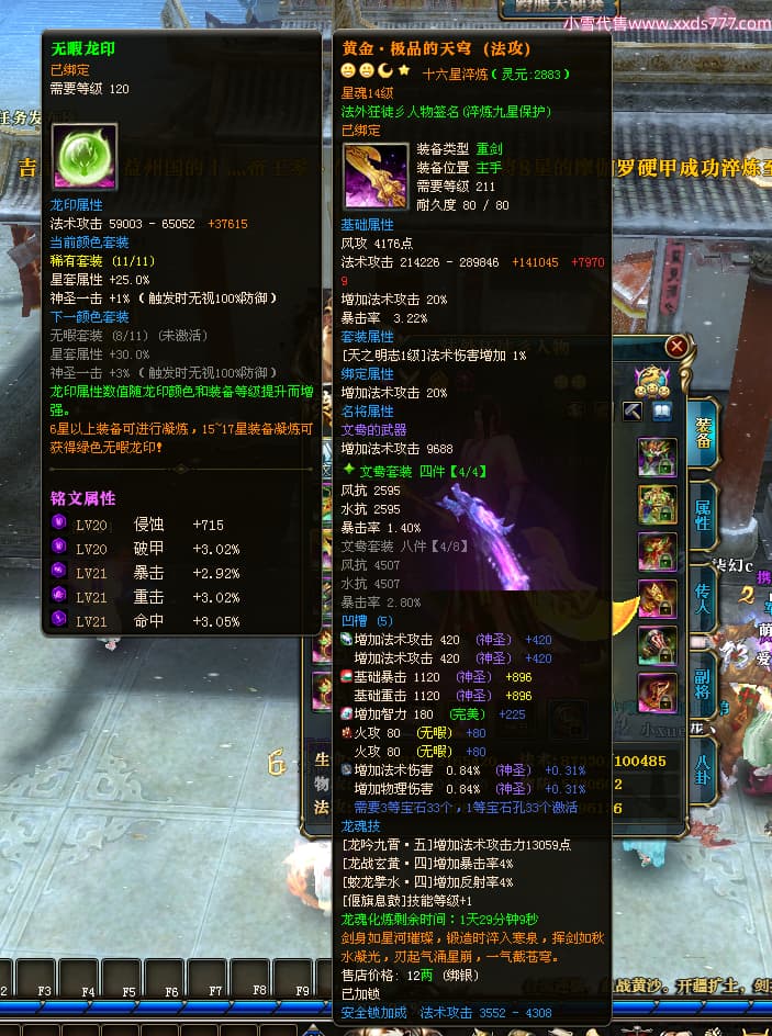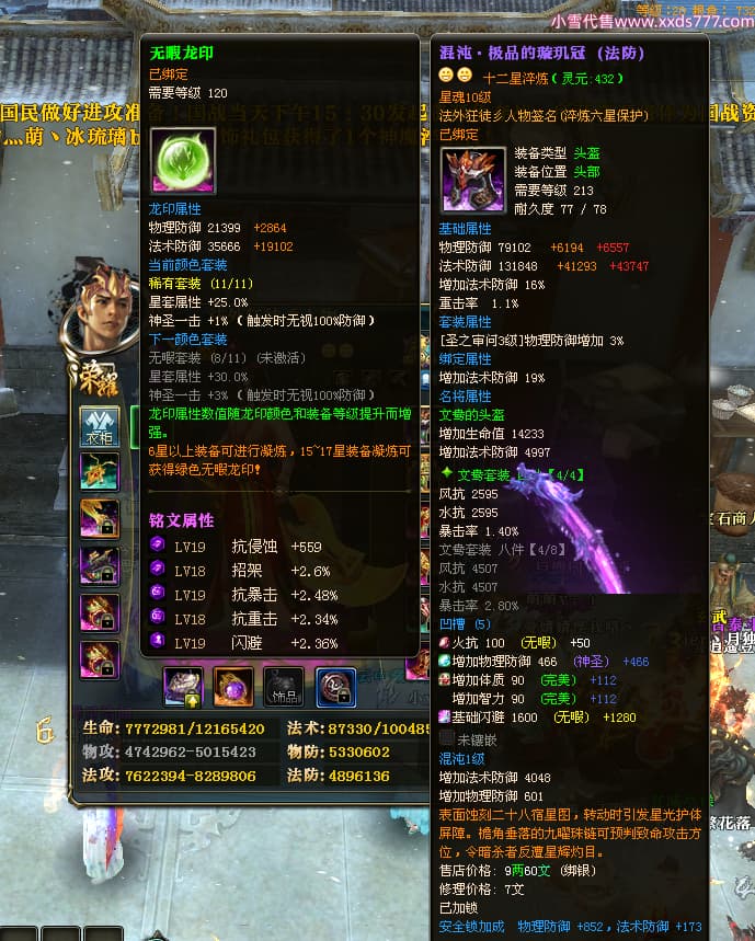 编号X24410 法外狂徒彡人物 龙啸风云 燕州 本国排名68名 10905W战力 人物精良紫12X(3件15X3件混沌) 传人精良紫12X 副将精良紫12X 马史诗紫12X 精良紫13披风 人物星魂10级 马星魂6级 人物铭刻1件15级7件14级其余13级 点亮4件14星其余12星 马铭刻12级 点亮12星 人物黄龙印(8件绿龙印) 马黄龙印 五等单双属性神圣完美无暇石头 蓝孔