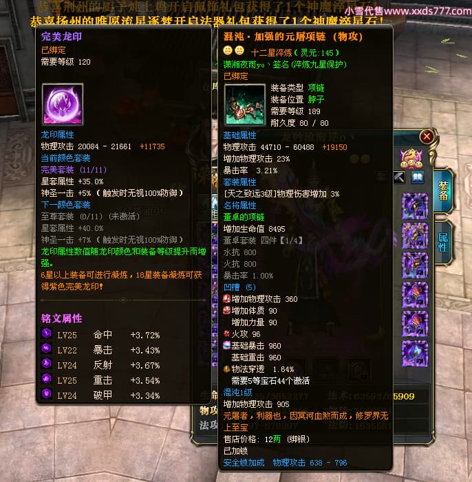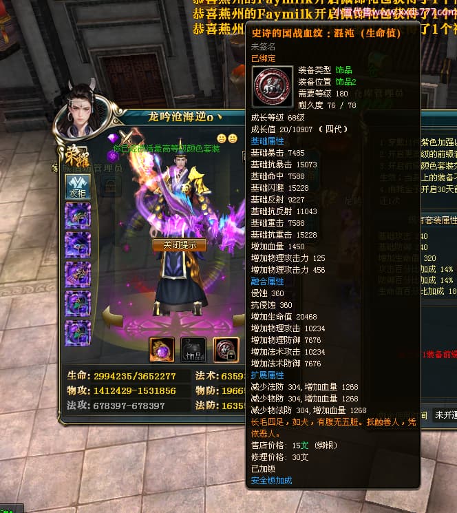 编号J24435 龙吟沧海逆o丶 九州龙虎 荆州 世界排名72名 3418W战力 人物黄金普通橙12X(1件15X8件混沌) 马普通橙9X 人物紫龙印 马黄龙印(1件绿龙印) 六等单双属性石头 已开完永久15星套 可以转移百分百安全