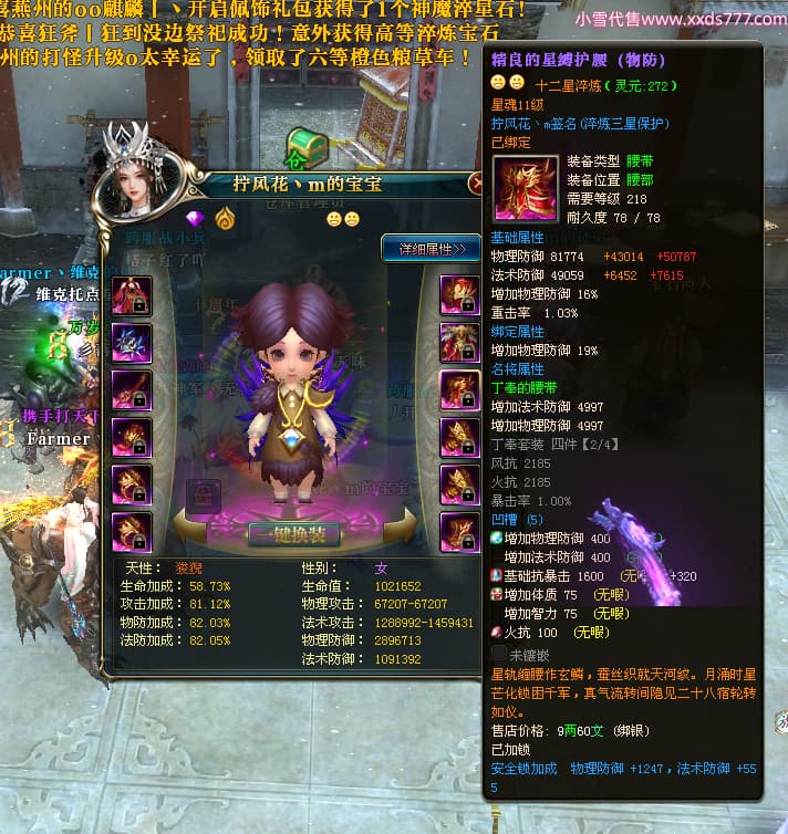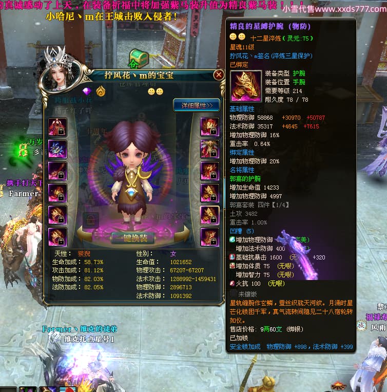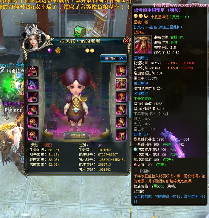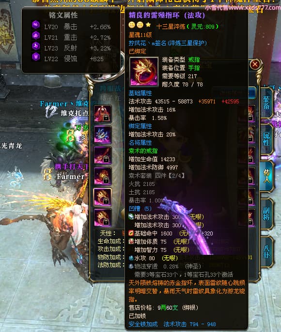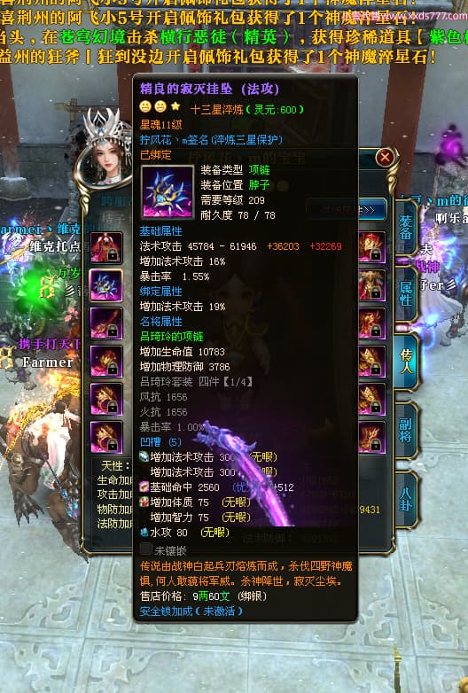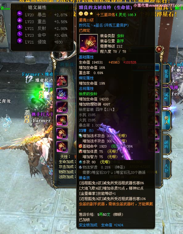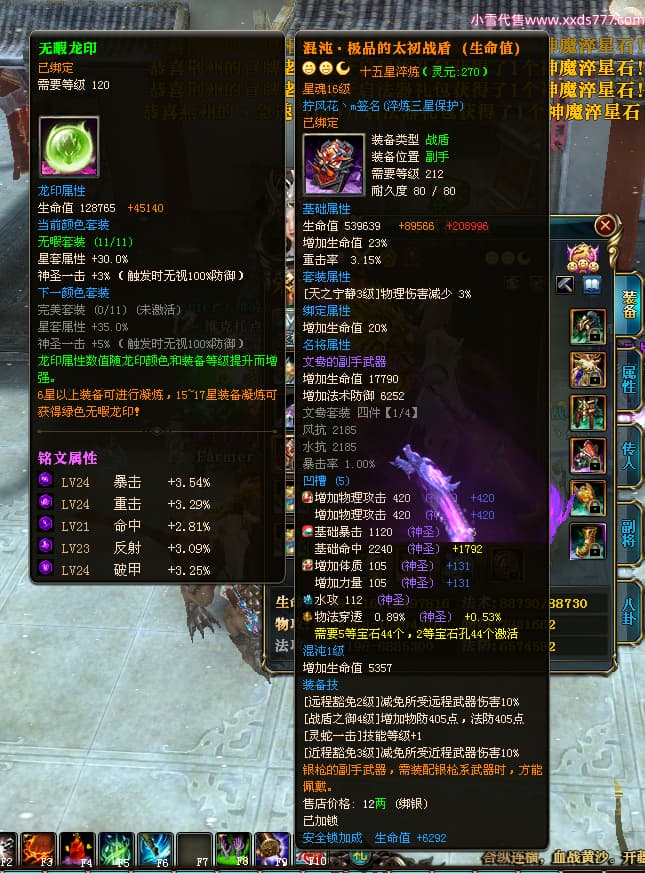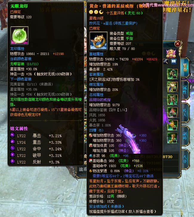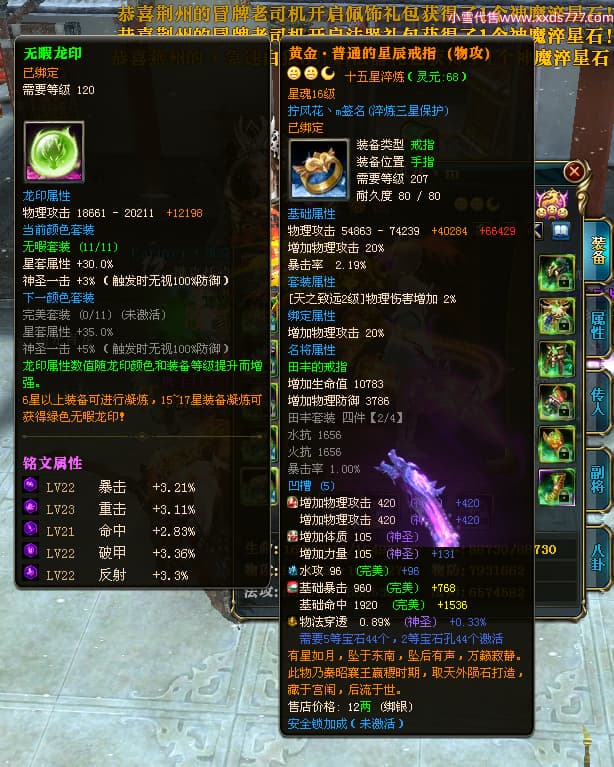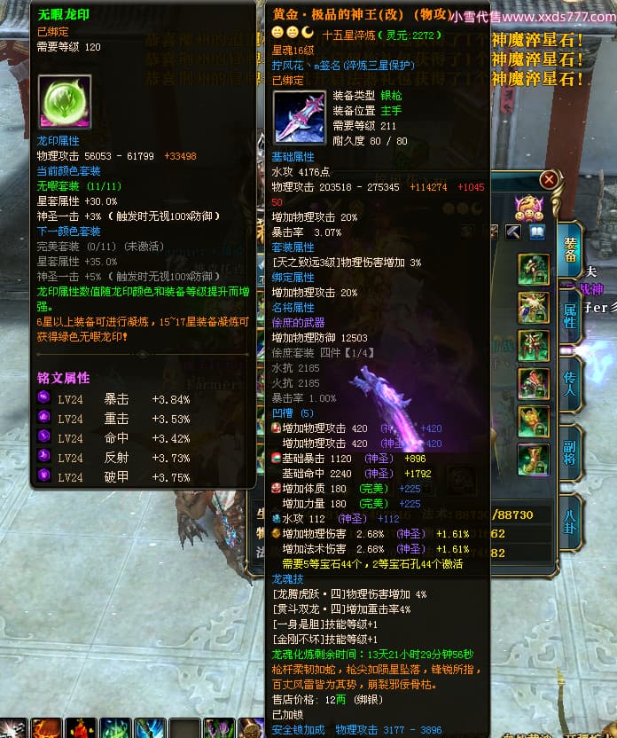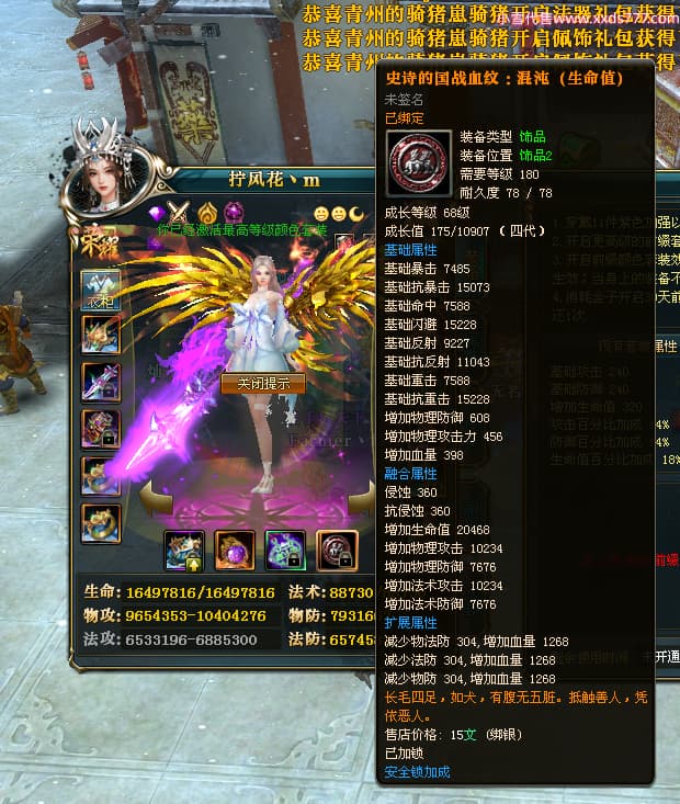 编号T24437 拧风花丶m 龙腾问鼎 荆州 本国排名60名 15011W战力 人物黄金普通橙15X(4件混沌) 传人精良紫12X 副将精良紫12X 马普通橙12X 精良紫14披风 人物星魂16级 传人星魂11级 副将星魂6级 马星魂11级 人物铭刻15级 人物点亮5件16星其余14星 马铭刻13级 点亮12星 人物绿龙印 马黄龙印 五六等单双属性神圣完美无暇石 蓝黄孔