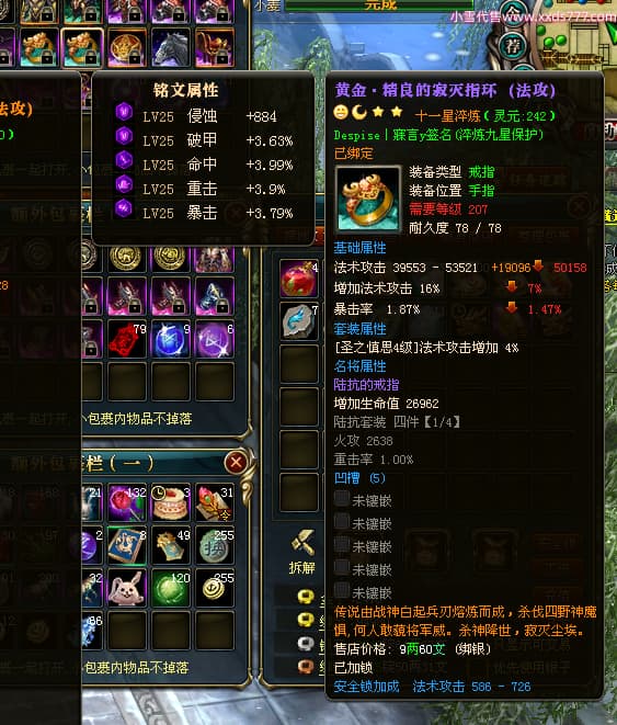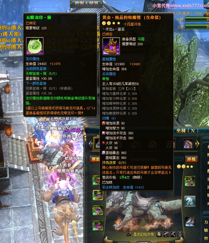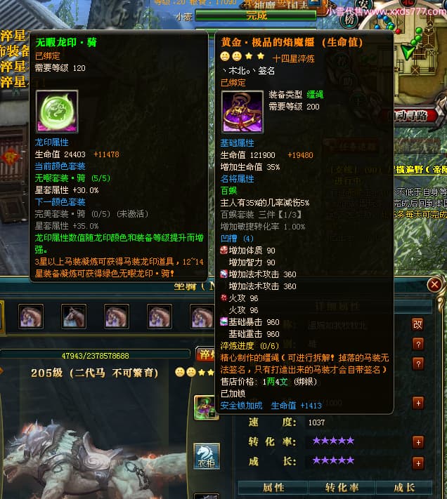 编号L24438 丶朔北o丶 龙战王者 幽州 世界排名9名 9274W战力 人物黄金极品橙18X(9件混沌) 马黄金极品橙14X(双潜能50级36级) 人物紫龙印 马绿龙印 六等单双属性石头 已开完永久18星套 可以转移百分百安全