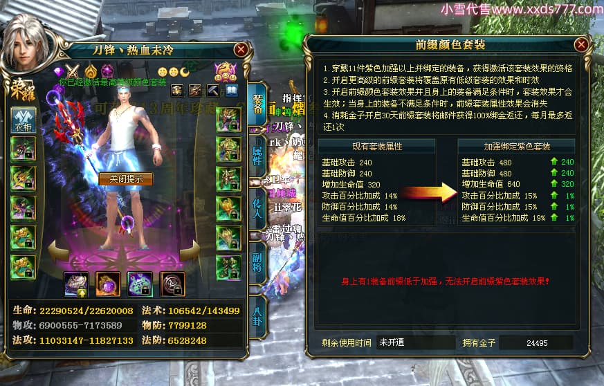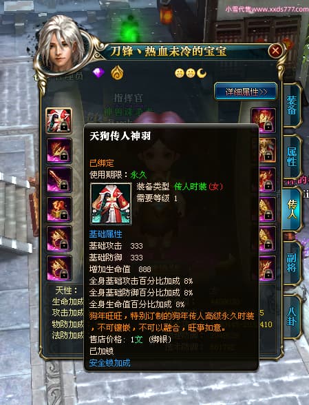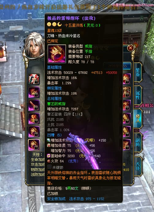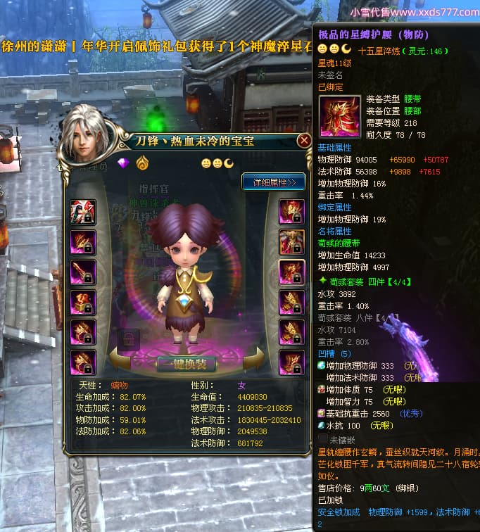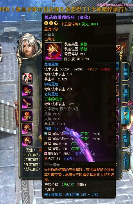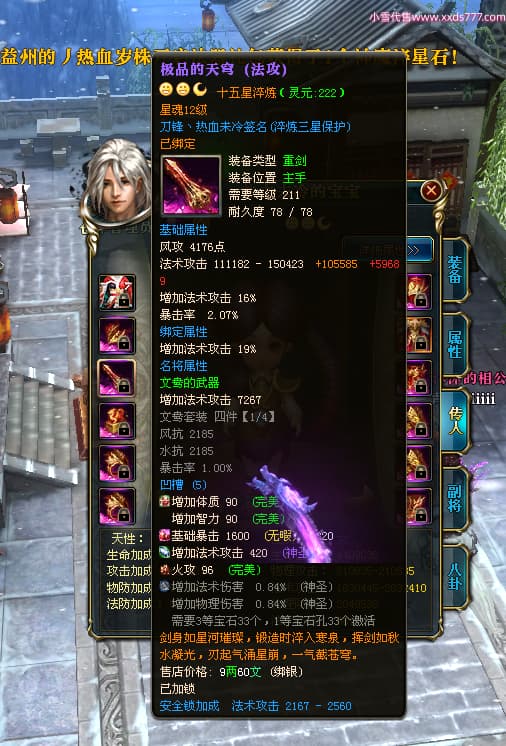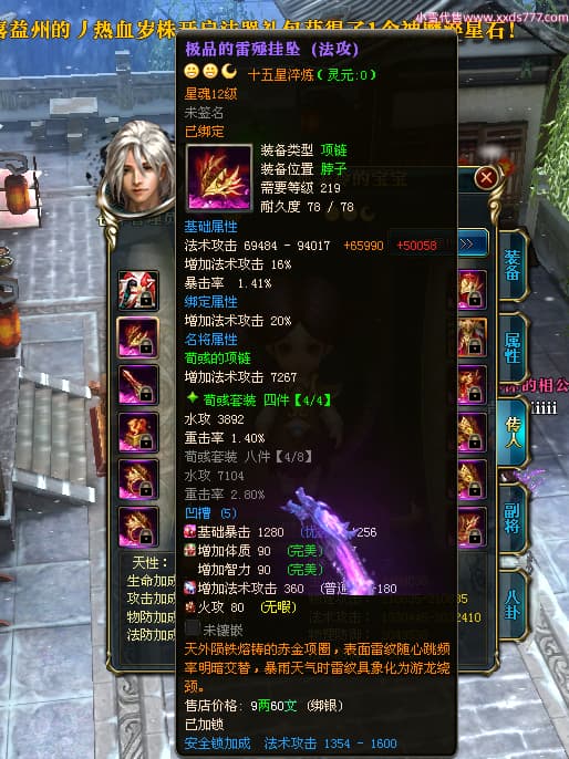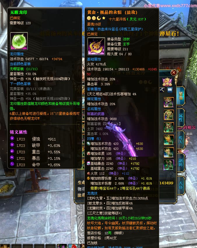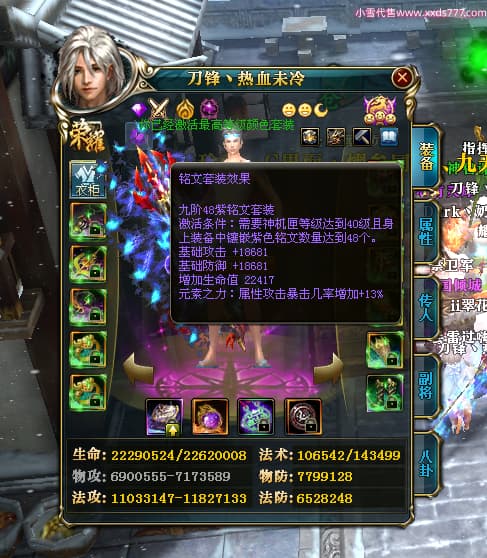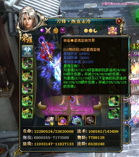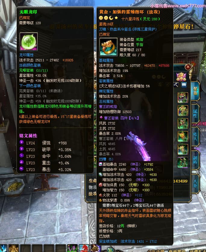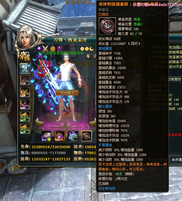 编号W24442 刀锋丶热血未冷 龙舞九州 燕州 本国排名8名 17698W战力 人物黄金普通橙16X(5件混沌) 传人极品紫15X 副将极品紫15X 马史诗紫12X 精良紫15披风 人物星魂16级 传人星魂11级 副将星魂6级 马星魂11级 人物铭刻15级 人物点亮16星 马铭刻12级 点亮12星 人物绿龙印 马黄龙印 五六等单双属性完美无暇神圣石头 蓝黄孔