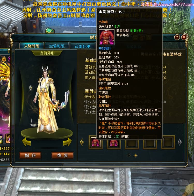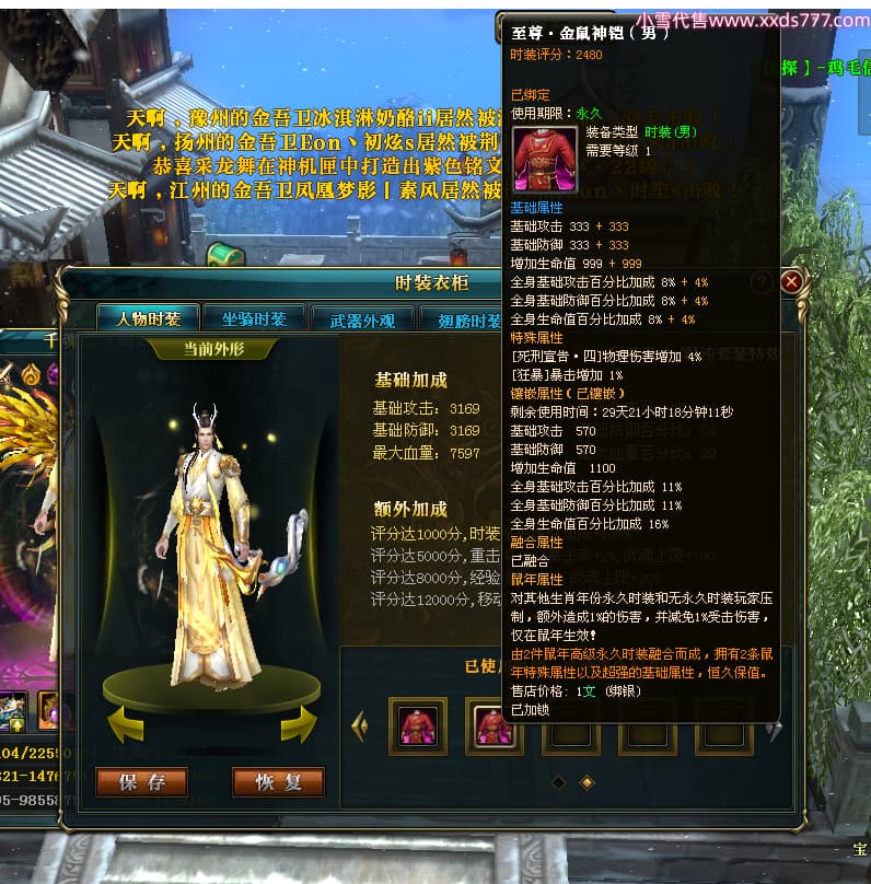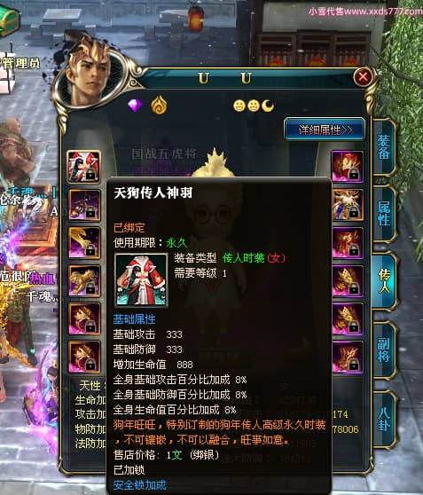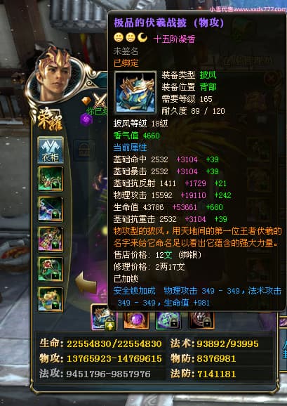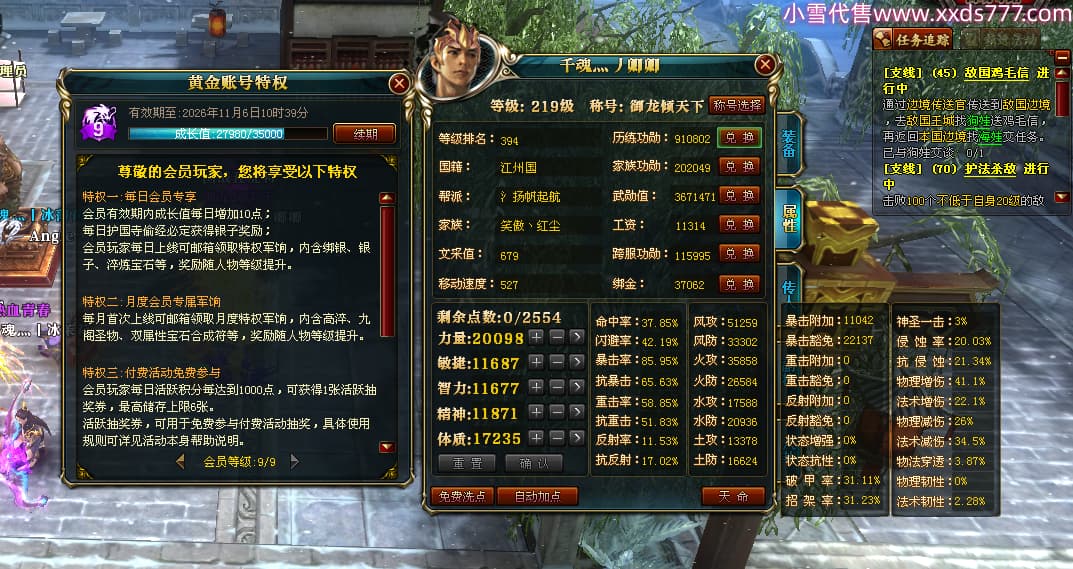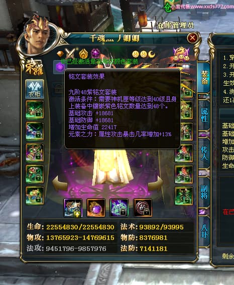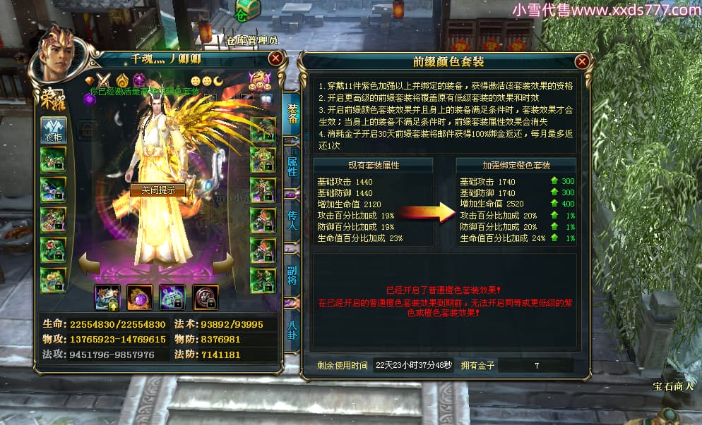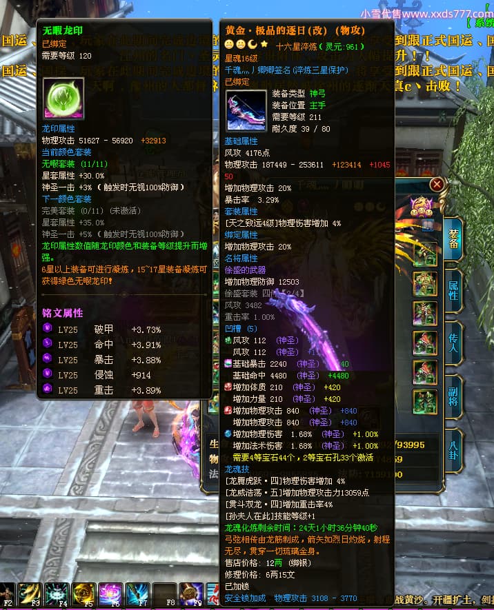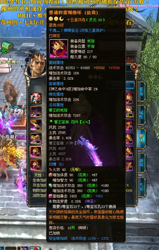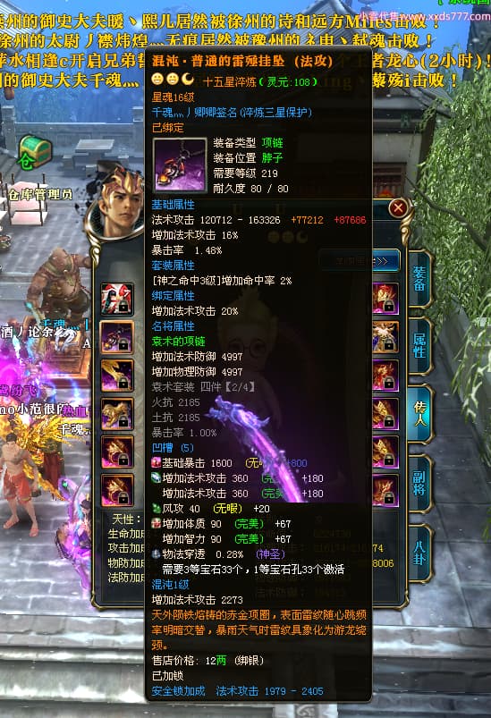 编号X24447 千魂灬丿卿卿 龙啸风云 江州 本国排名19名 20992W战力 人物黄金普通橙15X(8件混沌) 传人极品紫15X 副将精良紫12X 马普通橙12X 极品紫15披风 人物星魂16级 传人星魂15级 副将星魂6级 马星魂16级 人物铭刻15级 人物点亮16星 马铭刻12级 点亮12星 人物绿龙印 马黄龙印 五六等单双属性神圣完美优秀石头 黄蓝孔