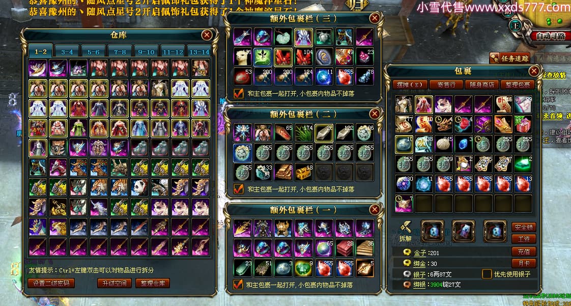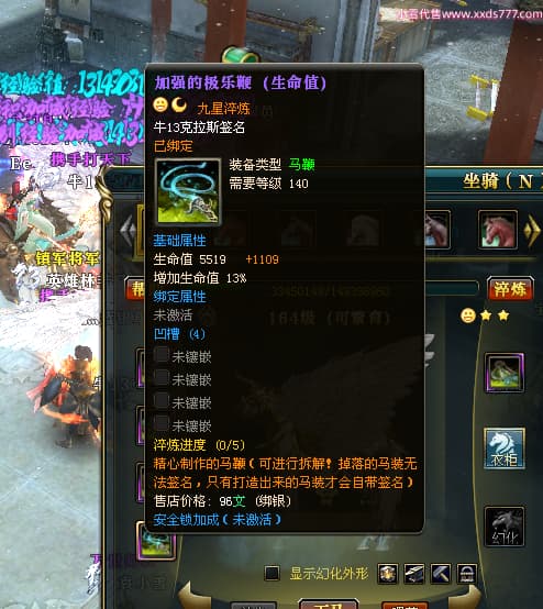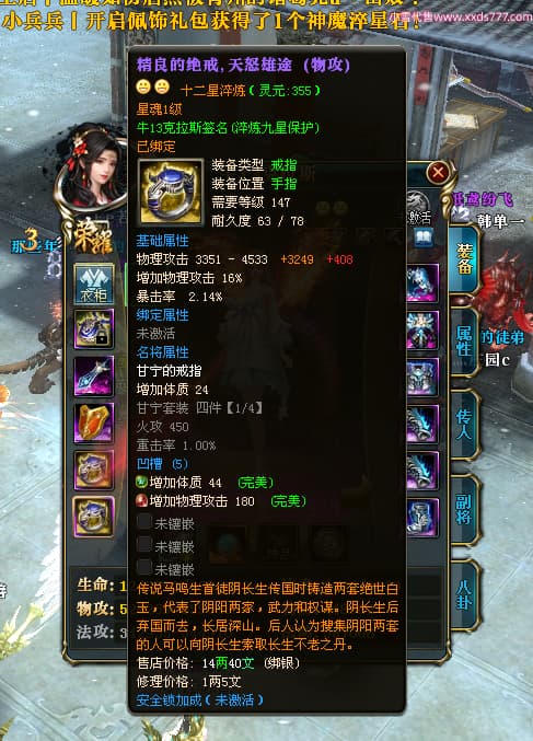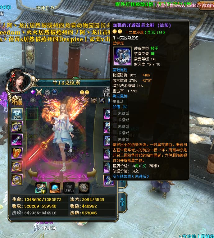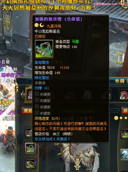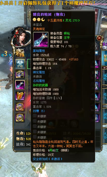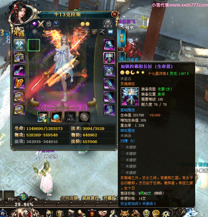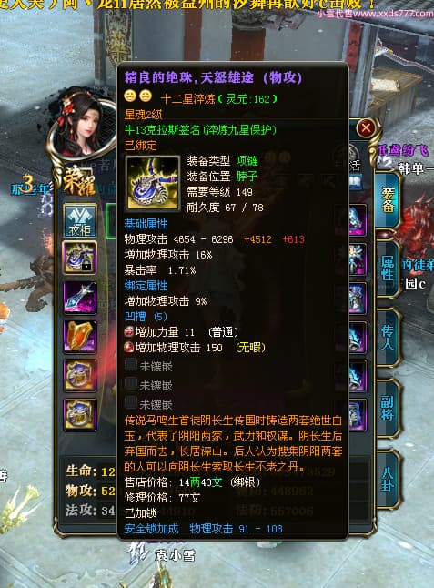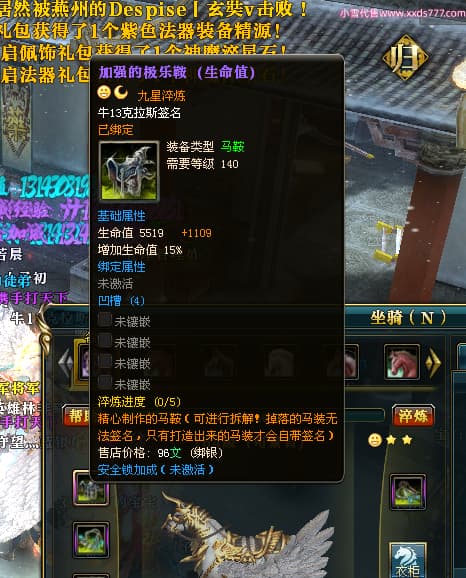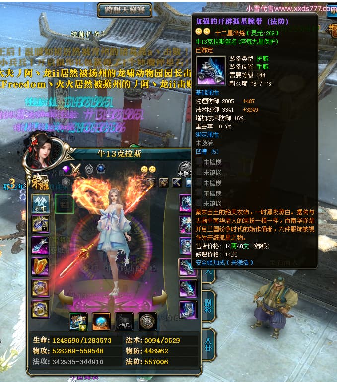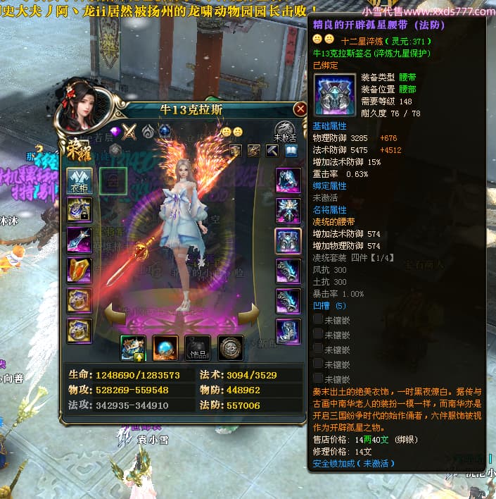 编号X24451 牛13克拉斯 龙啸风云 荆州 190级 人物加强紫12X(1件17X1件15X) 马加强紫9X 号内Q币20个 人物高淬53个