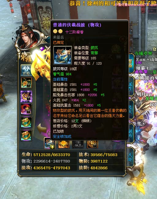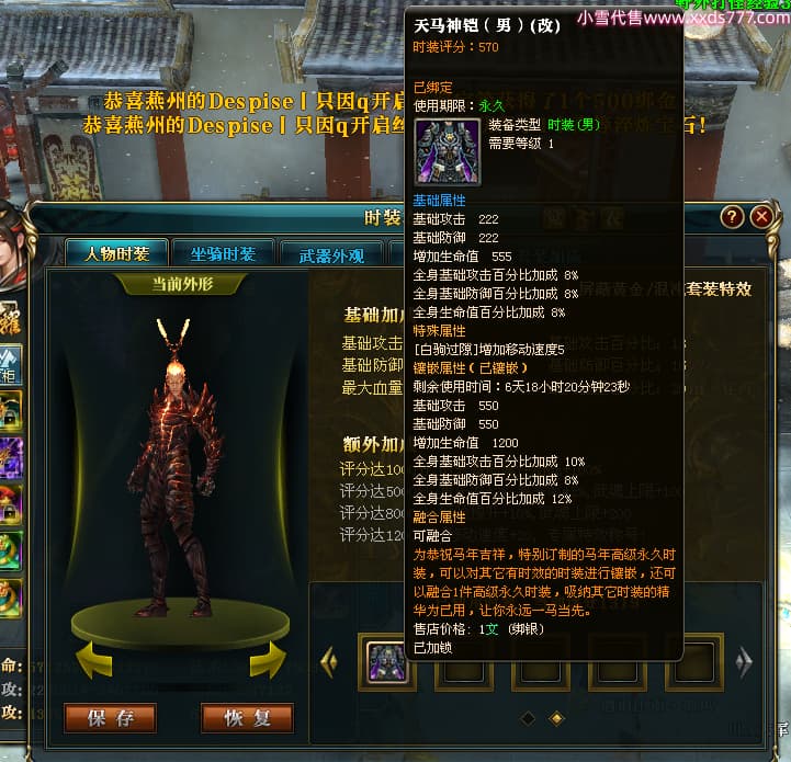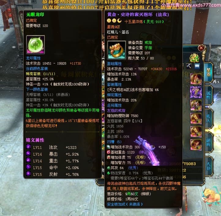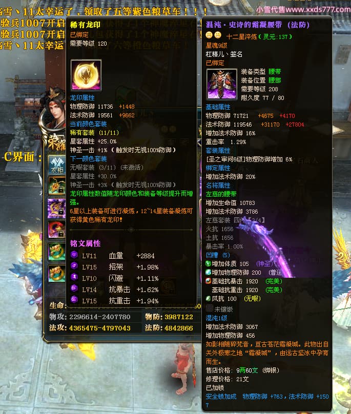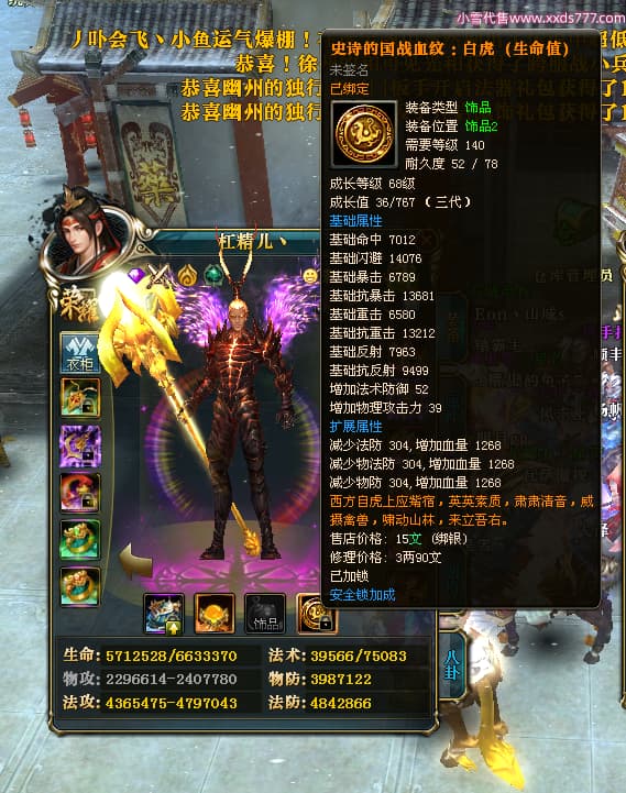 编号Z24460 杠精儿丶 逐鹿天下 扬州 本国排名78名 6058W战力 人物精良紫12X(1件混沌) 马精良紫9X 普通紫12披风 人物星魂8级 马星魂4级 人物铭刻12级 点亮12星 马铭刻9级 点亮10星 人物黄龙印(2件紫龙印) 马蓝龙印 五等单双属性神圣完美无瑕石头 可以转移百分百安全