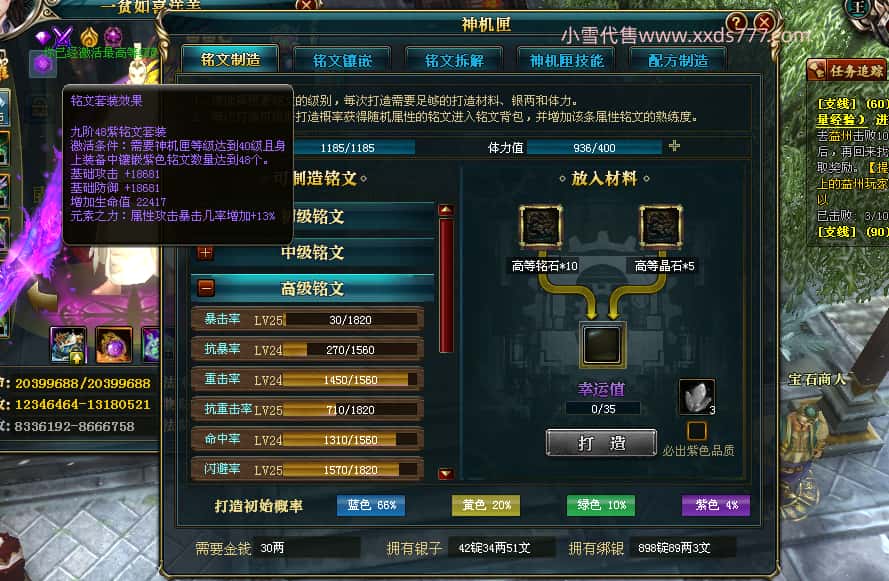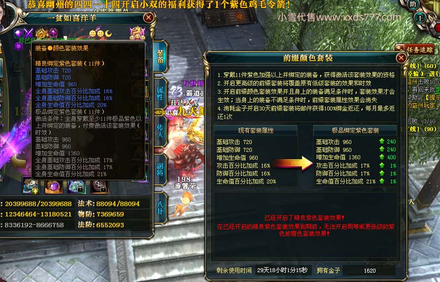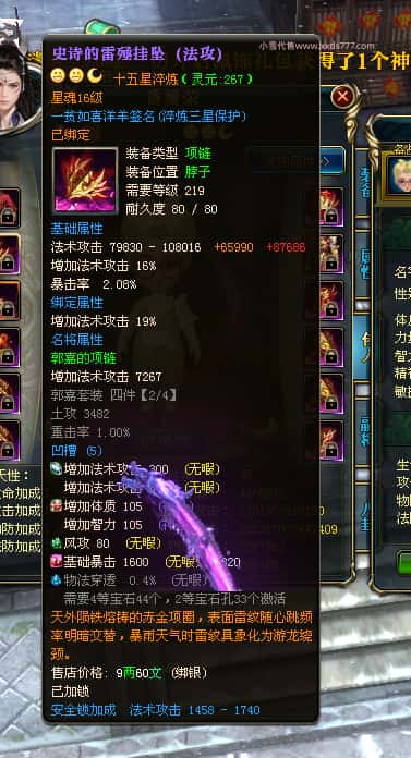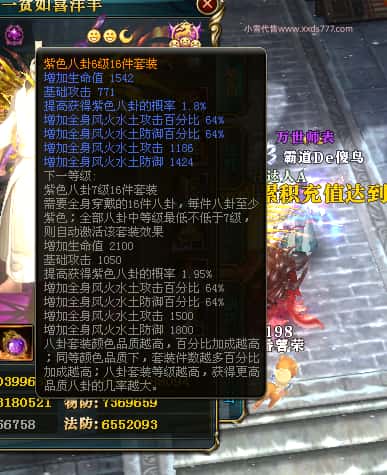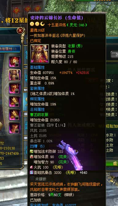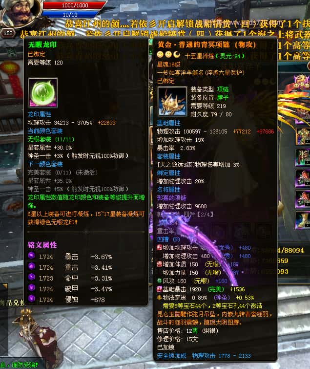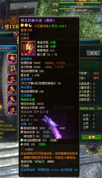 编号X24462 一贫如喜洋羊 龙啸风云 幽州 本国排名17名 18000W战力 人物黄金精良紫15X(6件混沌) 传人精良紫15X 副将精良紫12X 马极品紫11X 精良紫14披风 人物星魂16级 传人星魂14级 副将星魂6级 马星魂16级 人物铭刻15级 点亮项链主手戒指衣服16星(头盔16星紫色点亮中)其余14星 马铭刻12级 点亮12星 人物绿龙印 马黄龙印 五六等单双属性神圣完美无暇石头 黄蓝孔