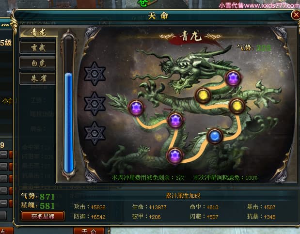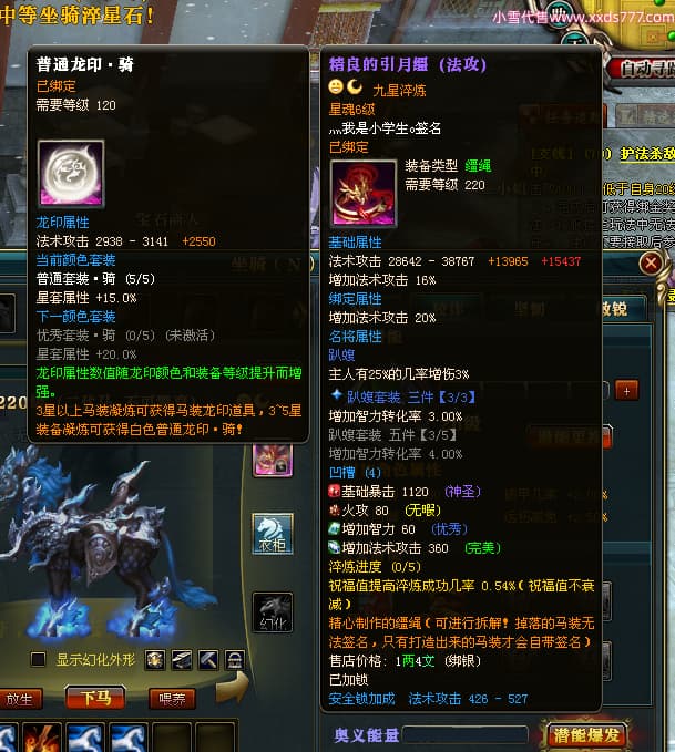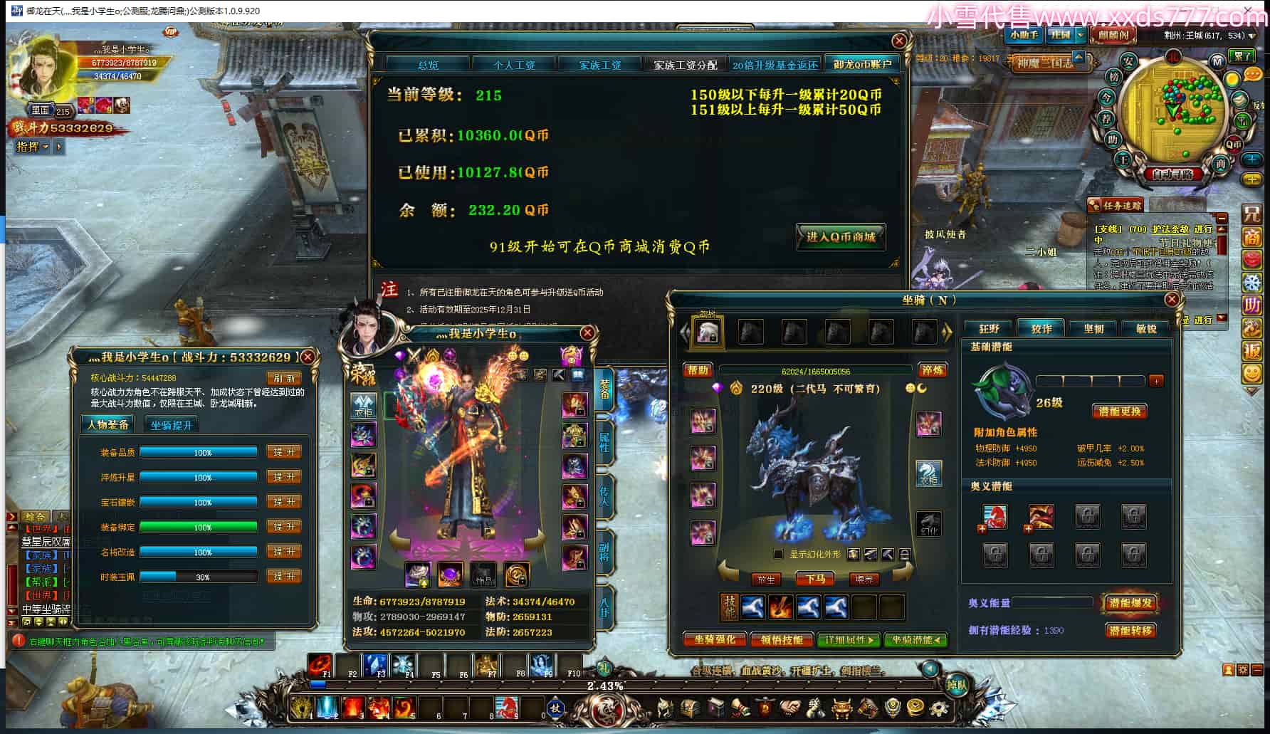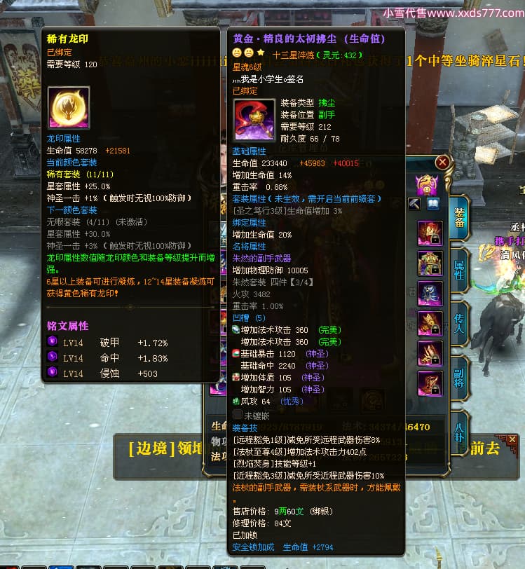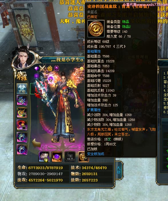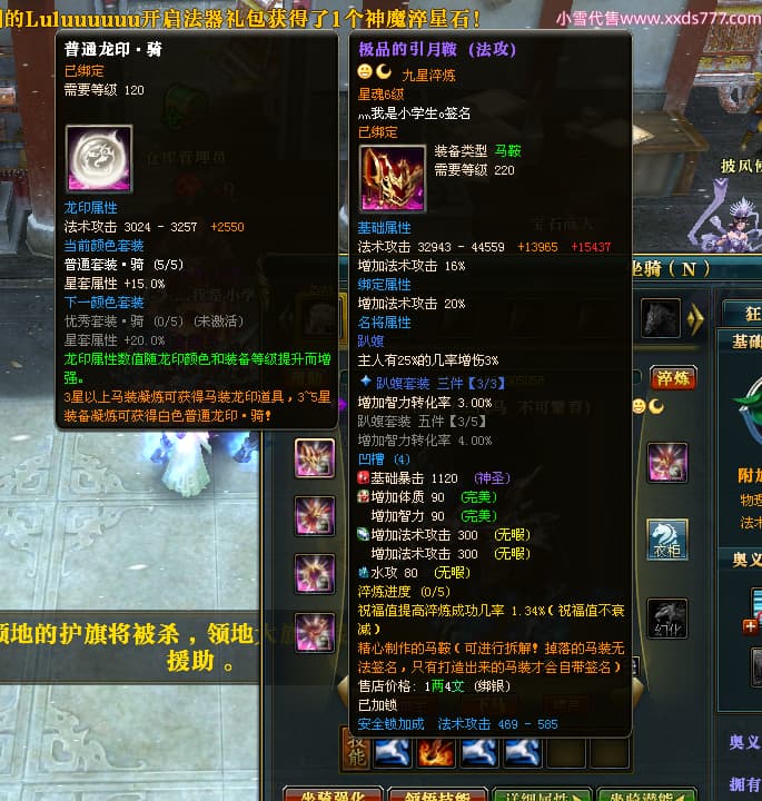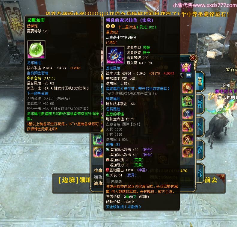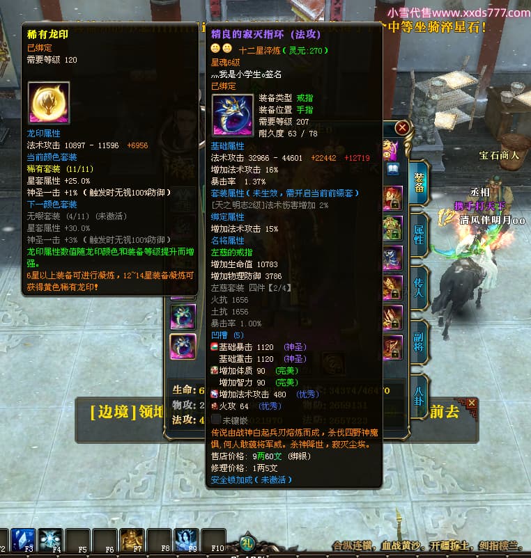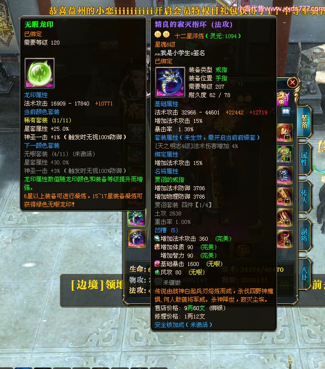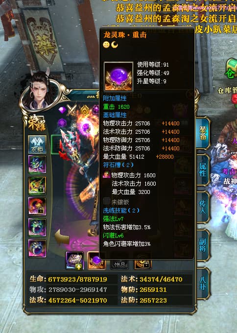 编号T24466 灬我是小学生o 龙腾问鼎 荆州 5333W战力 人物精良紫12X(1件15X) 传人精良紫12X 马精良紫9X 普通紫12披风 人物星魂6级 马星魂5级 人物铭刻1件15级其余12级 点亮1件14星其余12星 马铭刻1件12级3件10级其余9级 点亮10星 人物黄龙印(4件绿龙印) 马白龙印 五等单双属性完美无暇神圣石头