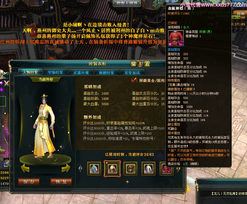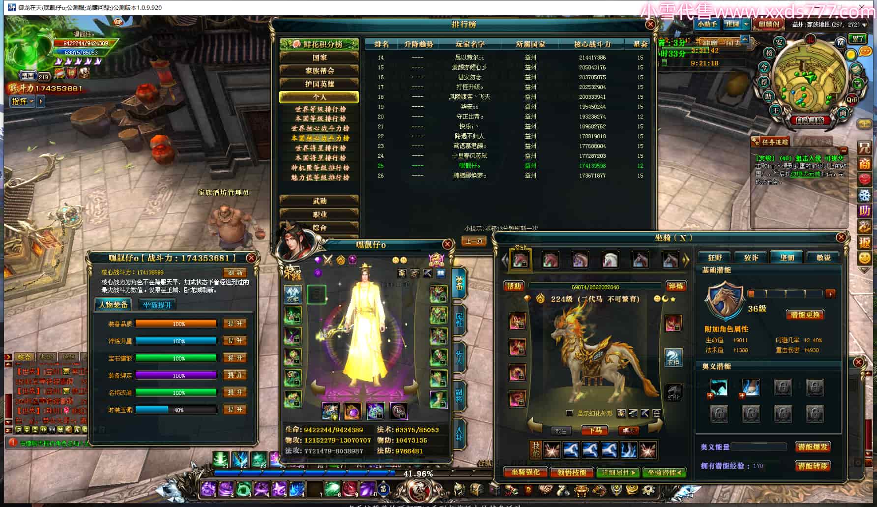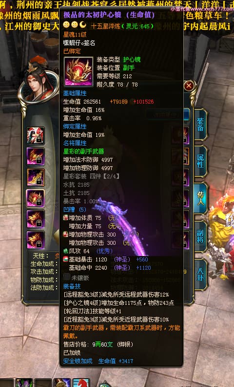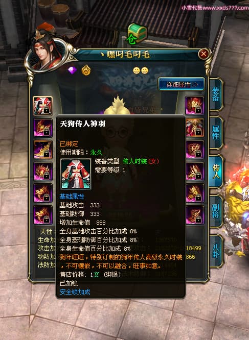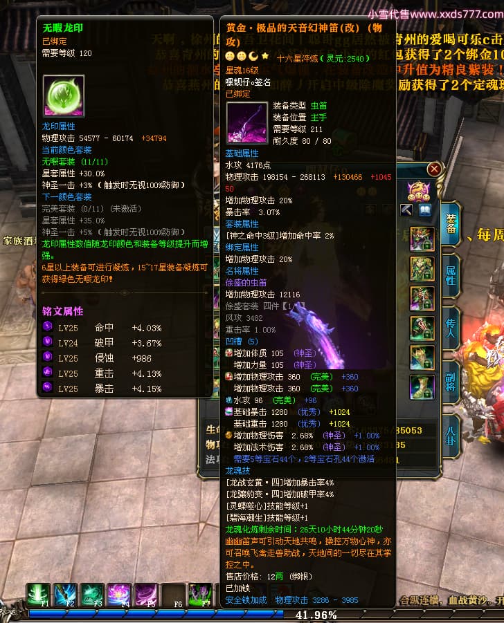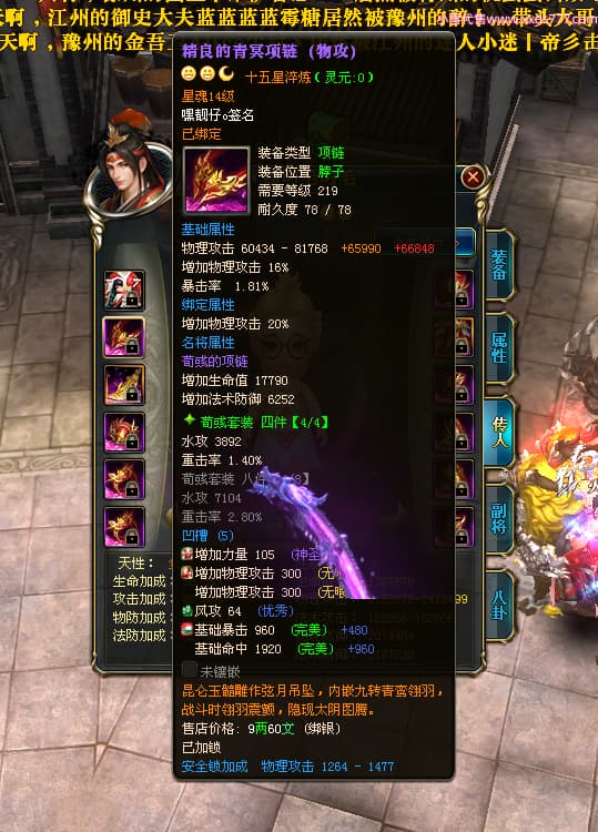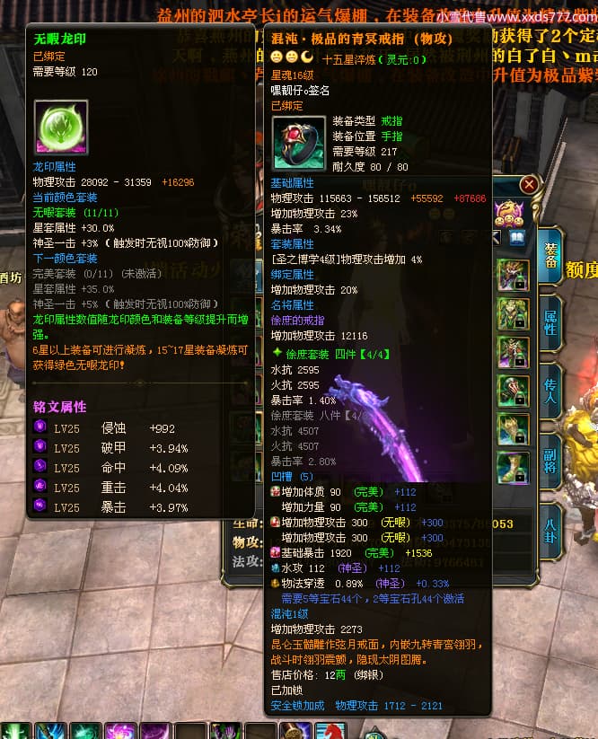编号T24472 嘿靓仔o 龙腾问鼎 益州 本国排名25名 17435W战力 人物黄金普通橙14X(9件15X5件混沌) 传人精良紫12X 副将精良紫12X 马普通橙10X 精良紫15披风 人物星魂16级 传人星魂10级 副将星魂6级 马星魂16级 人物铭刻15级 点亮7件16星其余14星 马铭刻12级 点亮10星 人物绿龙印 马黄龙印 五等单双属性完美无暇神圣石头 黄蓝孔