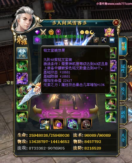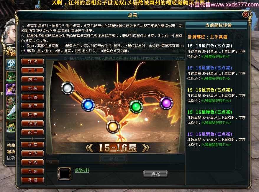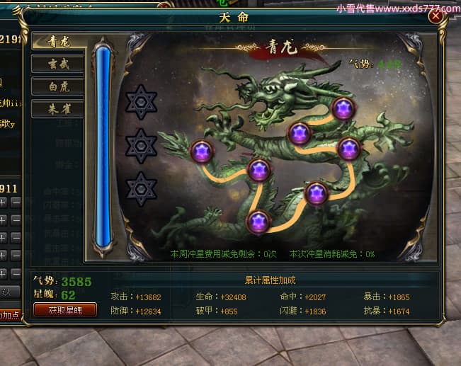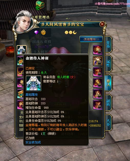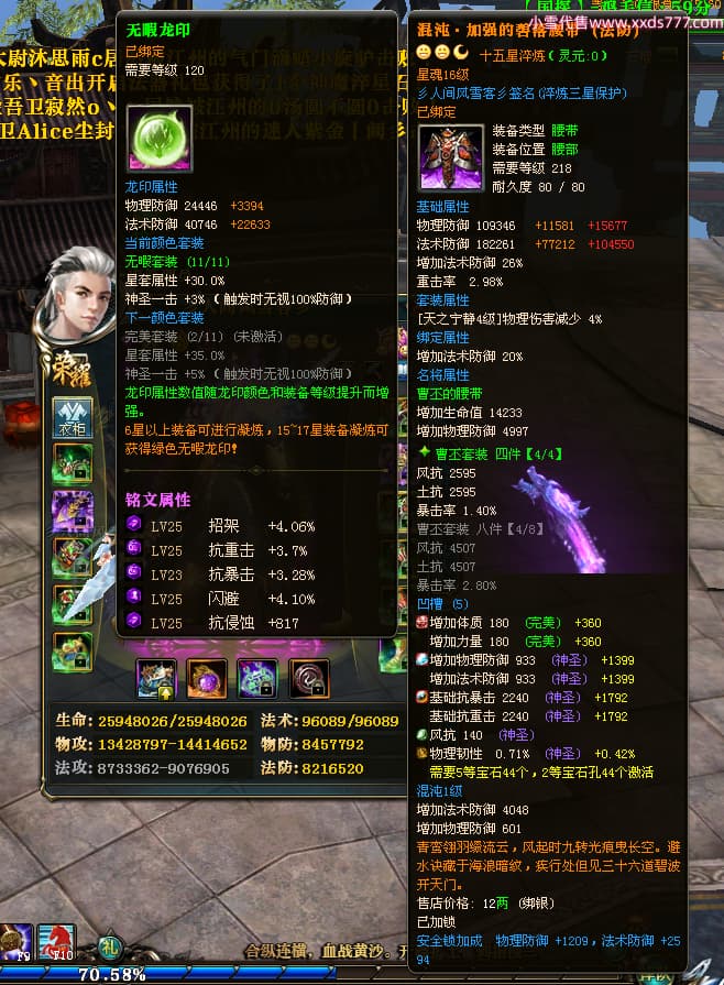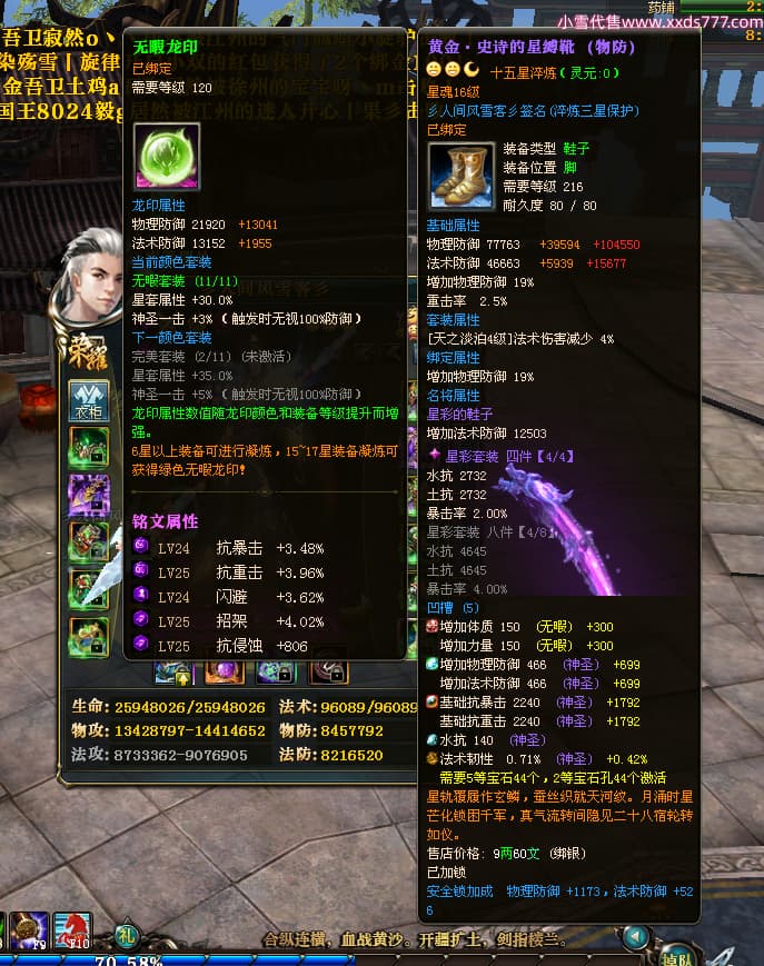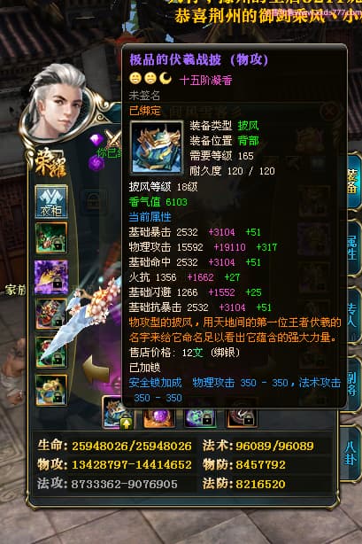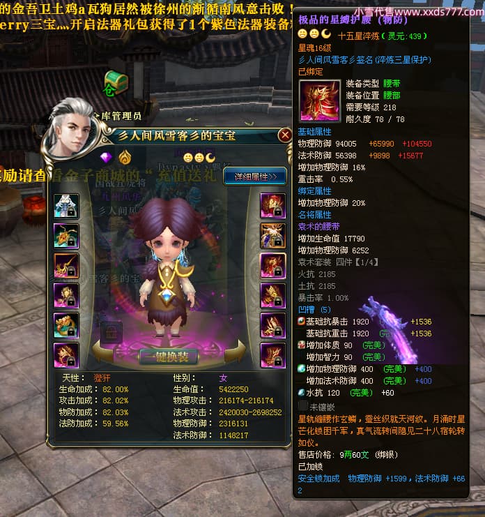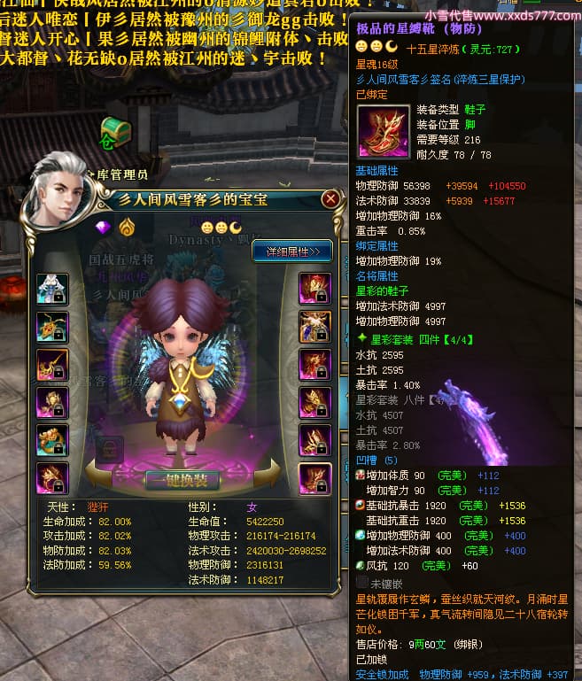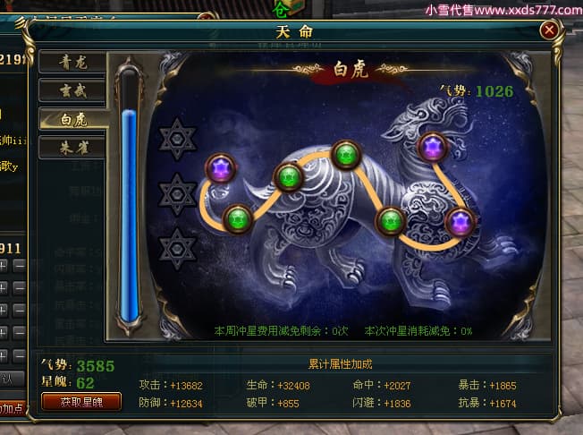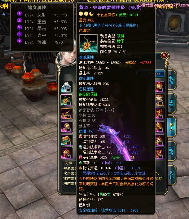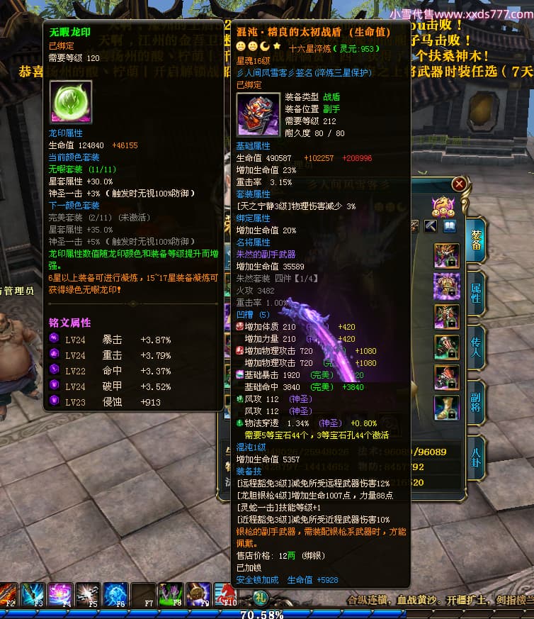 编号T24474 彡人间风雪客彡 龙腾问鼎 益州 本国排名第13名 22297W战力 人物黄金普通橙15X(7件混沌) 传人极品紫15X 副将史诗紫15X 马普通橙12X 极品紫15披风 人物星魂16级 传人星魂16级 副将星魂14级 马星魂15级 人物铭刻15级 点亮16星 马铭刻13级 点亮2件14星其余12星 人物绿龙印(2件紫龙印) 马黄龙印 六等单双属性神圣完美无瑕石头 黄绿孔 已开启永久15星套
