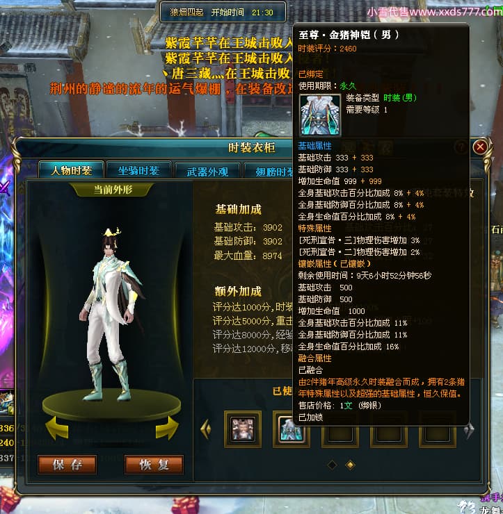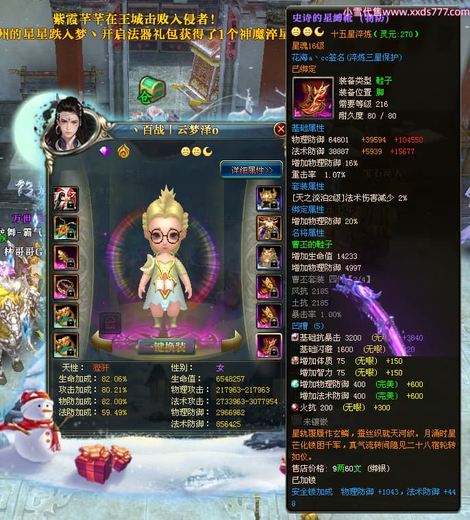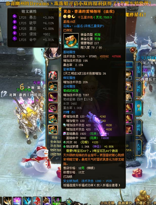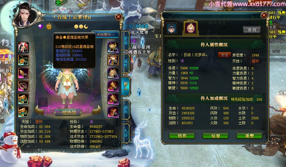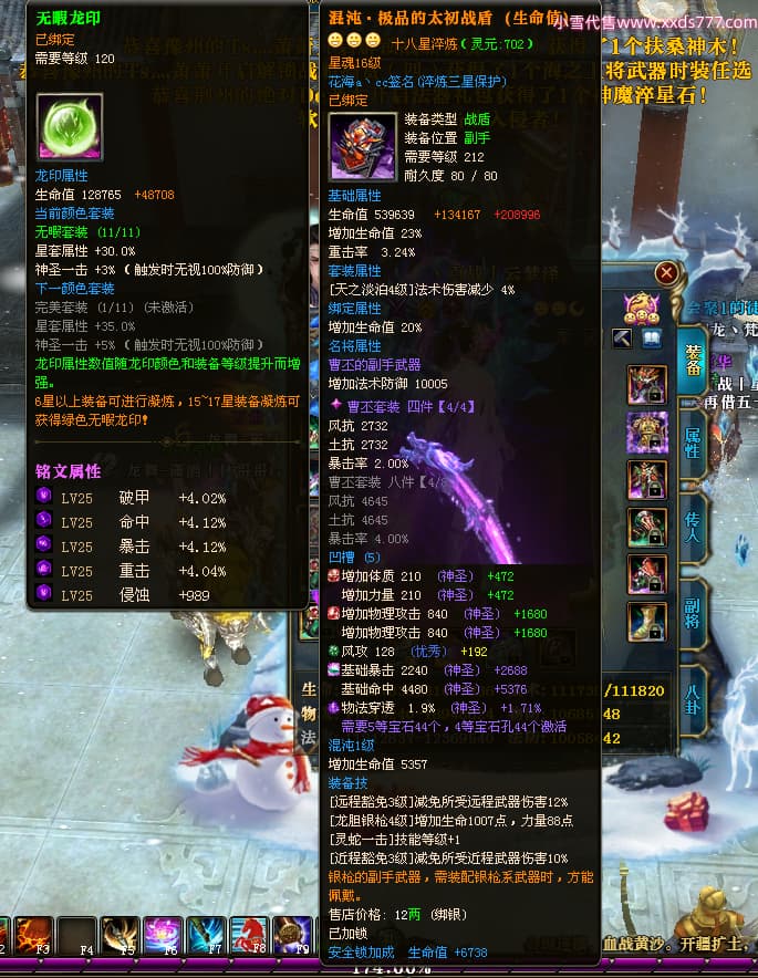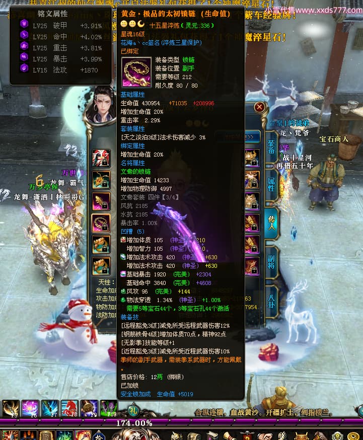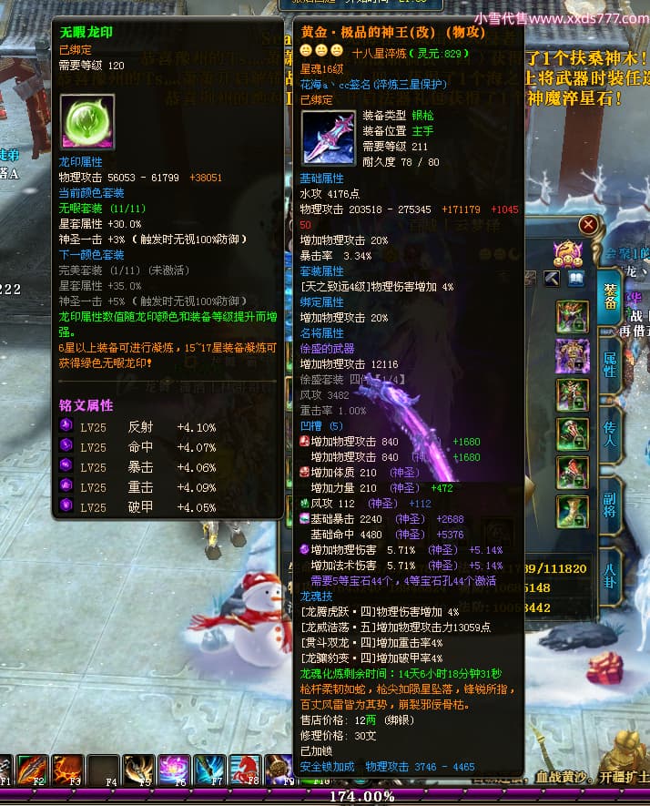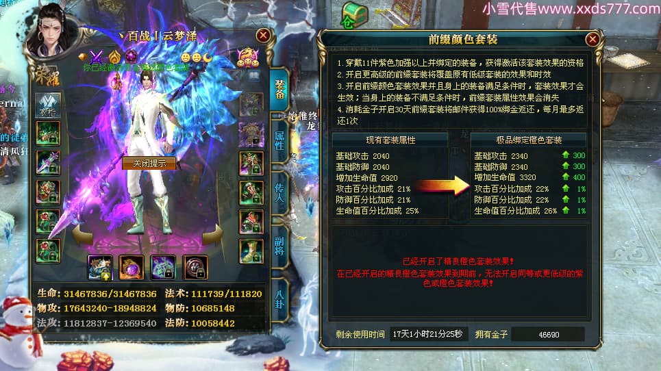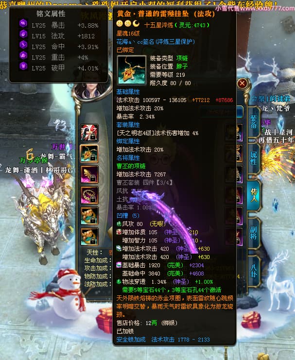 编号W24479 丶百战丨云梦泽 龙舞九州 荆州 世界排名40名 31210W战力 人物黄金极品橙15X(6件18X8件混沌) 传人史诗紫15X 副将精良紫15X 马黄金加强橙14X(双潜能66级65级) 史诗紫17披风 人物星魂16级 传人星魂16级 副将星魂9级 马星魂16级 人物铭刻2件18级1件16级其余15级 点亮16星 马铭刻15级 点亮14星 人物绿龙印(1件紫龙印) 马绿龙印 六等单双属性完美神圣石头 绿紫孔 已开启永久18星套