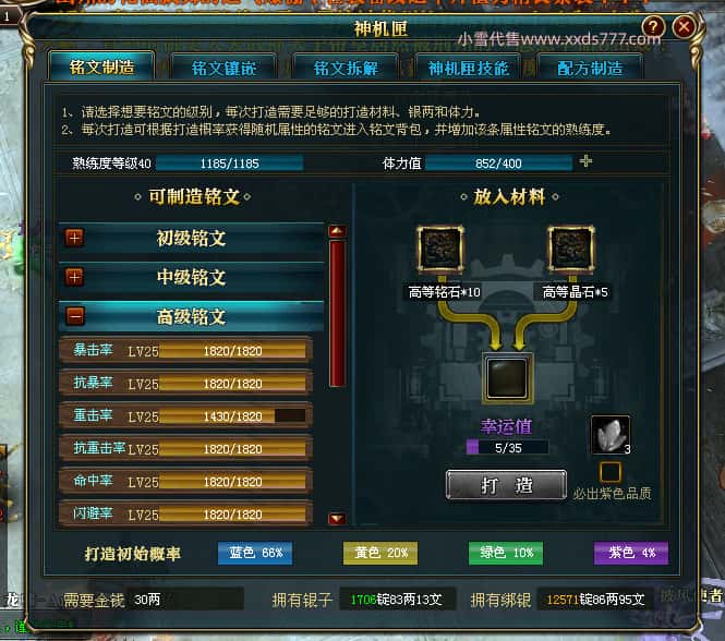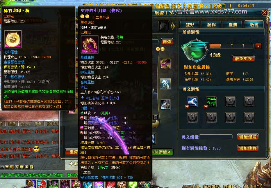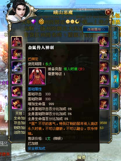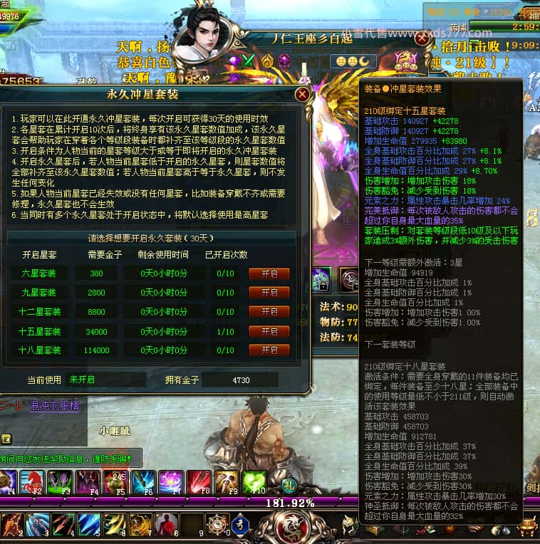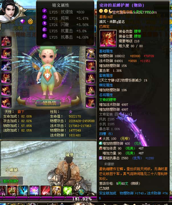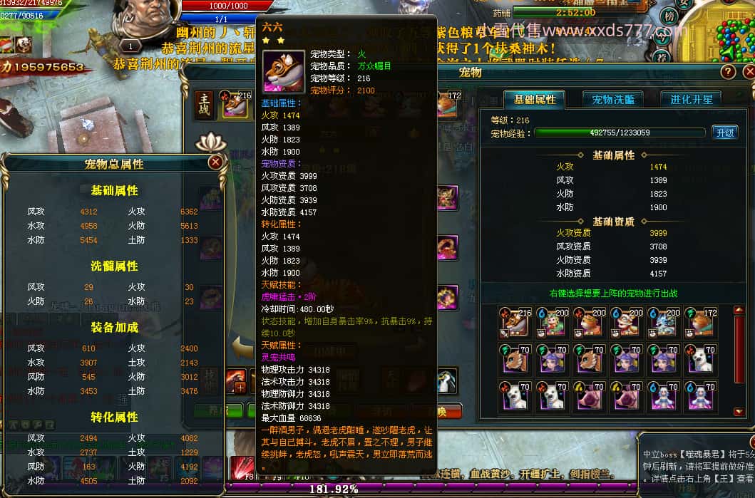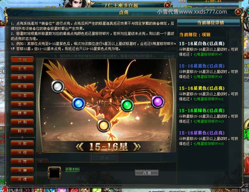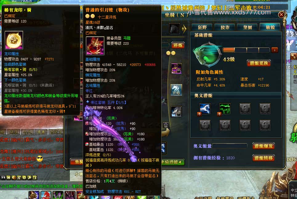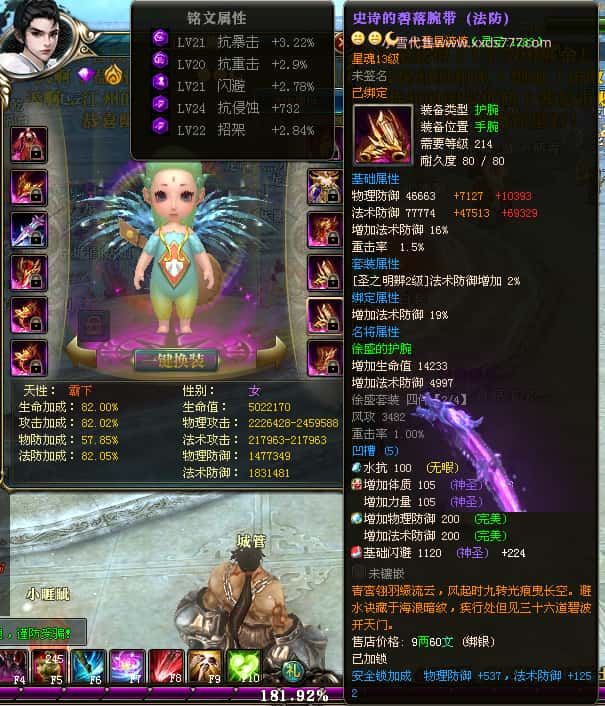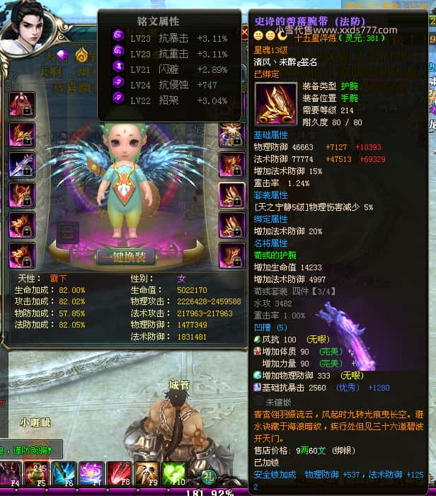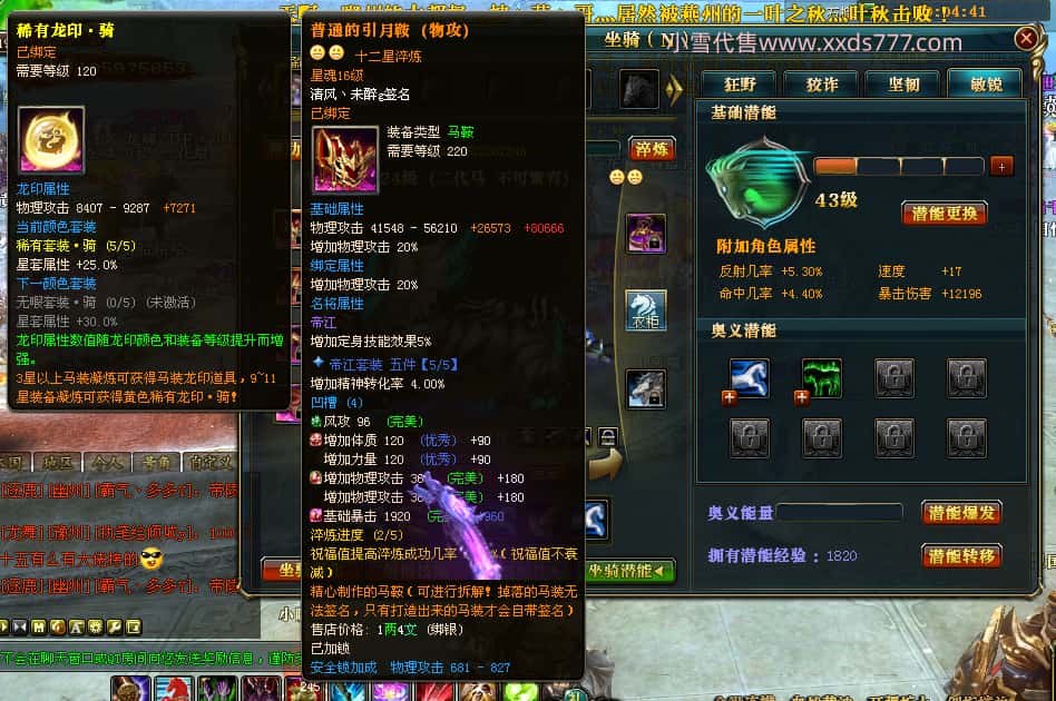 编号X24494 丿仁王座彡白起 龙啸风云 扬州 本国排名第39名 19597W战力 人物黄金史诗紫15X(7件混沌) 传人史诗紫15X 副将精良紫15X 马史诗紫12X 极品紫15披风 人物星魂16级 传人13级 副将6级 马星魂16级 人物铭刻7件16级(护腕/靴子15级) 点亮16星 马铭刻15级 点亮12星 人物1件紫+10件绿龙印 马黄龙印 五六等单双属性神圣完美无瑕石头 绿黄蓝孔 已开1次永久15星套