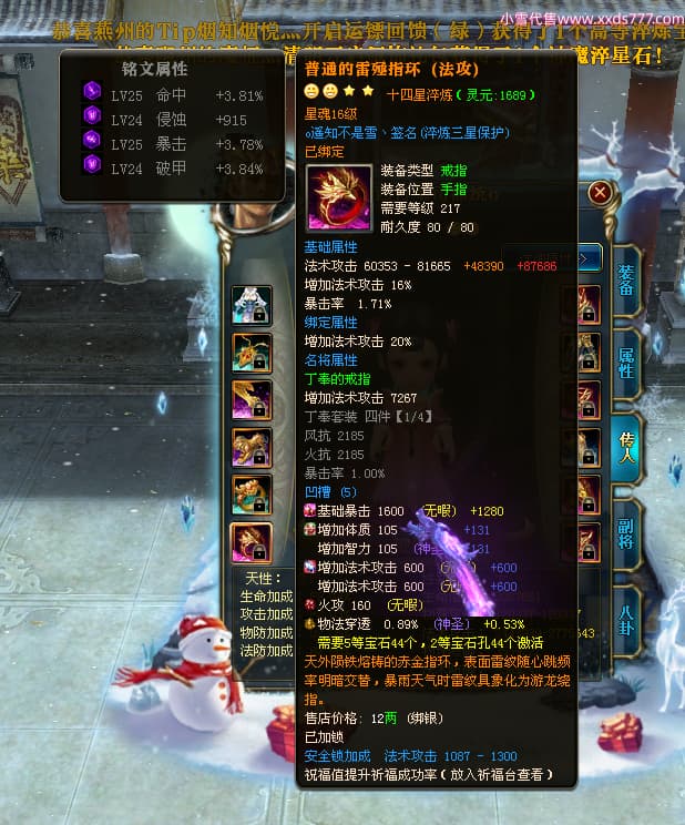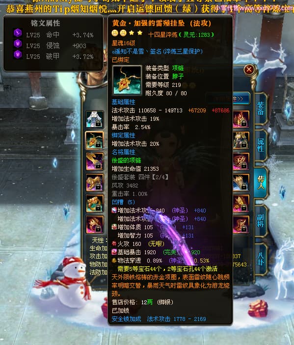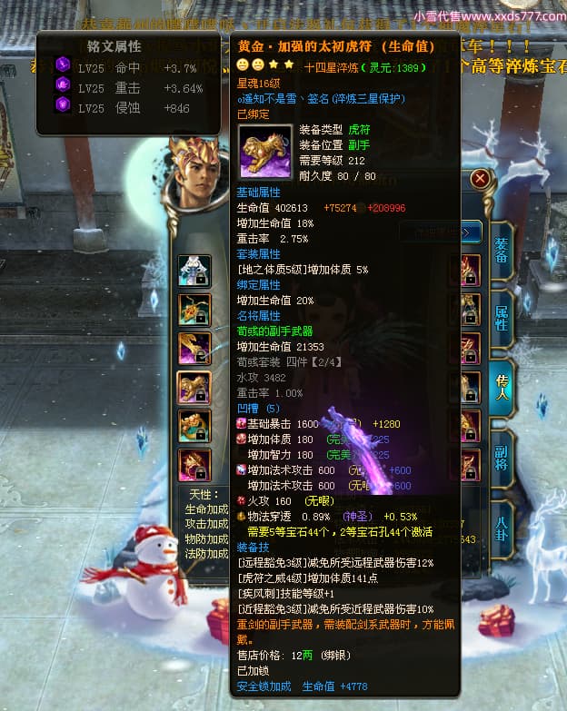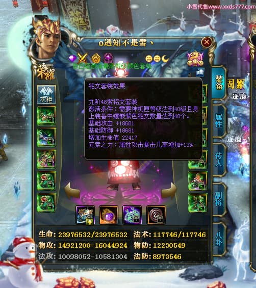 编号Z24497 o遥知不是雪丶 逐鹿天下 扬州 世界排名41名 25488W战力 人物黄金极品橙15X(9件18X9件混沌) 传人普通橙14X 副将史诗紫12X 马黄金加强橙12X 极品紫16披风 人物星魂16级 传人星魂16级 副将星魂10级 马星魂16级 人物铭刻7件16级其余15级 人物点亮16星 马铭刻13级 点亮1件14星其余12星 人绿龙印 马绿龙印 六等单双属性神圣完美无暇石头 绿孔