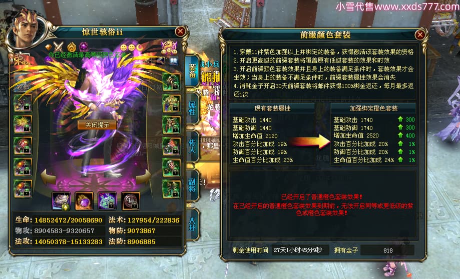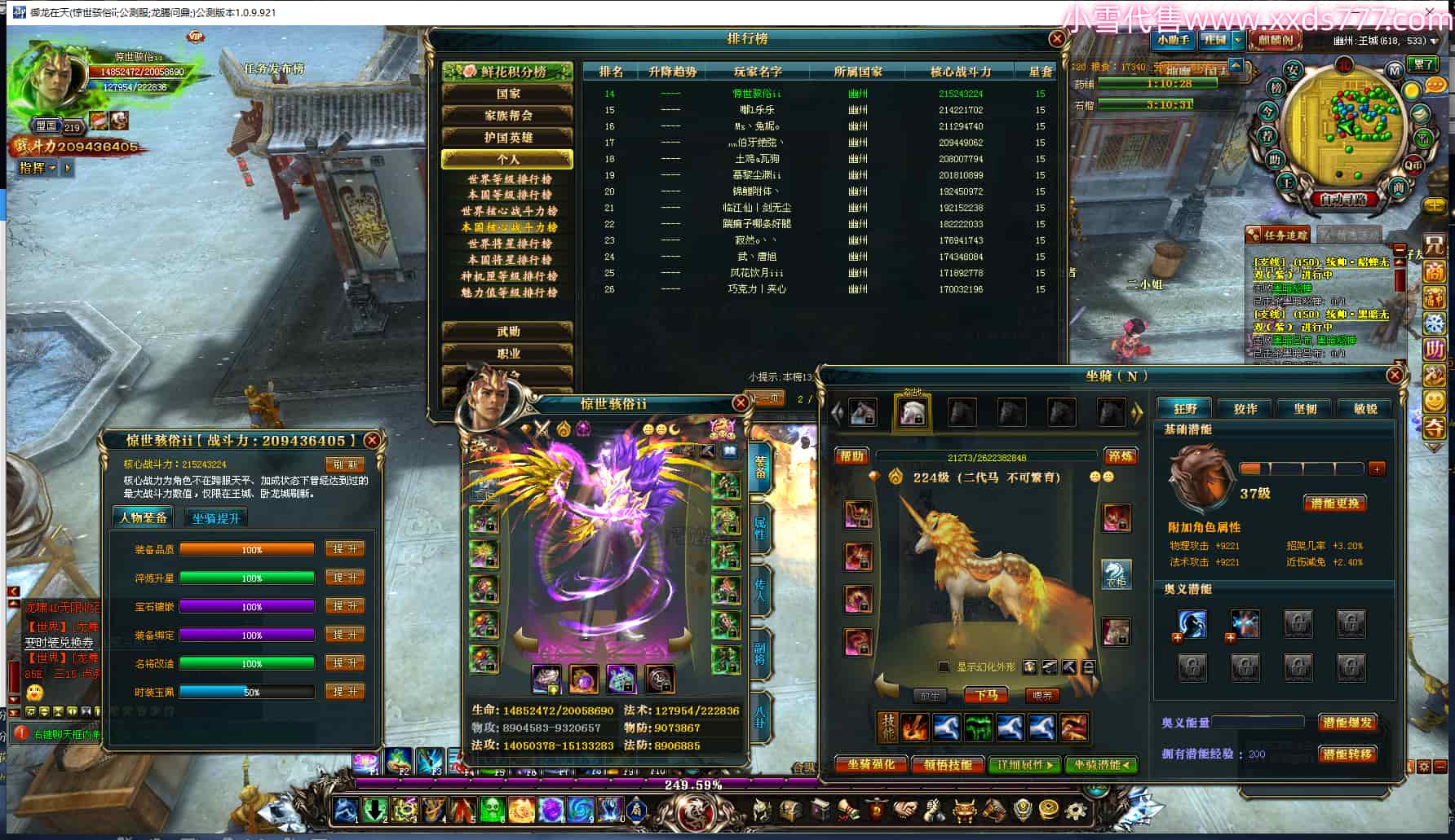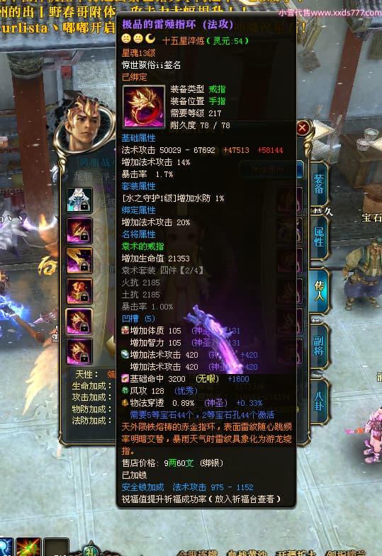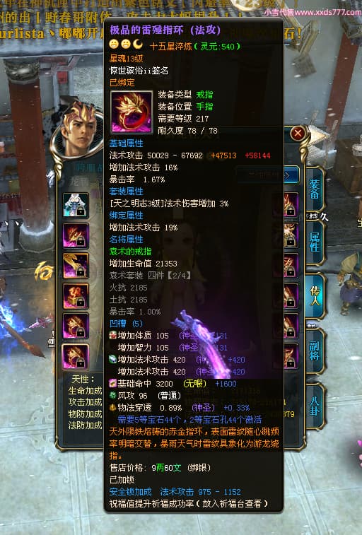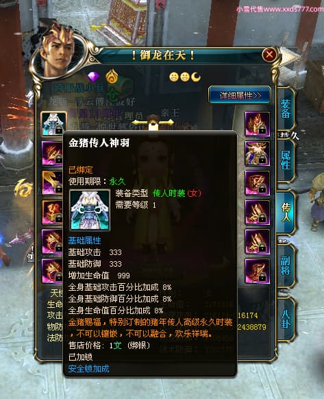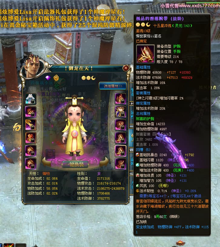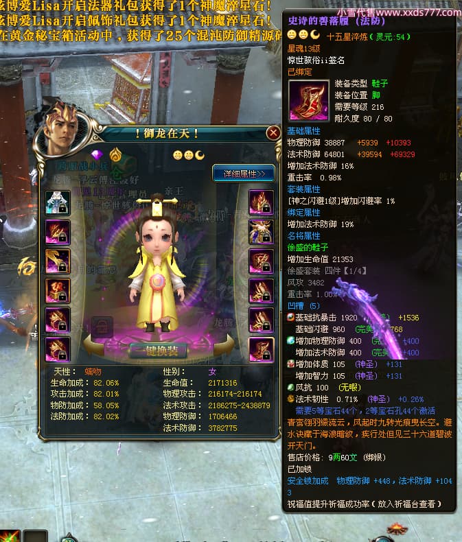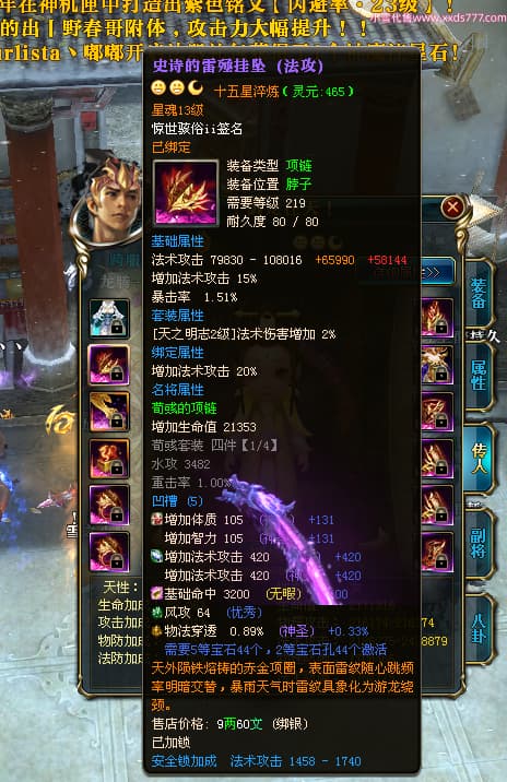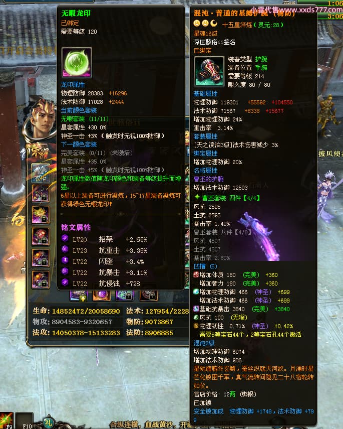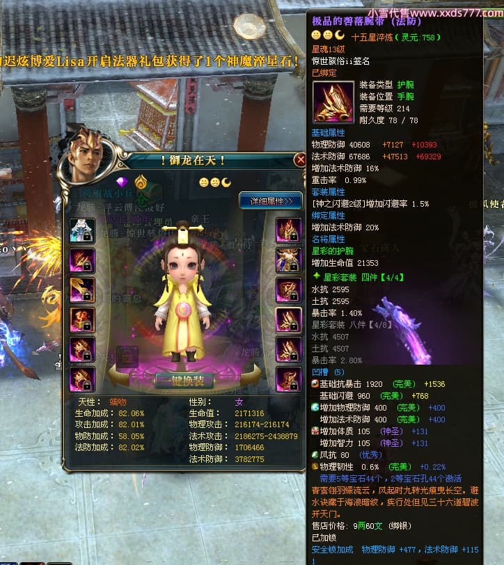 编号T24500 惊世骇俗ii 龙腾问鼎 幽州 本国排名14名 20943W战力 人物黄金普通橙15X(9件混沌) 传人极品紫15X 副将史诗紫15X 马普通橙12X 精良紫15披风 人物星魂16级 传人星魂13级 副将星魂7级 马星魂15级 人物铭刻2件16级其余15级 人物点亮16星 马铭刻3件13级其余12级 点亮12星 人物绿龙印 马黄龙印 六等单双属性完美无暇神圣石头 黄绿孔 可以转移百分百安全