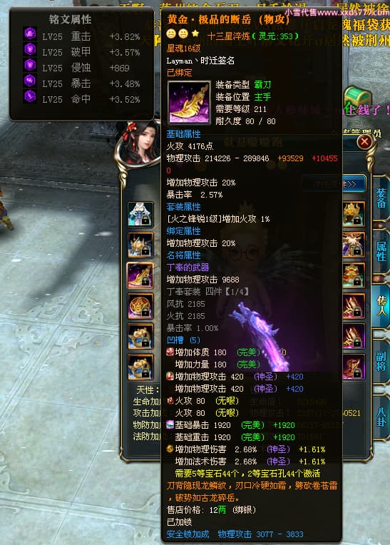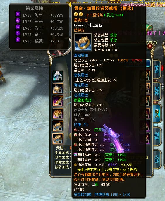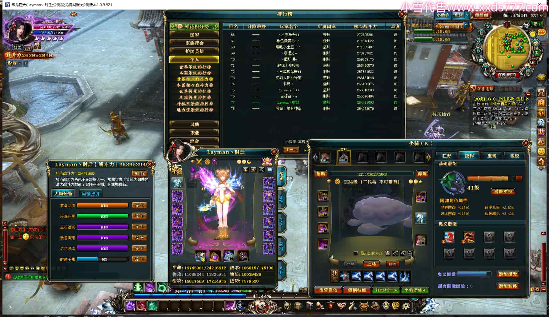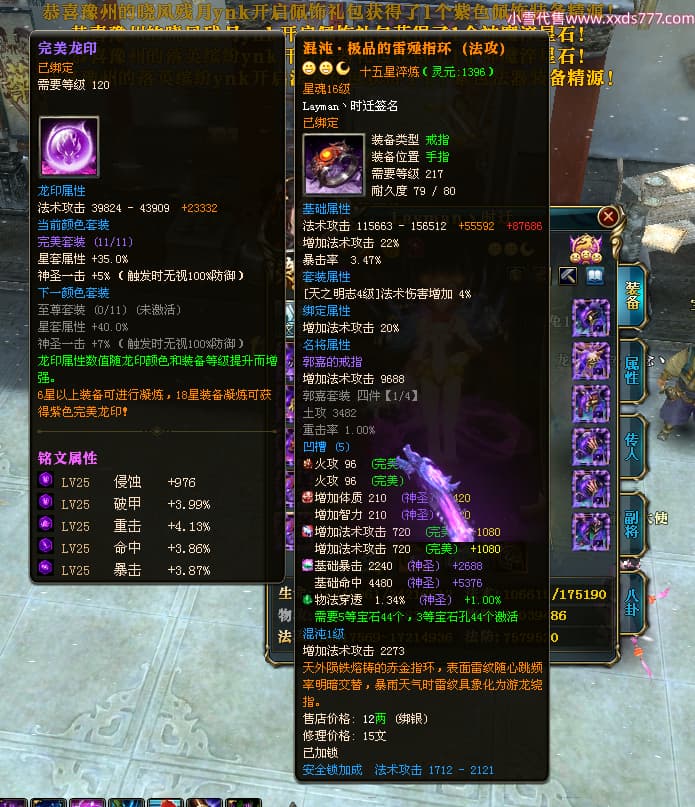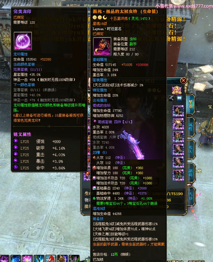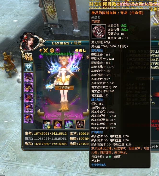 编号T24501 Layman丶时迁 龙腾问鼎 益州 世界排名77名 26395W战力 人物黄金极品橙15X(9件混沌) 传人普通橙12X 副将普通橙12X 马黄金极品橙13X 极品紫16披风 人物星魂16级 传人星魂16级 副将星魂8级 马星魂16级 人物铭刻16级 人物点亮16星 马铭刻15级 点亮14星 人物紫龙印 马黄龙印(2件绿龙印) 六等单双属性神圣完美石头 黄绿紫孔 已开5次永久15星套 可以转移百分百安全
