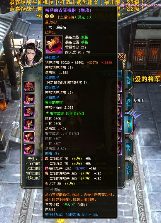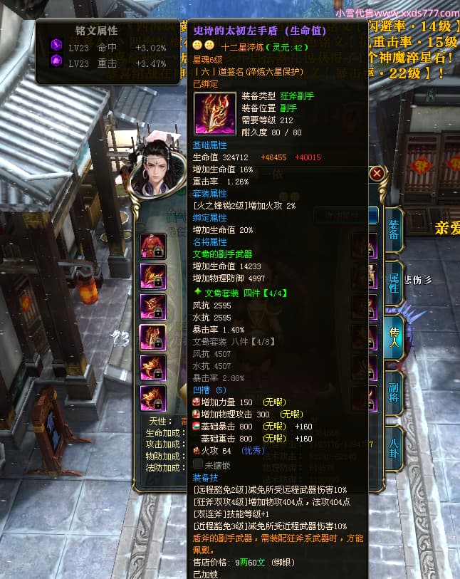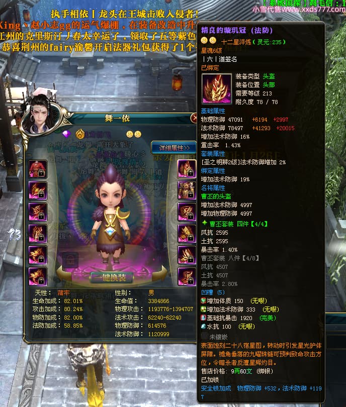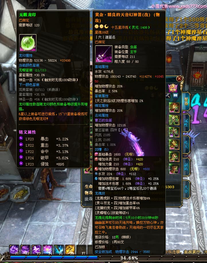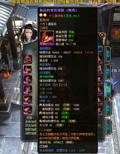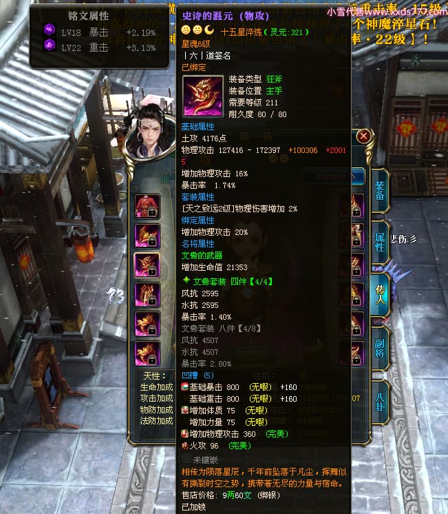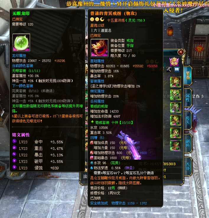 编号W24503 丨六丨道 龙舞九州 江州 本国排名83名 12275W战力 人物普通橙15X(2件混沌) 传人精良紫12X 副将精良紫12X 马史诗紫9X 加强紫13披风 人物星魂12级 传人星魂6级 马星魂6级 人物铭刻4件15级其余12级 点亮1件16星2件14星其余12星 马铭刻12级 点亮10星 人物绿龙印 马黄龙印 五六等单双属性神圣完美无暇石头 蓝孔