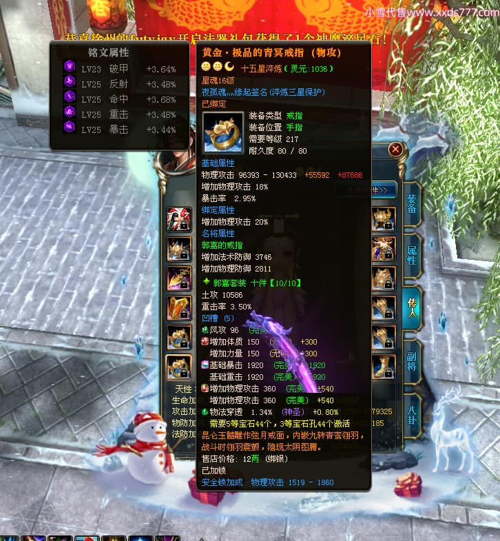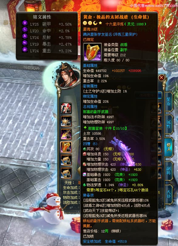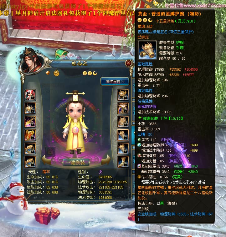 编号T24509 叮咚丨星月神话 龙腾问鼎 荆州 世界排名62名 28928W战力 人物黄金极品橙15X(1件18X9件混沌) 传人黄金普通橙15X 副将极品紫15X 马黄金极品橙13X 极品紫16披风 人物星魂16级 传人星魂16级 副将星魂6级 马星魂16级 人物铭刻6件16级其余15级 点亮16星 马铭刻13级 点亮14星 人物绿龙印(2件紫龙印) 马黄龙印(3件绿龙印) 六等单双属性完美无暇神圣石头 黄绿孔 已开完永久15星套 可以转移百分百安全