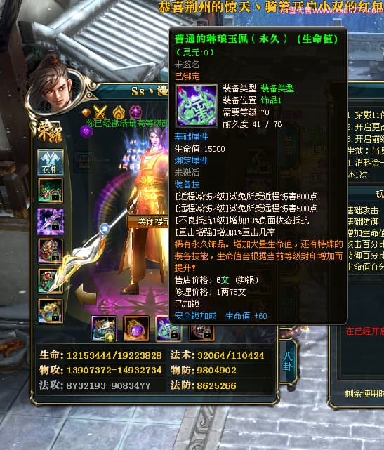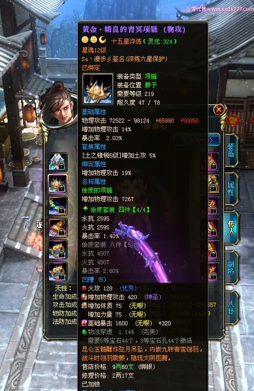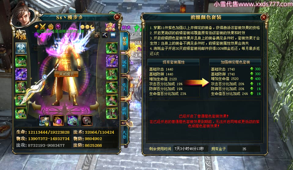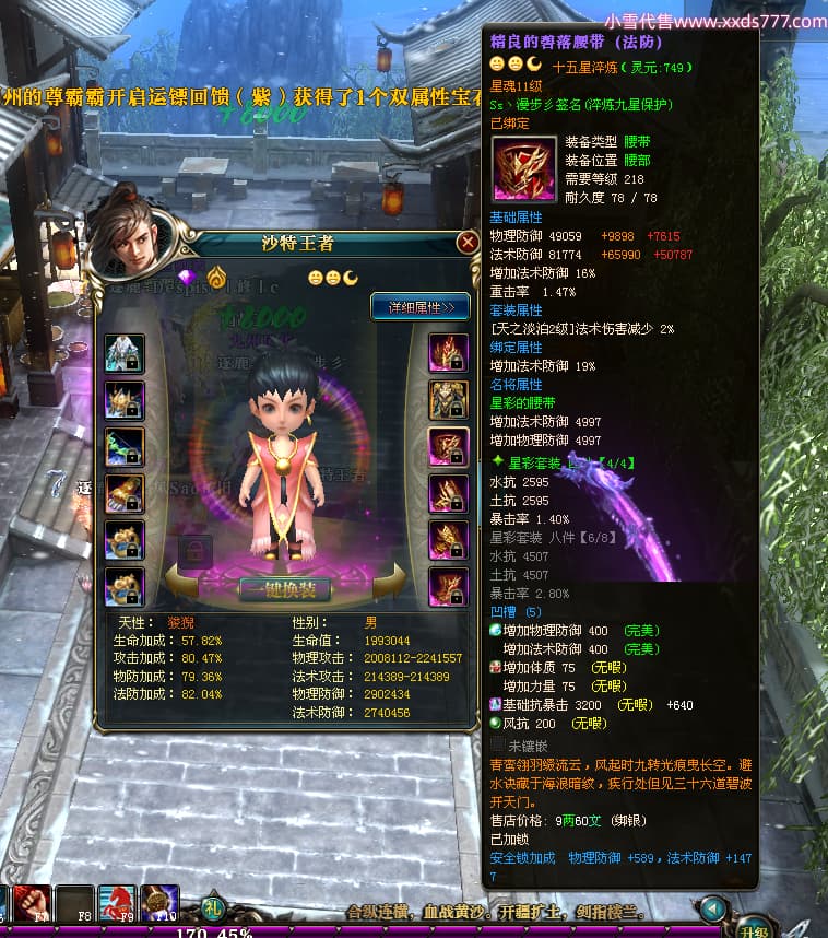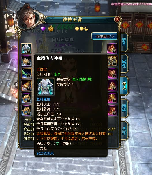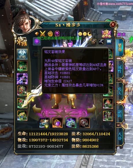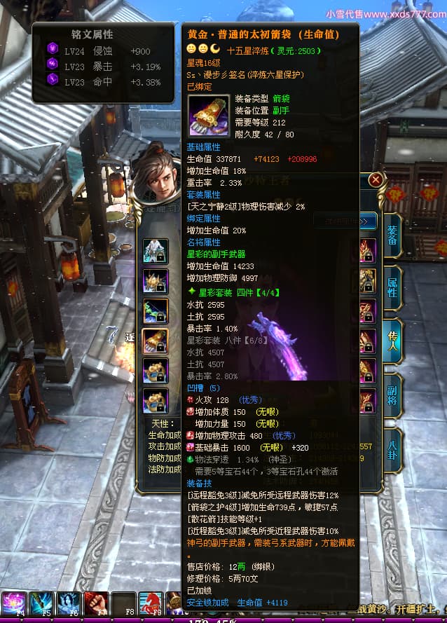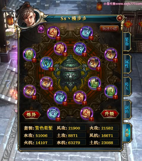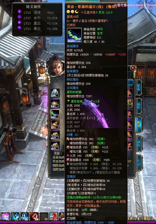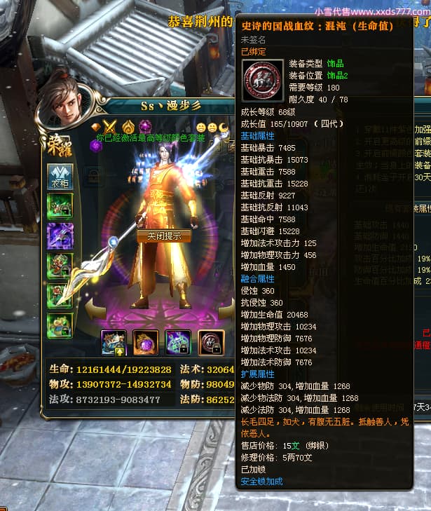 编号Z24510 Ss丶漫步彡 逐鹿天下 燕州 本国排名18名 20519W战力 人物黄金普通橙15X(8件混沌) 传人精良紫15X 副将史诗紫12X 马史诗紫12X 极品紫15披风 人物星魂16级 传人星魂11级 副将星魂6级 马星魂16级 人物铭刻15级 人物点亮16星 马铭刻1件13级其余12级 点亮12星 人绿龙印(2件紫龙印) 马黄龙印 六等单双属性神圣完美无暇石头 黄绿孔