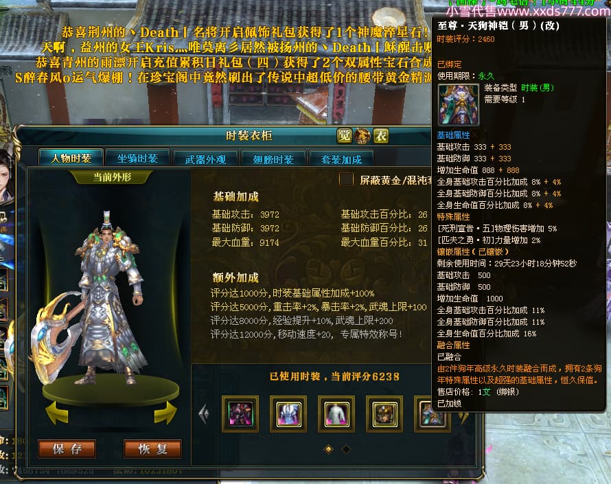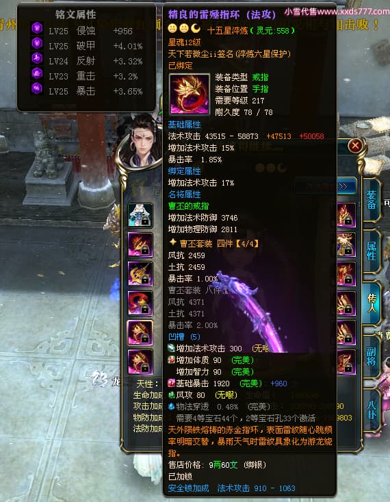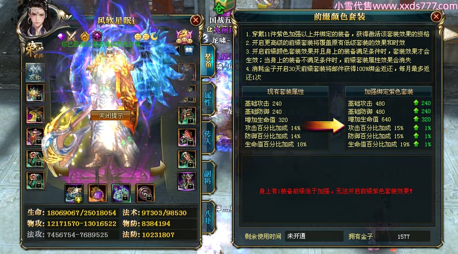编号X24511 风软星眠i 龙啸风云 江州 本国排名20名 21060W战力(未开套装) 人物黄金普通橙15X(2件18X8件混沌) 传人精良紫15X 副将精良紫12X 马史诗紫12X 极品紫16披风 人物星魂16级 传人星魂12级 副将星魂6级 马星魂15级 人物铭刻1件18级1件17级其余15级 人物点亮16星 马铭刻12级 点亮12星 人物绿龙印 马黄龙印 六等单双属性神圣完美优秀石头 黄蓝孔 已开完永久18星套
