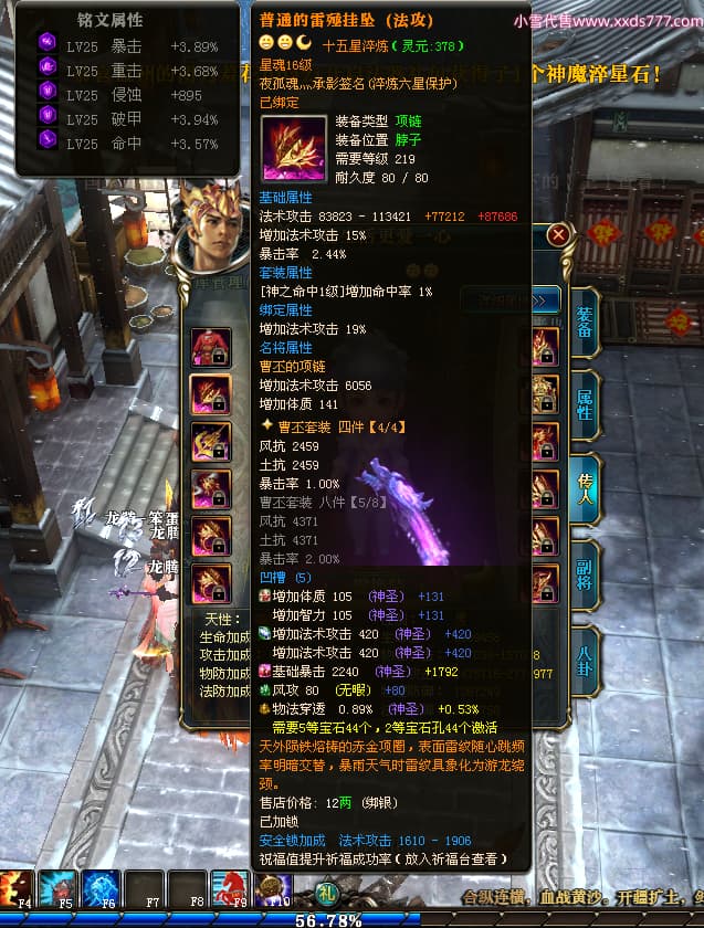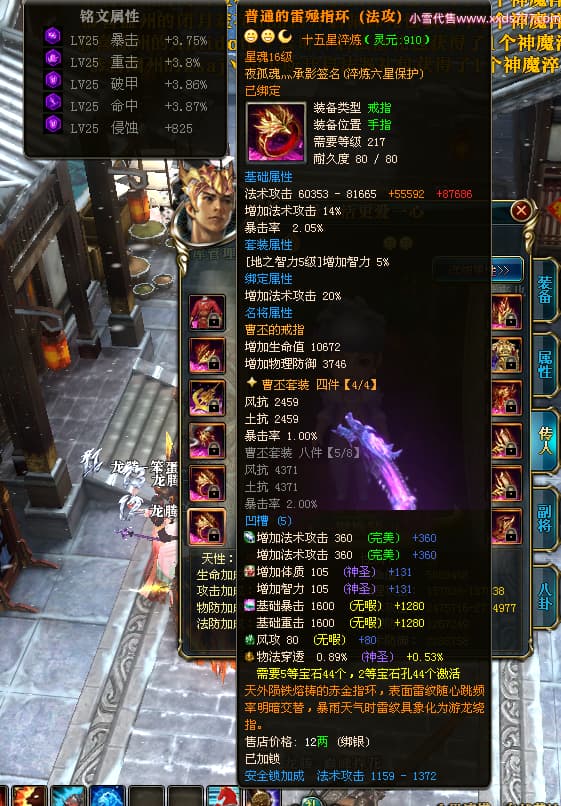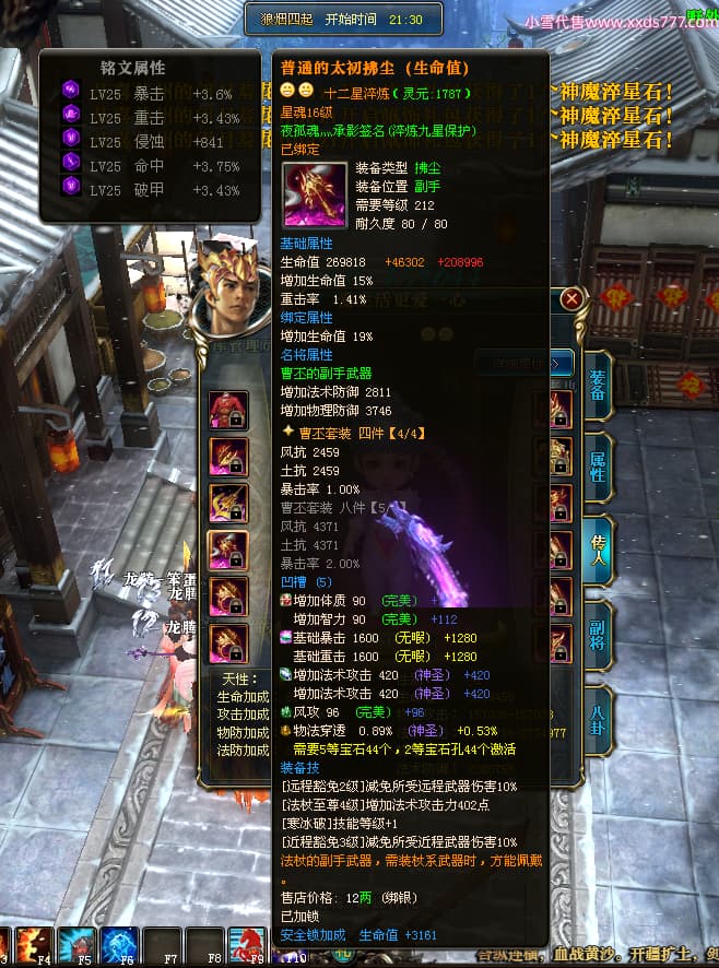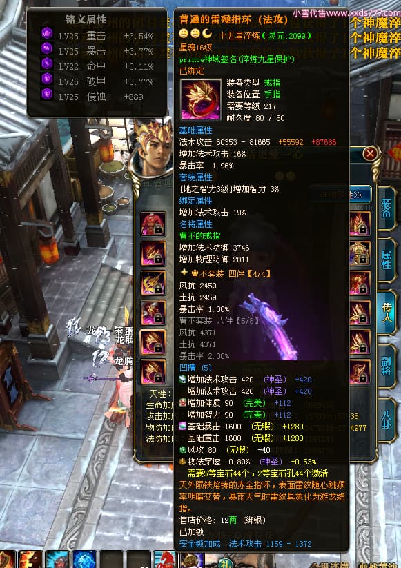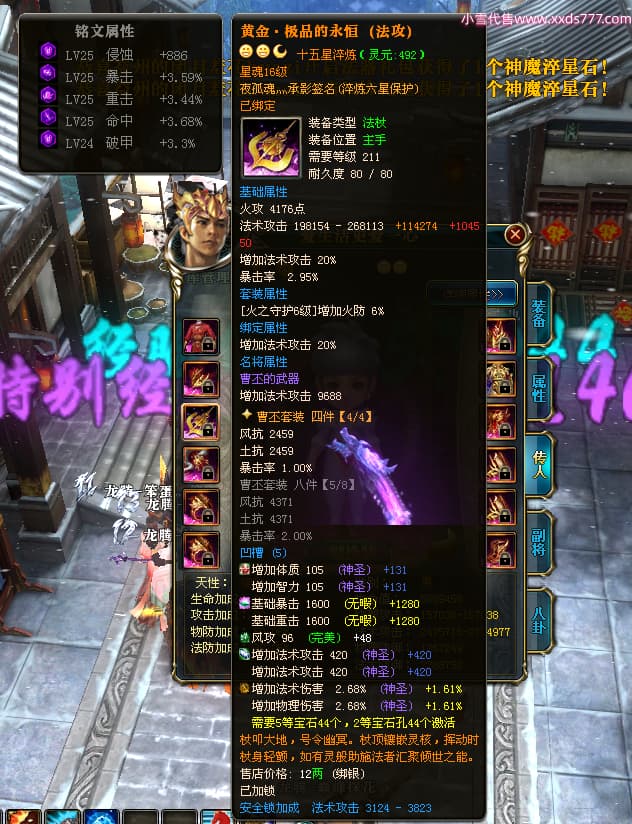 编号T24517 prince神域 龙腾问鼎 荆州 世界排名101名 24460W战力 人物黄金极品橙15X(2件18X8件混沌) 传人普通橙12X(10件15X) 副将史诗紫12X 马加强橙12X 极品紫16披风 人物星魂16级 传人星魂15级 副将星魂6级 马星魂16级 人物铭刻1件18级1件17级3件16级其余15级 人物点亮16星 马铭刻13级 点亮2件14星其余12星 人物绿龙印 马黄龙印 六等单双属性神圣完美石头 黄绿孔