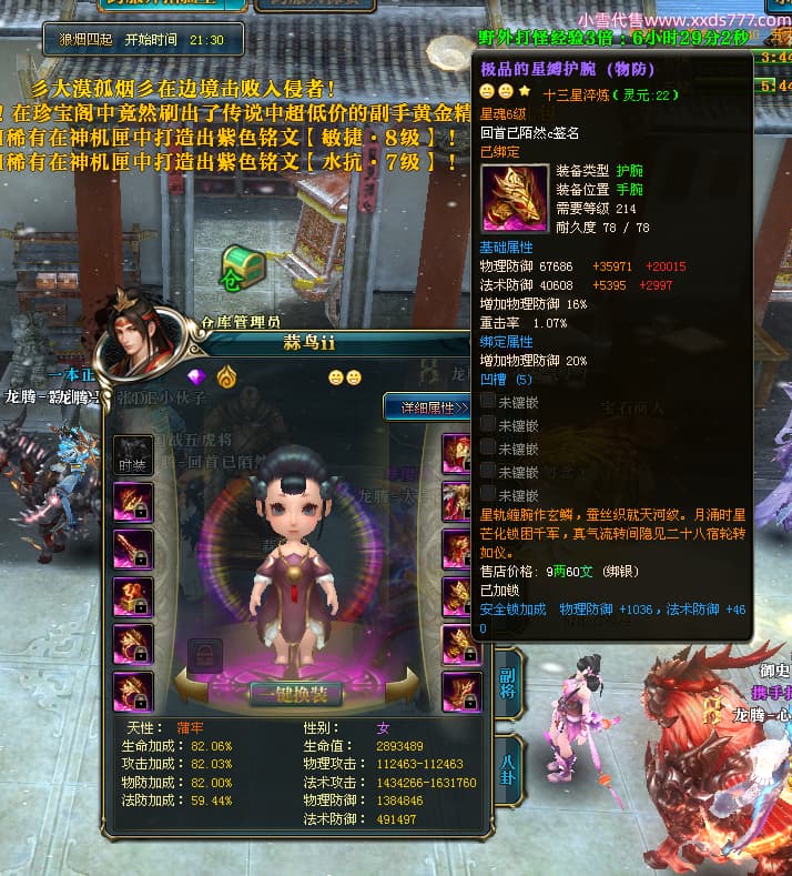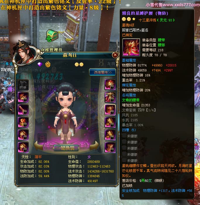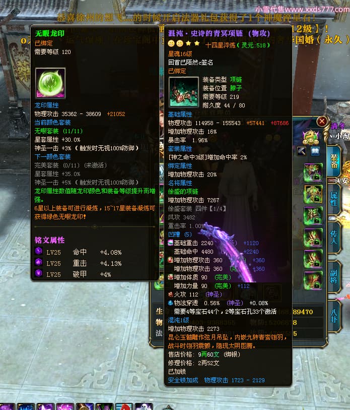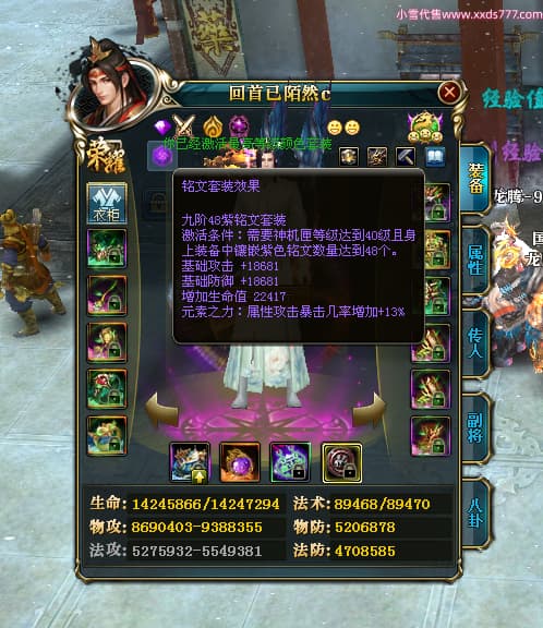 编号T24519 回首已陌然c 龙腾问鼎 益州 本国排名42名 12548W战力 人物史诗紫14X(1件18X1件15X4件混沌) 传人极品紫12X 副将精良紫12X 马史诗紫9X 精良紫13披风 人物星魂12级 传人星魂6级 副将星魂6级 马星魂9级 人物铭刻15级 人物点亮14星 马铭刻12级 点亮10星 人绿龙印 马黄龙印 五六等单双属性神圣完美石头 蓝孔 可以转移百分百安全