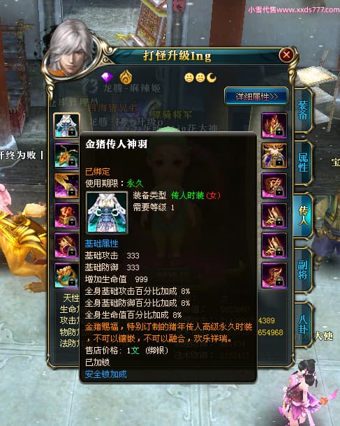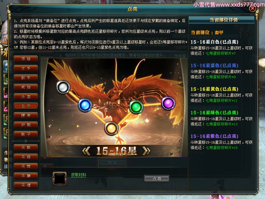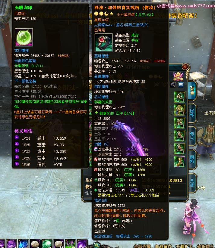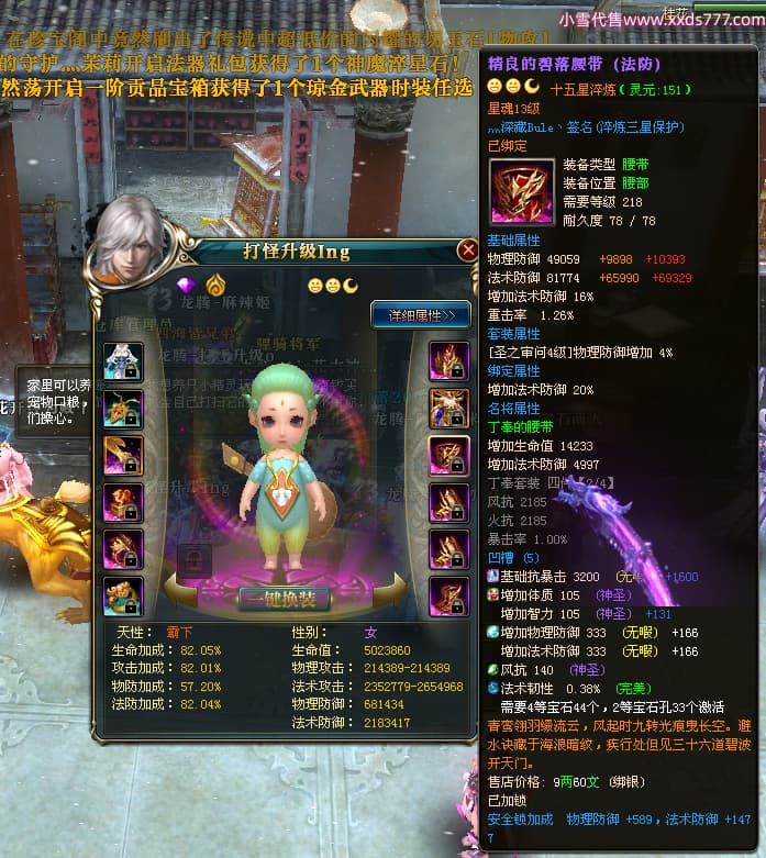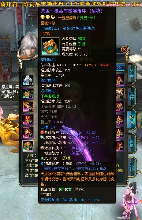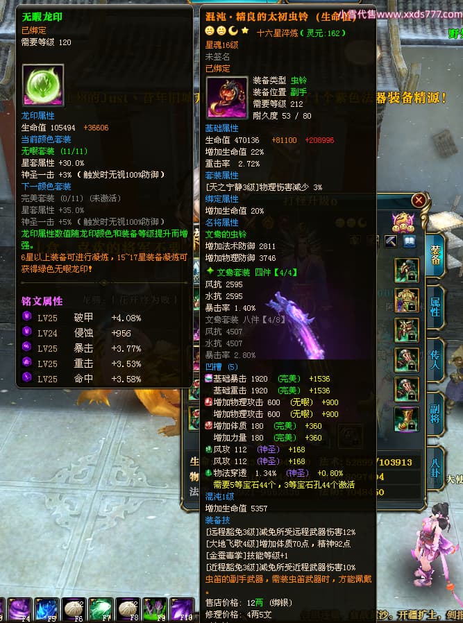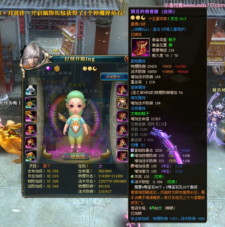 编号T24524 打怪升级o 龙腾问鼎 益州 本国排名14名 20421W战力 人物黄金普通橙15X(8件混沌) 传人精良紫15X 副将精良紫15X 马加强橙12X 精良紫15披风 人物星魂16级 传人星魂13级 副将星魂6级 马星魂15级 人物铭刻15级 人物点亮16星 马铭刻12级 点亮12星 人物绿龙印 马黄龙印 六等单双属性完美无暇神圣石头 黄孔