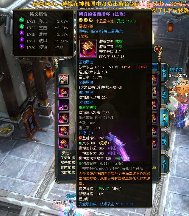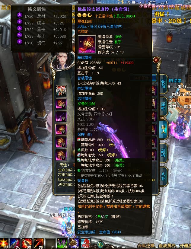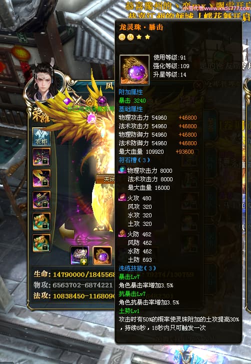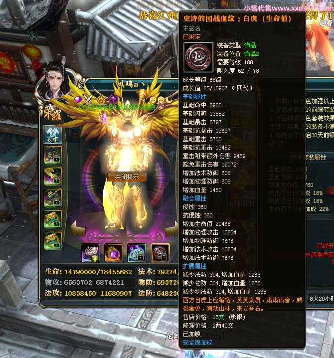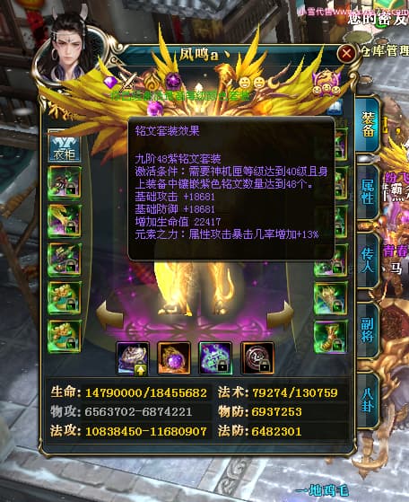 编号W24530 凤鸣a丶 龙舞九州 豫州 16089W战力 人物黄金普通橙15X(5件混沌) 传人精良紫15X 副将精良紫12X 马史诗紫11X 极品紫14披风 人物星魂16级 传人10级 副将6级 马星魂11级 人物铭刻15级 点亮16星 马铭刻12级 点亮12星 人物绿龙印 马黄龙印 五六等单双属性神圣完美无瑕石头 黄蓝孔