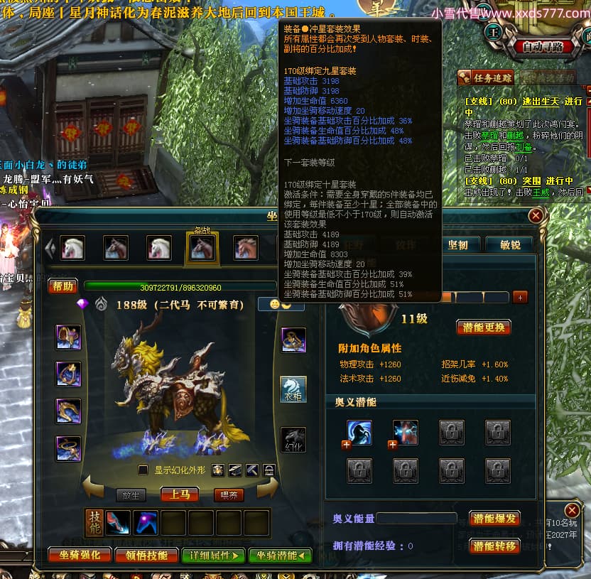 编号T24553 心怡宝贝灬 龙腾问鼎 益州 190级 人物12X点星号 马9X 人物高淬66个 坐骑中淬144个