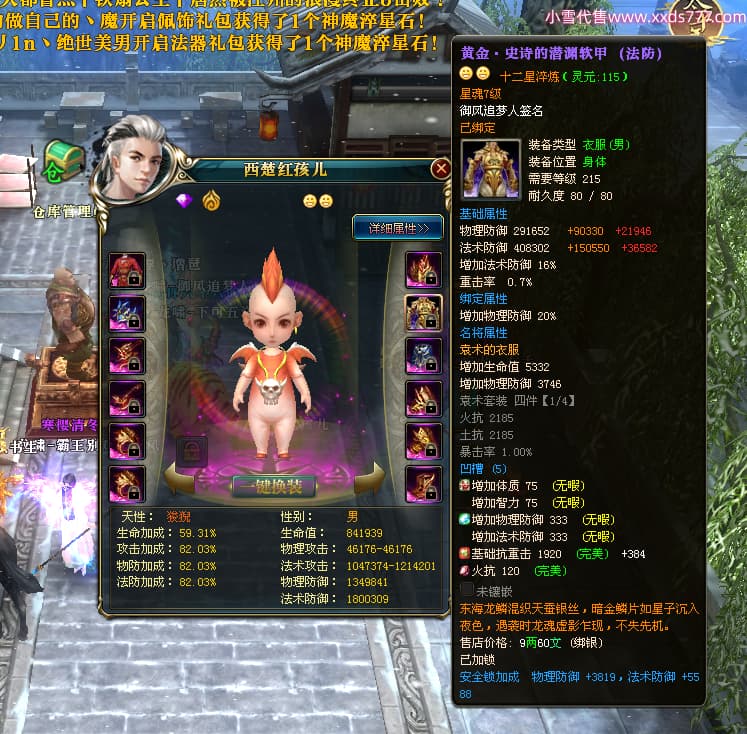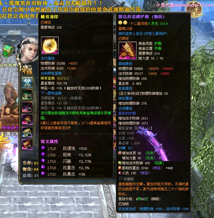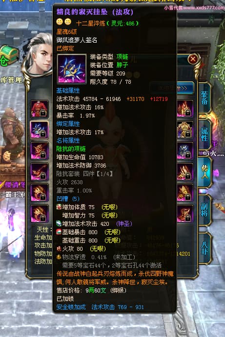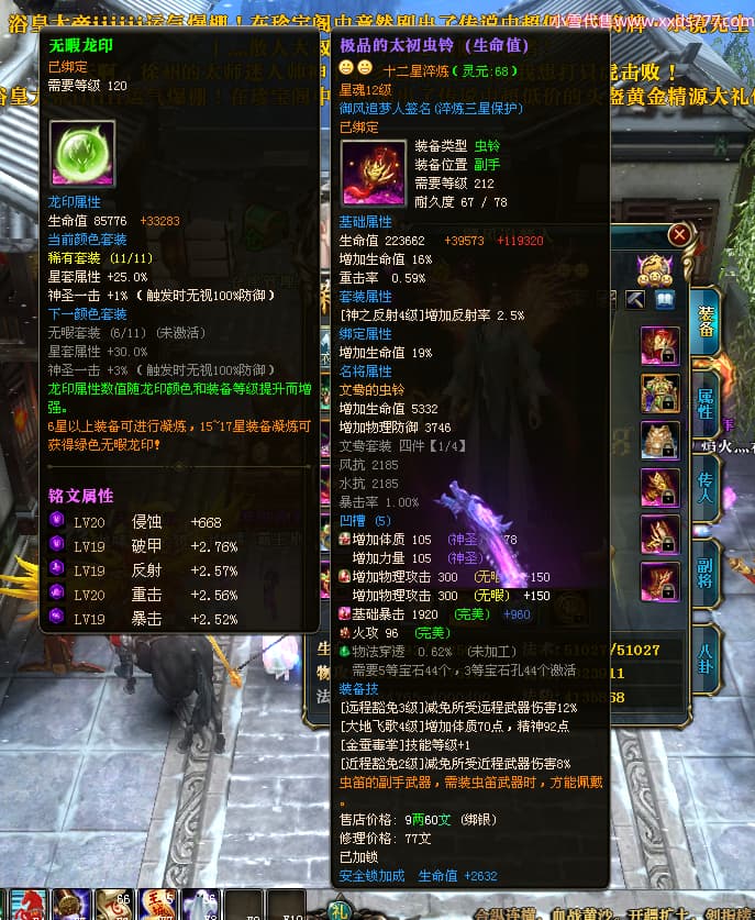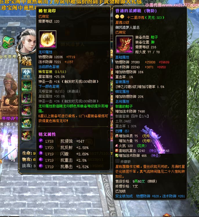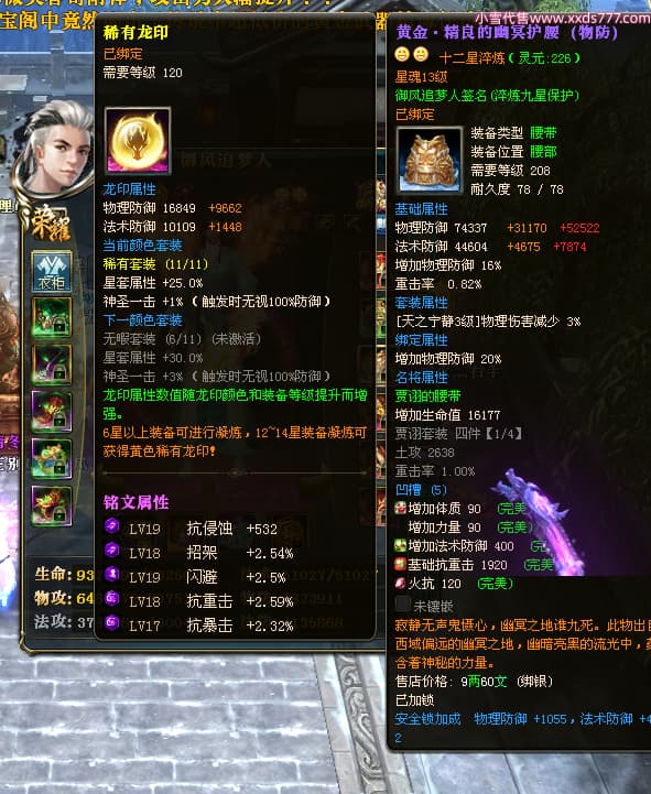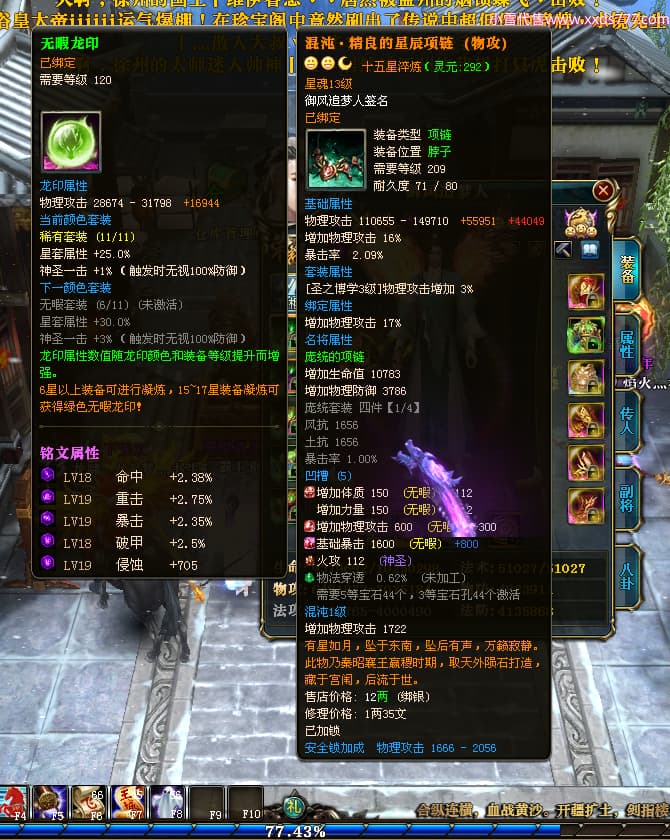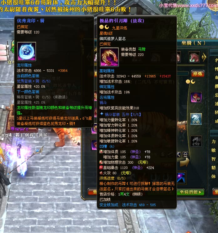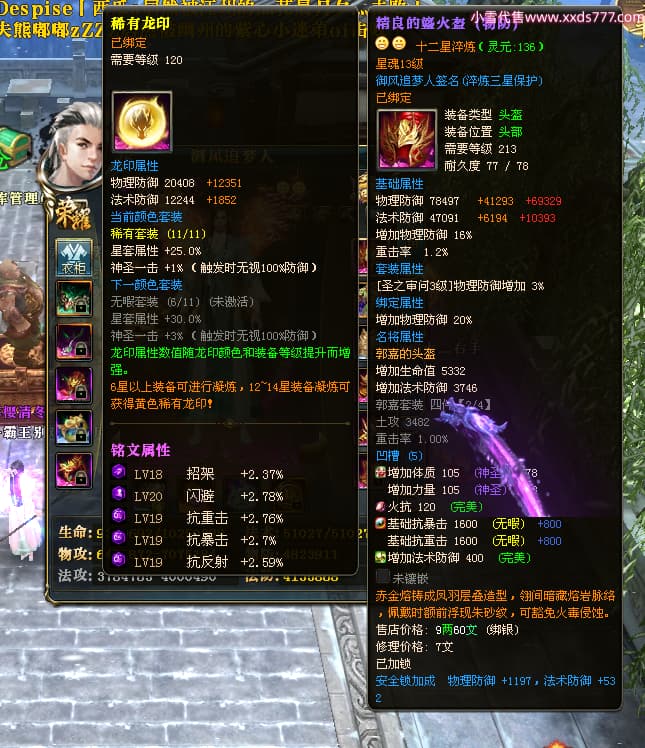 编号X24564 御风追梦人 龙啸风云 江州 8728W战力 人物精良紫12X(2件15X) 传人精良紫12X 马极品紫9X 加强紫14X披风 人物星魂12级 传人6级 马6级 人物铭刻3件15级1件14级1件13级其余12级 点亮2件16星3件14星其余12星 马铭12级 点亮10星 人物黄龙印(6件绿龙印) 马蓝龙印(1件黄龙印) 五等单双属性神圣完美无暇石头 白孔