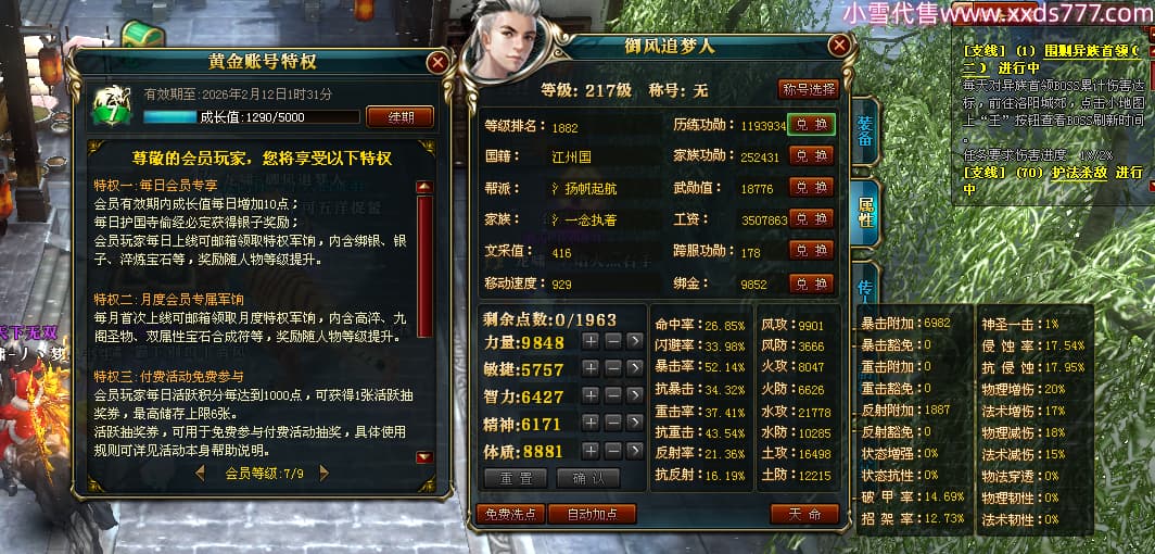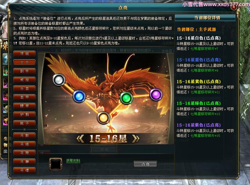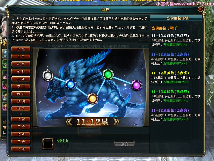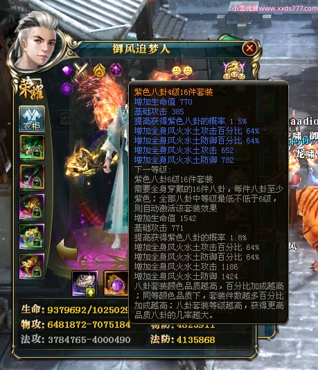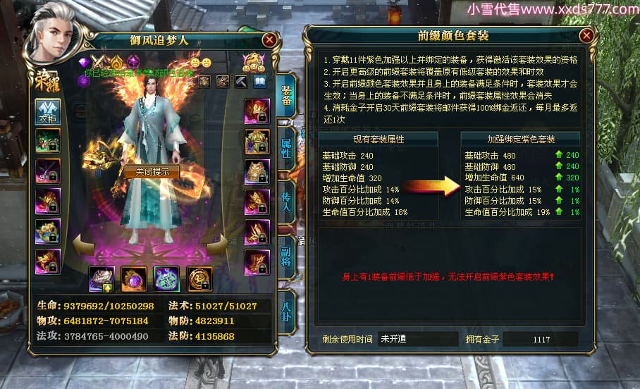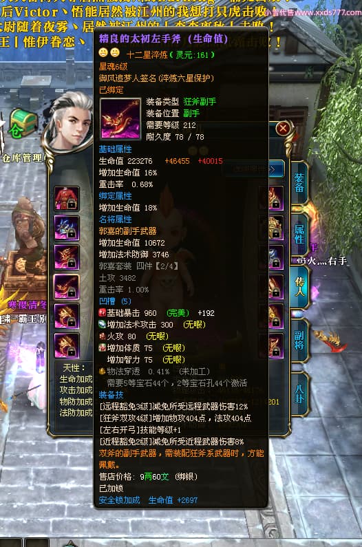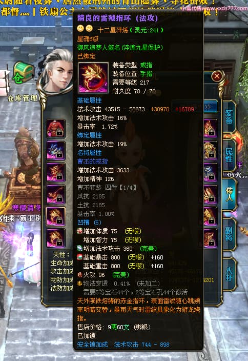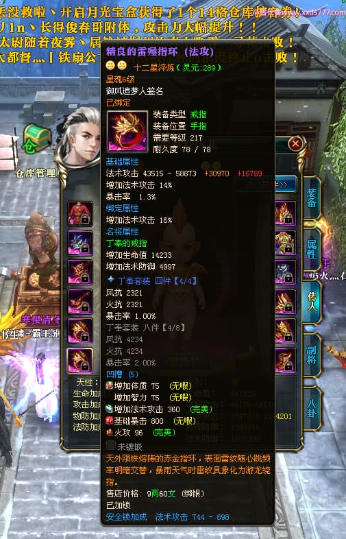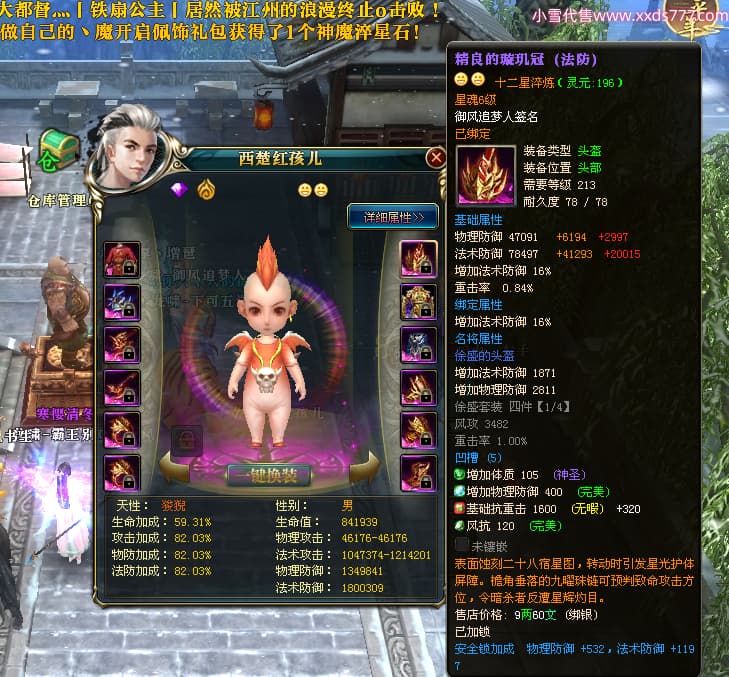 编号X24564 御风追梦人 龙啸风云 江州 8728W战力 人物精良紫12X(2件15X) 传人精良紫12X 马极品紫9X 加强紫14X披风 人物星魂12级 传人6级 马6级 人物铭刻3件15级1件14级1件13级其余12级 点亮2件16星3件14星其余12星 马铭12级 点亮10星 人物黄龙印(6件绿龙印) 马蓝龙印(1件黄龙印) 五等单双属性神圣完美无暇石头 白孔