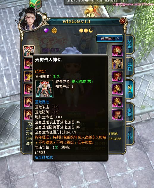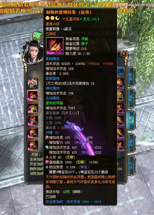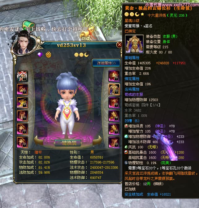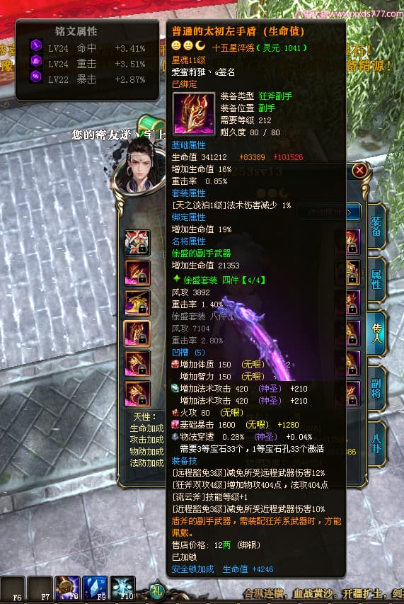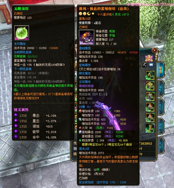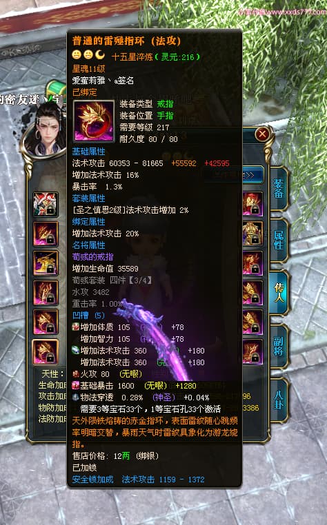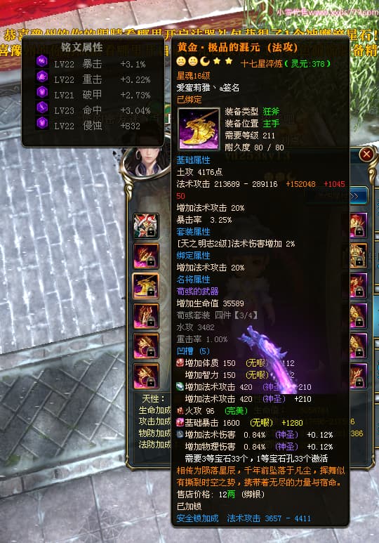 编号T24568 爱蜜莉雅丶a 龙腾问鼎 江州 本国排名20名 21742W战力 人物黄金普通橙16X(2件18X7件混沌) 传人极品紫15X 副将史诗紫12X 马普通橙12X 精良紫15披风 人物星魂16级 传人星魂10级 副将星魂6级 马星魂15级 人物铭刻1件16级其余15级 人物点亮16星 马铭刻1件15级2件14级1件13级其余12级 点亮12星 人物绿龙印 马黄龙印 六等单双属性完美无暇神圣石头 黄绿孔