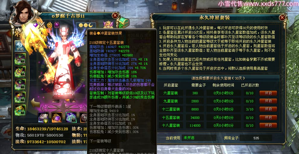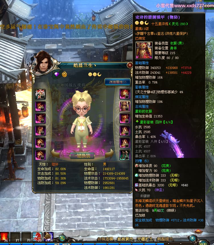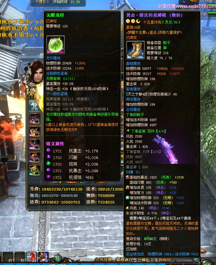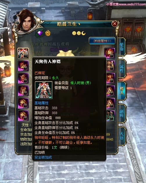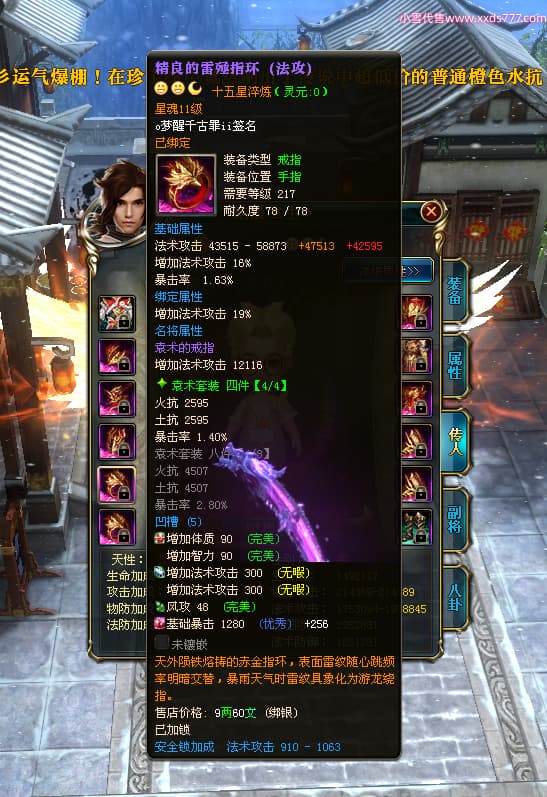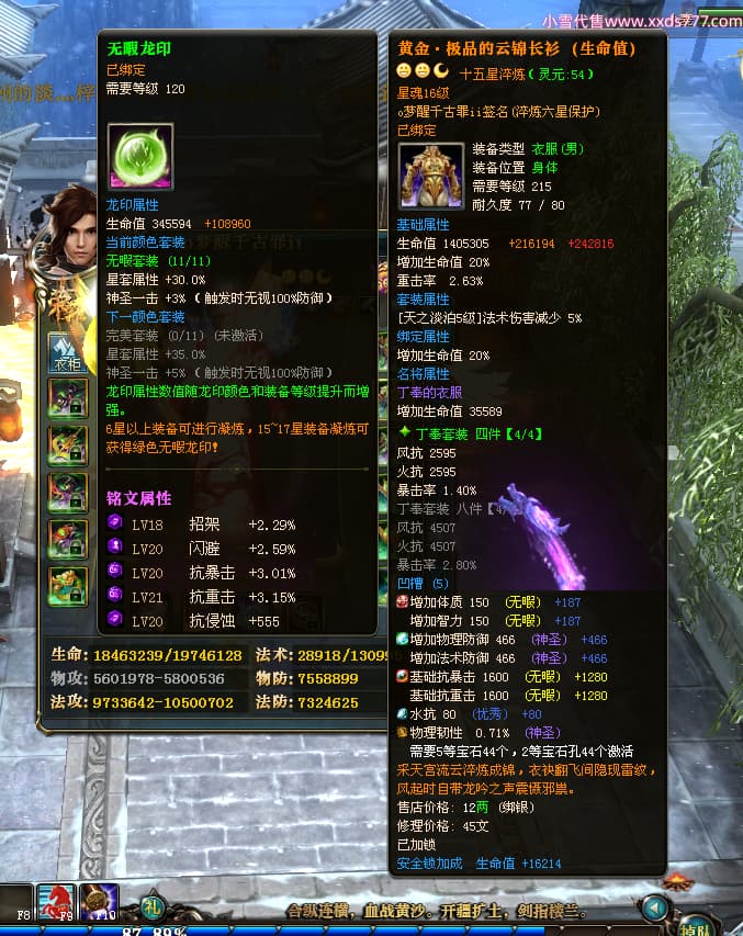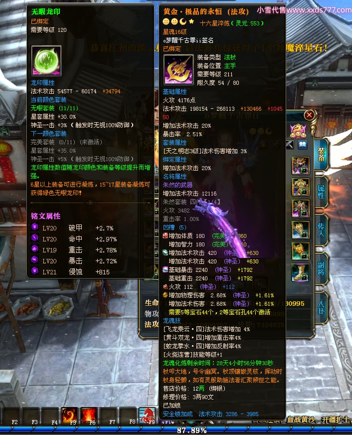 编号T24577 o梦醒千古罪ii 龙腾问鼎 豫州 本国排名25名 15772W战力 人物黄金普通橙15X(5件混沌) 传人精良紫15X 副将精良紫12X 马普通橙10X 精良紫15披风 人物星魂16级 传人星魂11级 副将星魂6级 马星魂11级 人物铭刻15级 点亮16星 马铭刻12级 点亮10星 人物绿龙印 马黄龙印 六等单双属性完美无暇神圣石头 黄蓝孔