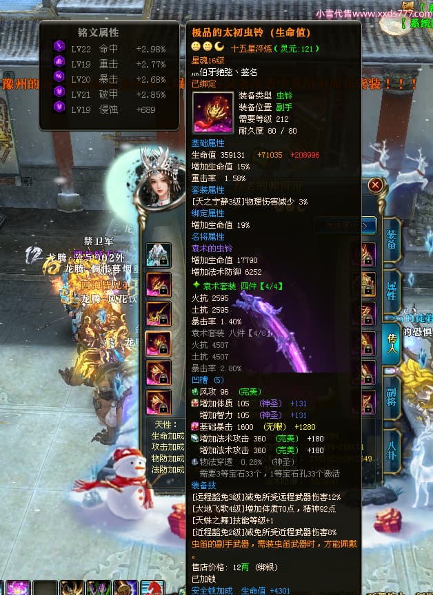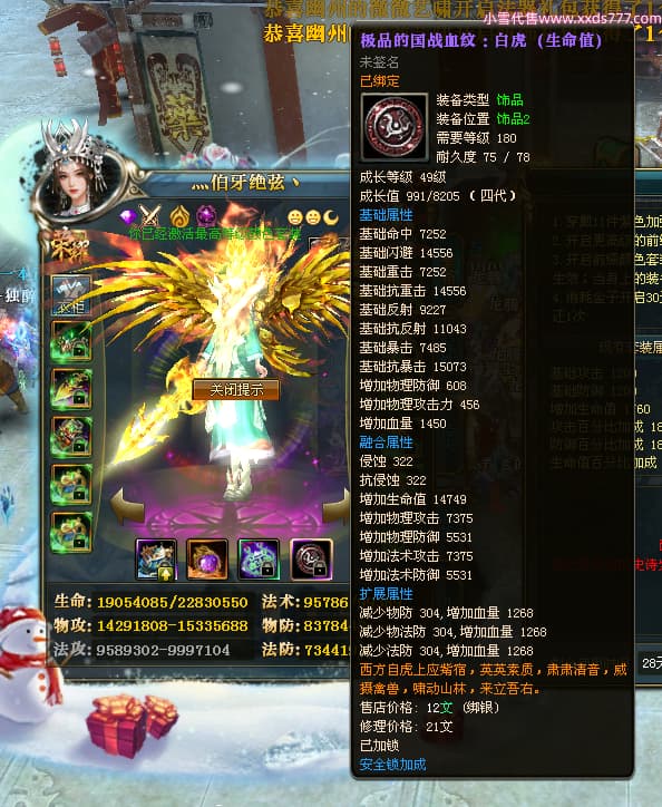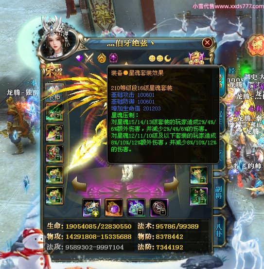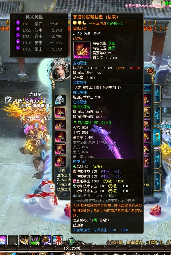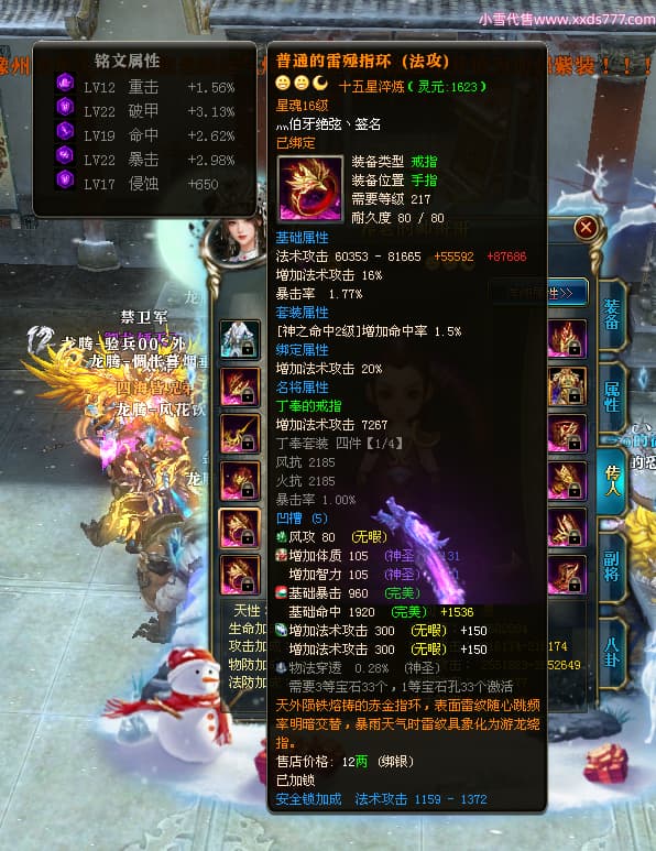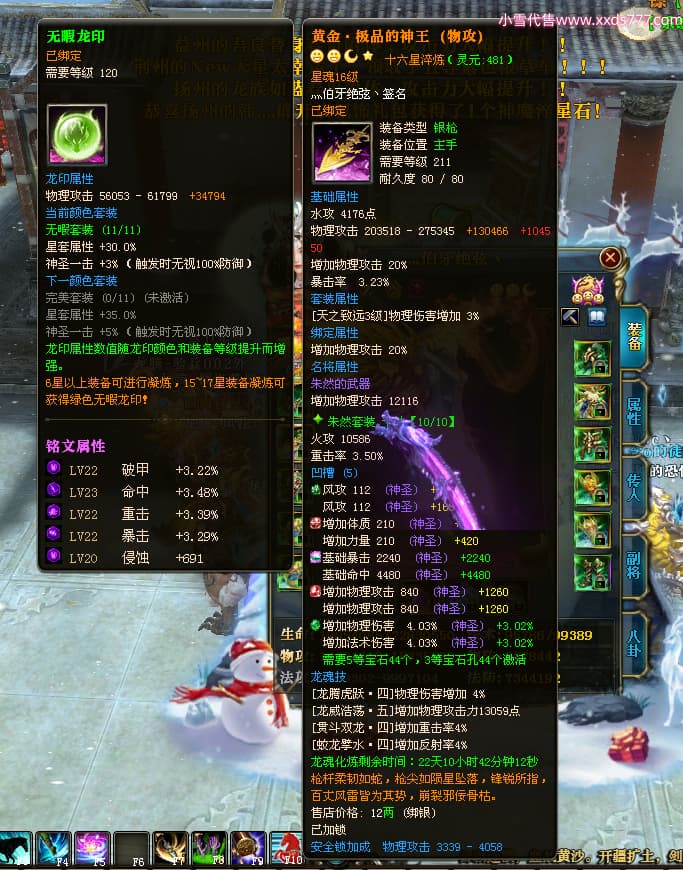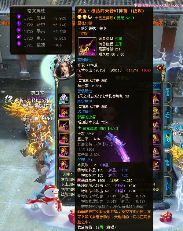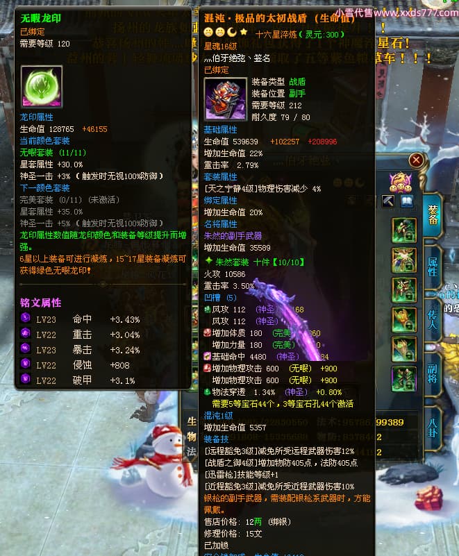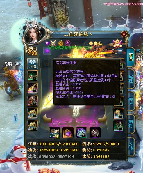 编号T24597 灬伯牙绝弦丶 龙腾问鼎 幽州 本国排名16名 21119W战力 人物黄金普通橙15X(5件混沌) 传人极品紫15X 副将史诗紫12X 马普通橙12X 极品紫15披风 人物星魂16级 传人星魂16级 副将星魂6级 马星魂16级 人物铭刻2件17级其余15级 人物点亮16星 马铭刻15级 点亮12星 人绿龙印 马黄龙印 六等单双属性神圣完美石头 黄绿孔 可以转移百分百安全
