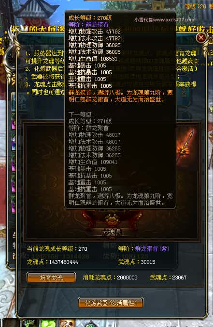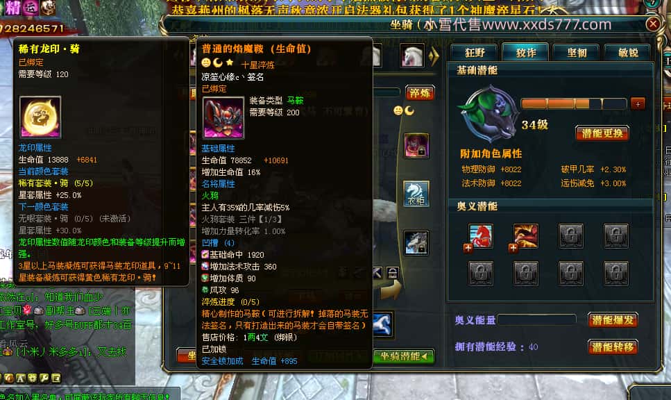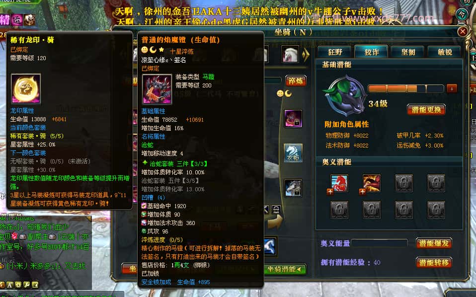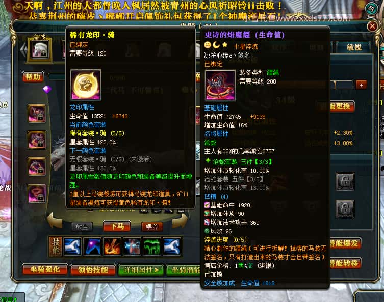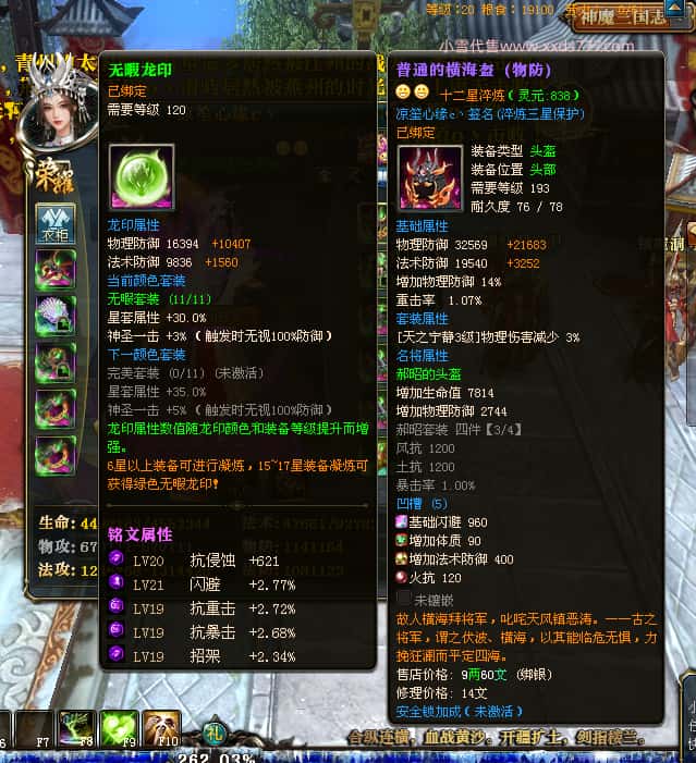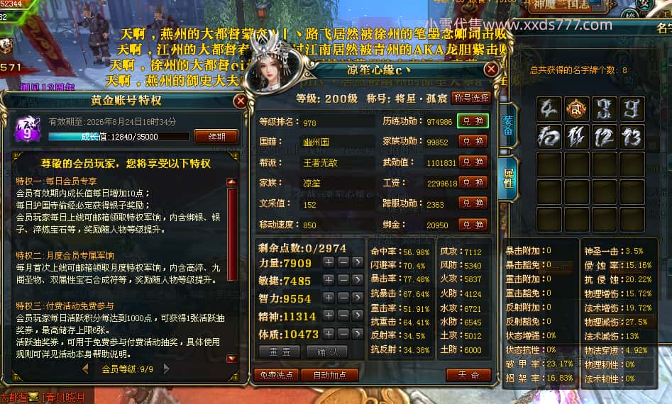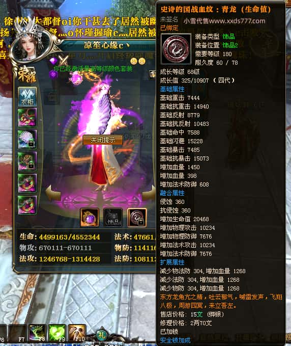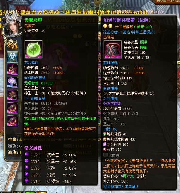 编号L24622 凉笙心缘c丶 龙战王者 幽州 200级 2824W战力 人物普通紫12X 马史诗紫9X 龙魂270级 人物绿龙印 马黄龙印 6666等单双属性石头
