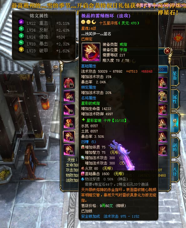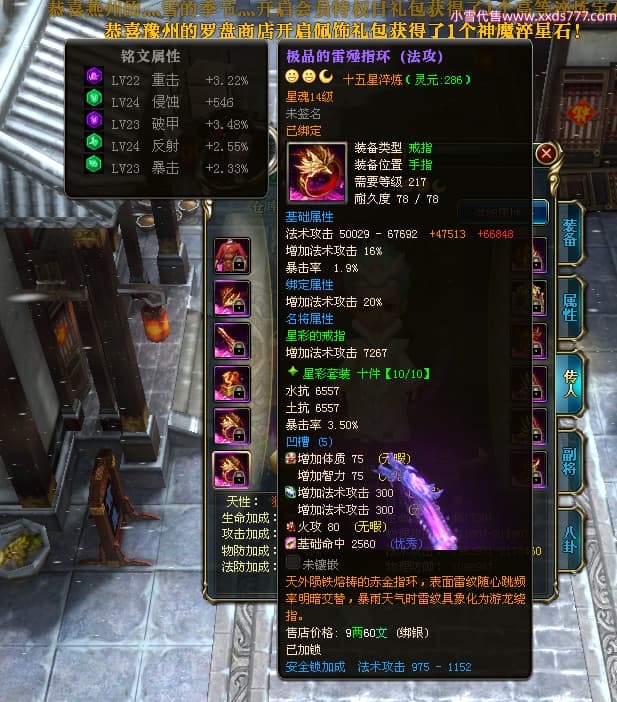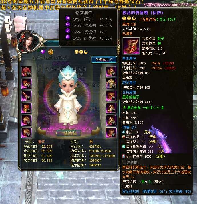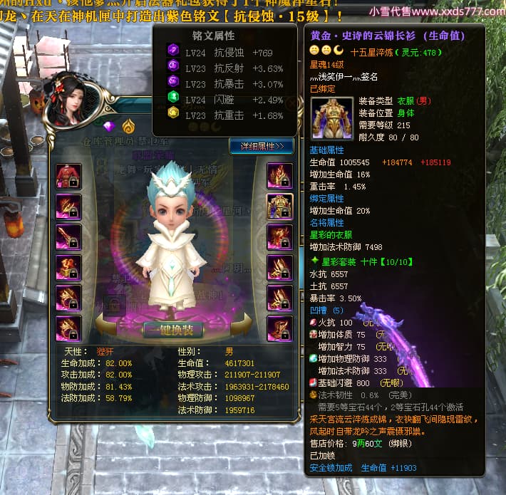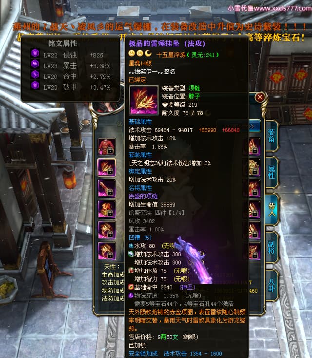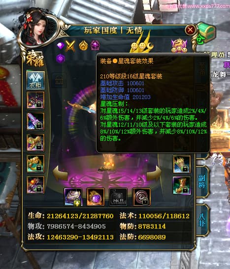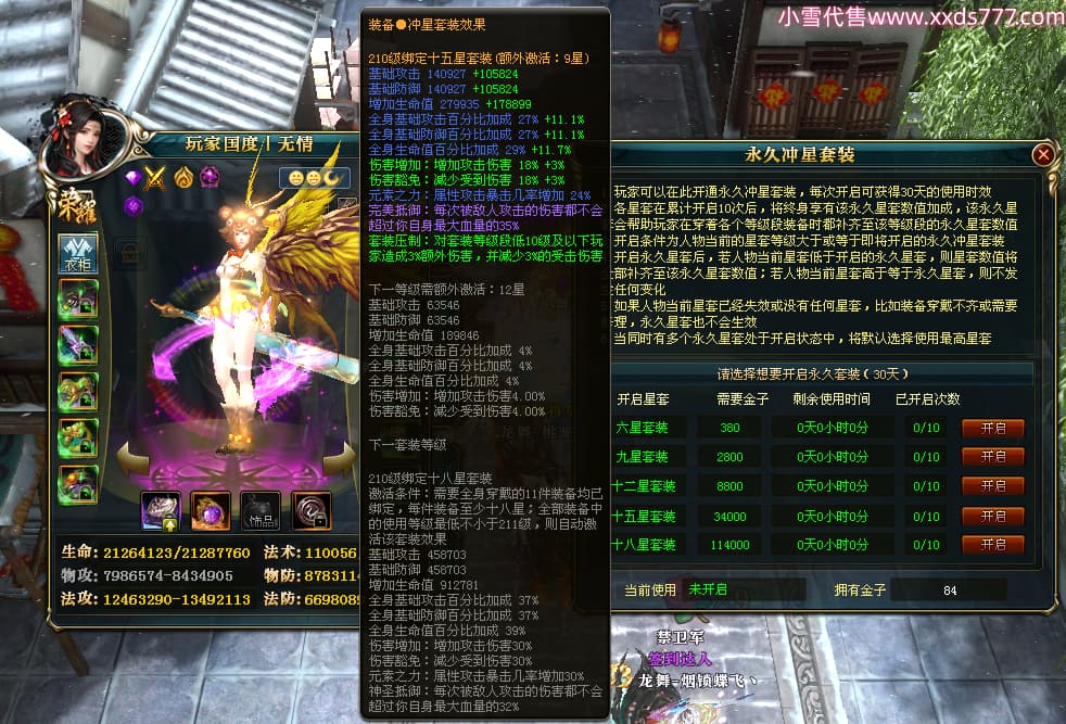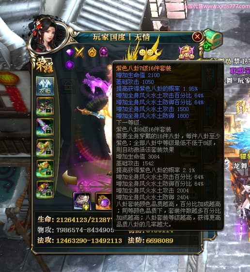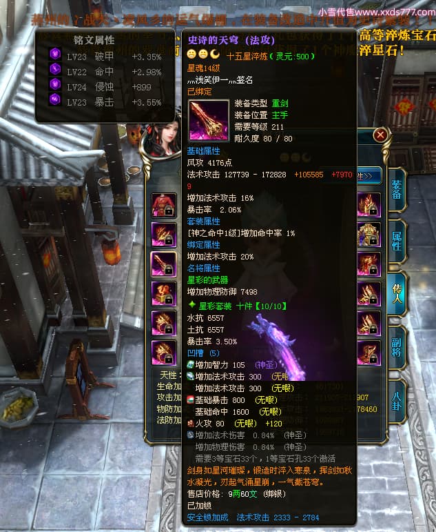 编号W24628 玩家国度丨无情 龙舞九州 益州 本国排名9名 18720W战力 人物黄金加强橙16X(5件混沌) 传人极品紫15X 副将精良紫12X 马加强橙12X 精良紫15披风 人物星魂16级 传人星魂13级 副将星魂6级 马星魂12级 人物铭刻16级 人物点亮16星 马铭刻12级 点亮12星 人物绿龙印 马黄龙印 五六等单双属性完美无暇神圣石头 蓝黄孔