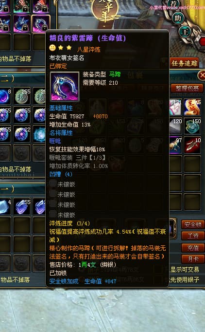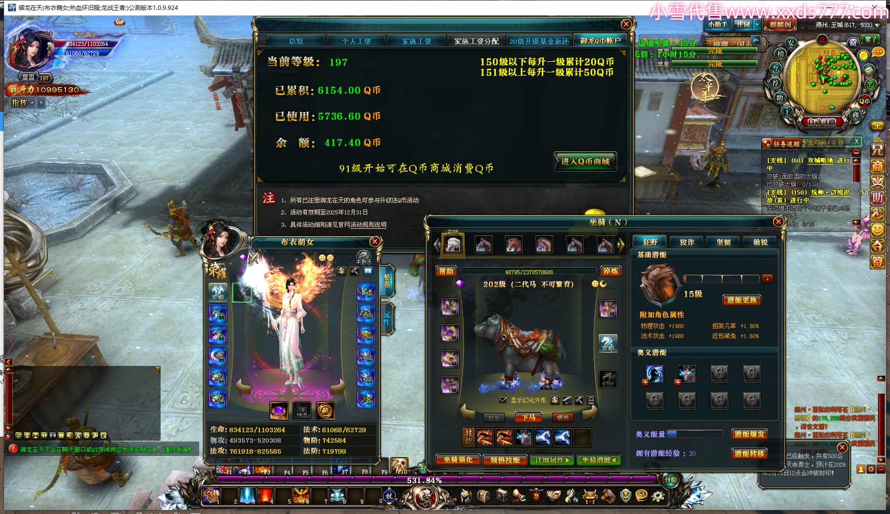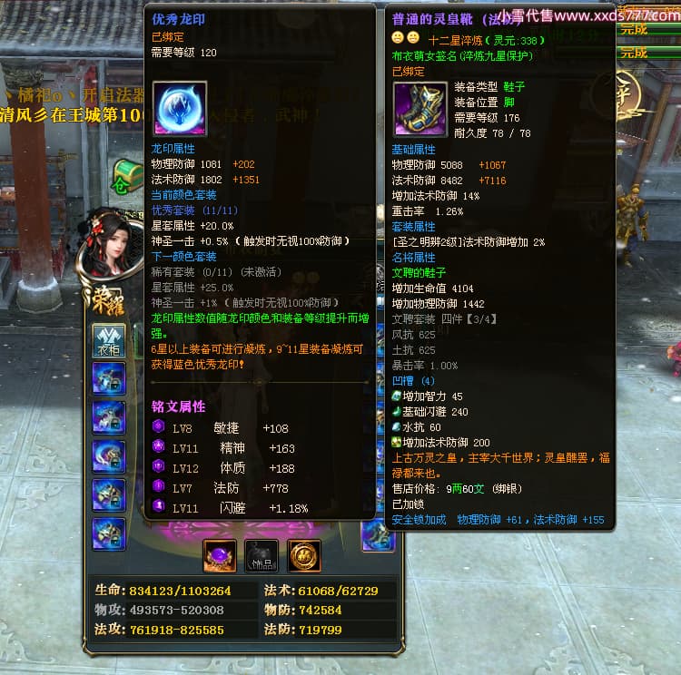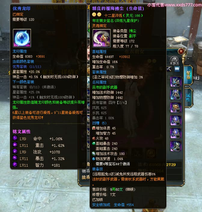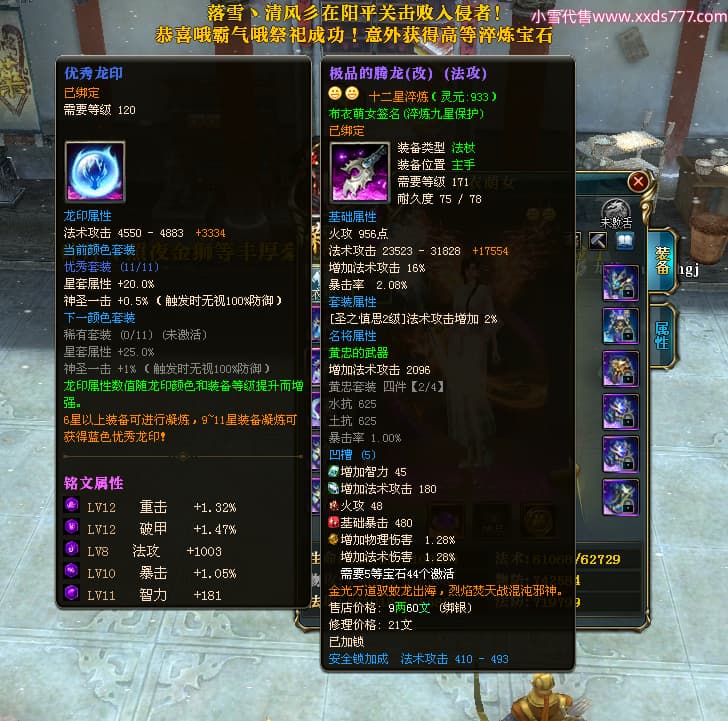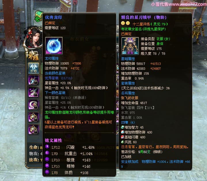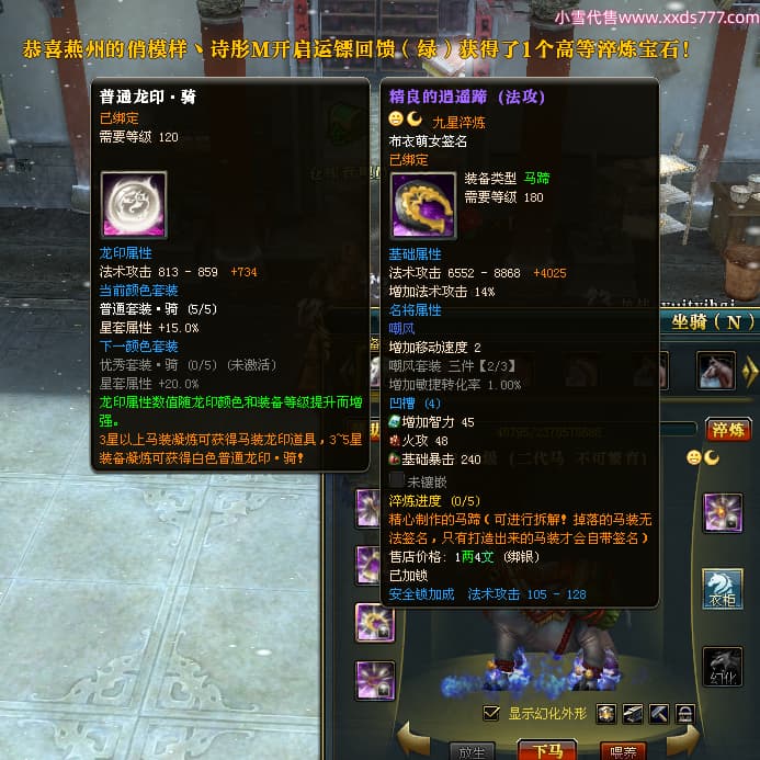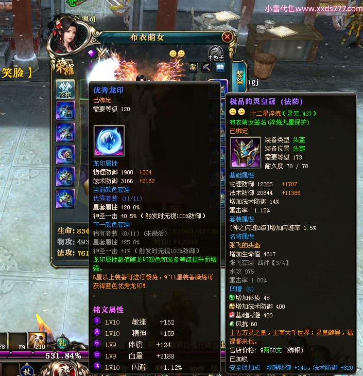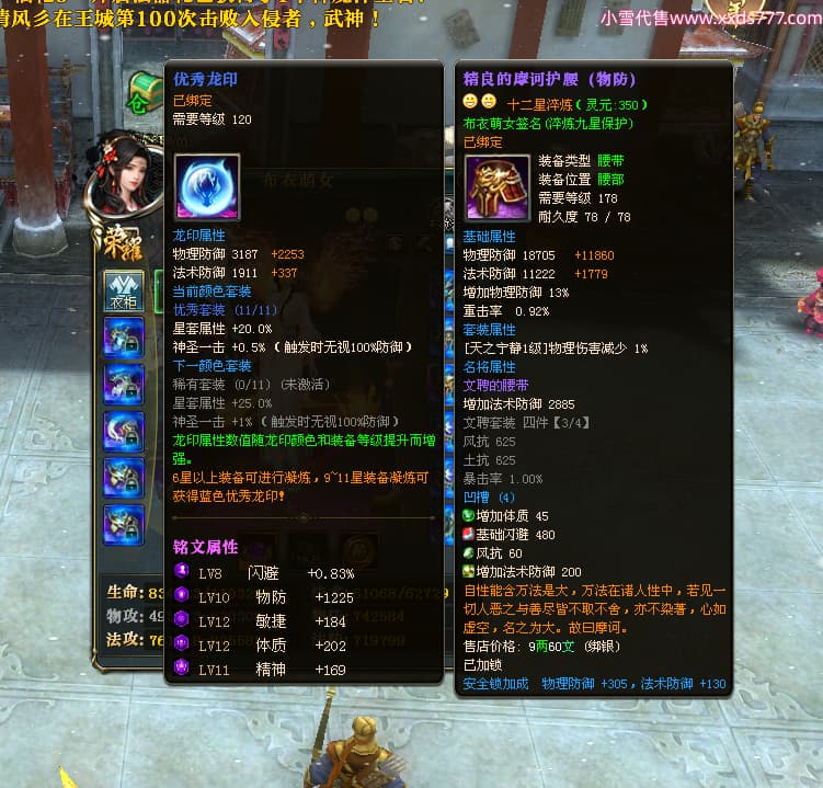 编号L24668 布衣萌女 龙战王者 燕州 1099W战力 人物精良紫12X 马精良紫9X 人物蓝龙印 马白龙印 五等单双属性石头 可以转移百分百安全