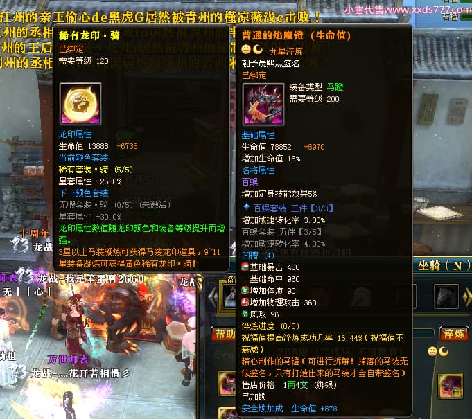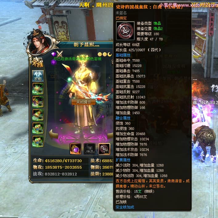 编号L24669 朝予晨熙灬 龙战王者 益州 本国排名9名 4446W战力 人物黄金加强橙15X(5件混沌) 马普通橙9X 人物绿龙印 马黄龙印 六等单双属性石头 已开完永久15星套
