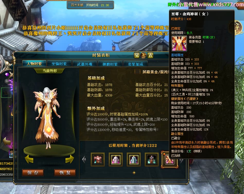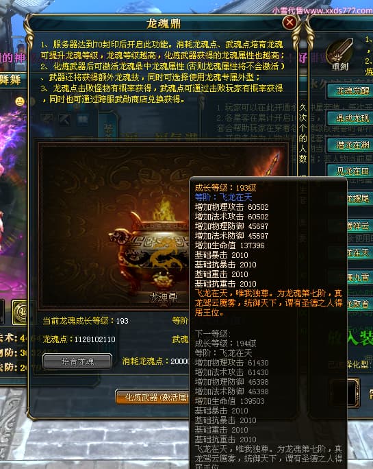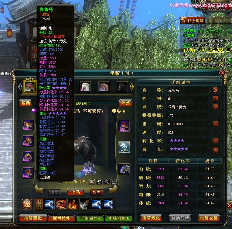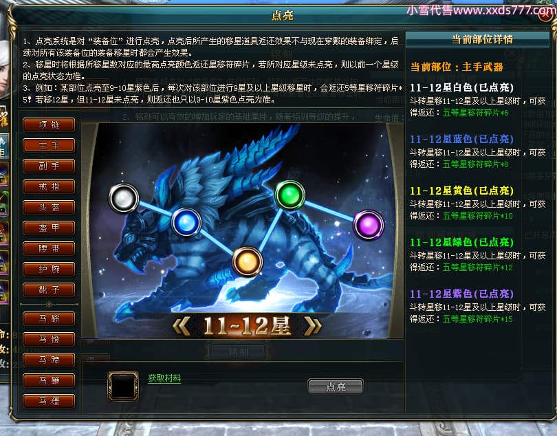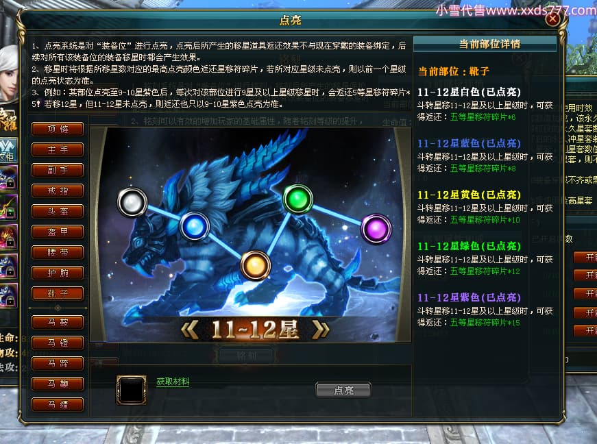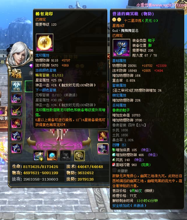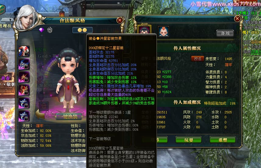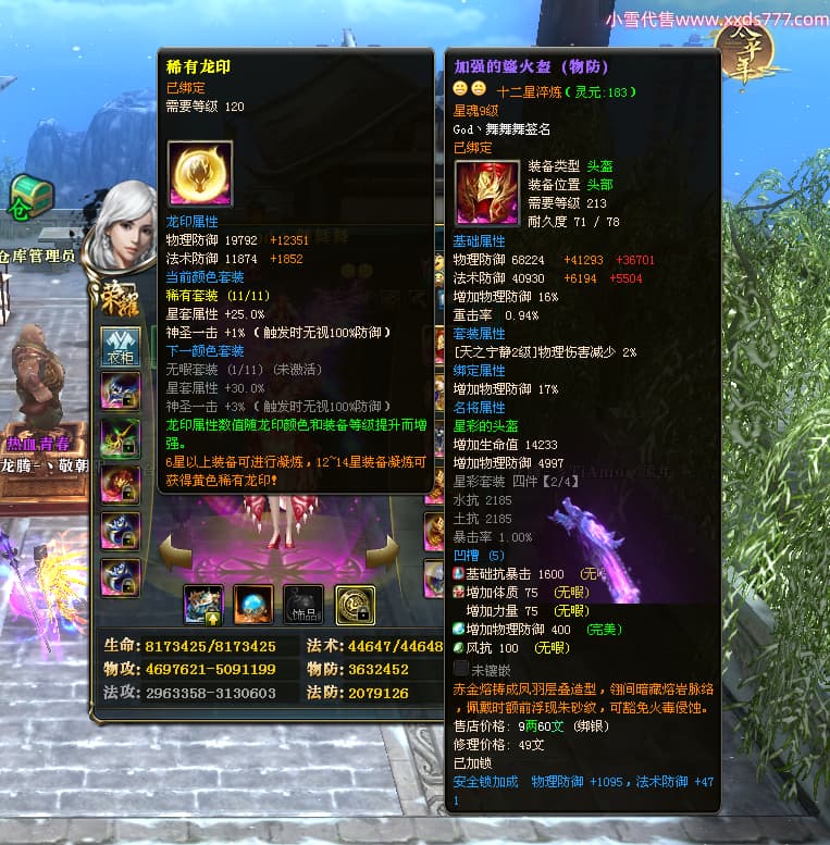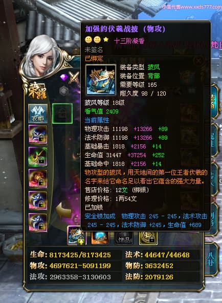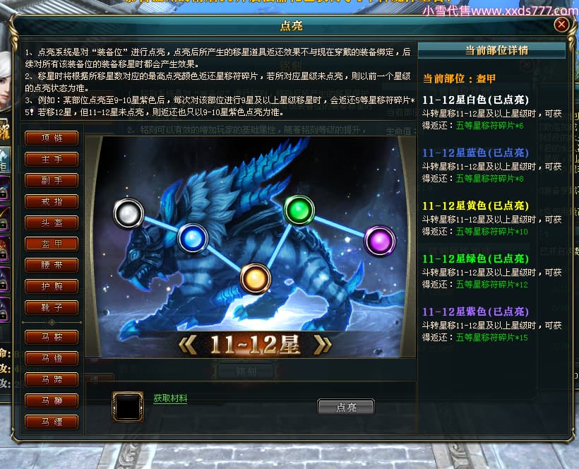 编号T24673 God丶舞舞舞 龙腾问鼎 荆州 5332W战力 人物加强紫12X(2件15X) 传人普通紫12X 副将加强紫12X 马加强紫10X 加强紫13披风 人物星魂8级 马星魂4级 人物铭刻4件13级其余12级 点亮12星 马铭刻1件12级其余10级 点亮10星 人物黄龙印(1件绿龙印) 马蓝龙印 五等单双属性完美无暇神圣石头