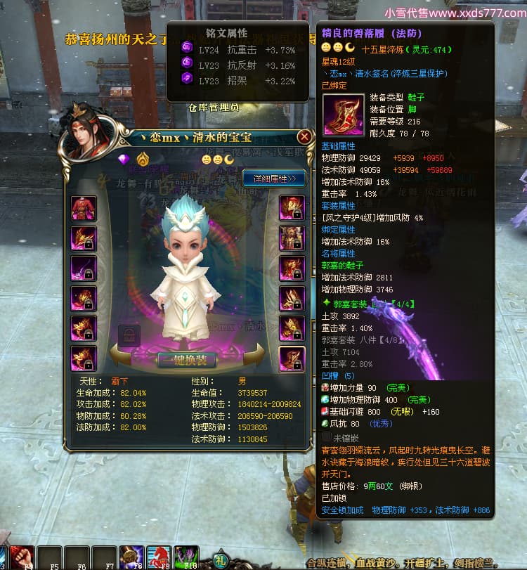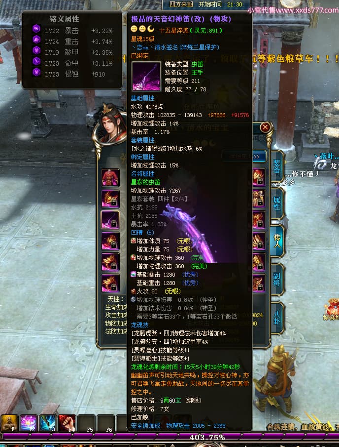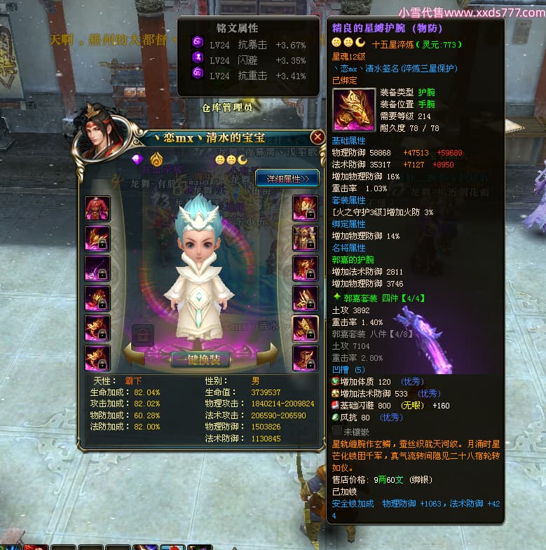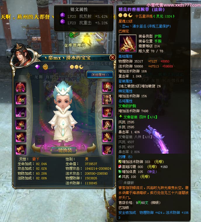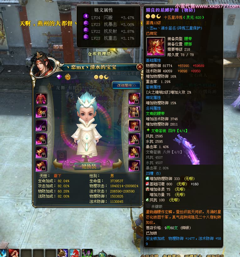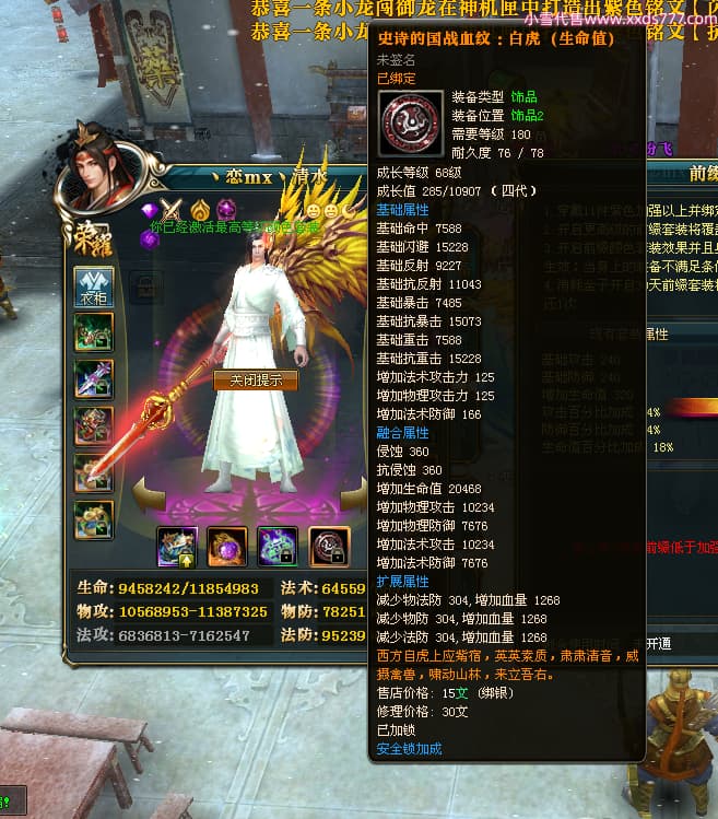 编号W24685 丶恋mx丶清水 龙舞九州 豫州 15281W战力 人物黄金普通橙15X(5件混沌) 传人精良紫15X 副将精良紫12X 马史诗紫12X 精良紫16披风 人物星魂16级 传人星魂12级 副将星魂6级 马星魂12级 人物铭刻3件16级其余15级 人物点亮16星 马铭刻1件13级其余12级 点亮1件14星其余12星 人物绿龙印(1件紫龙印) 马黄龙印 五六等单双属性完美无暇神圣石头 蓝孔