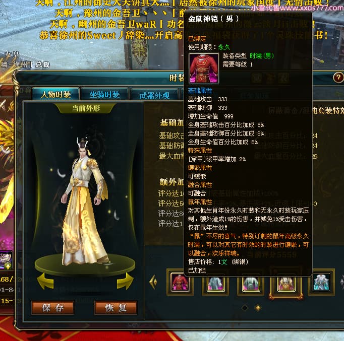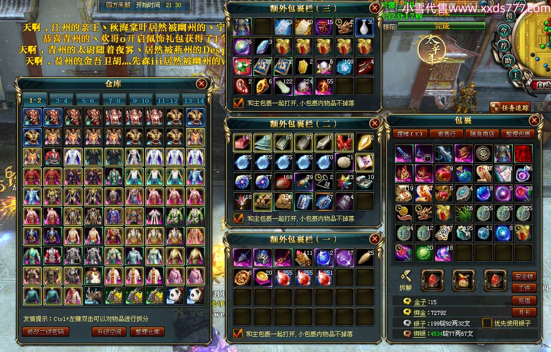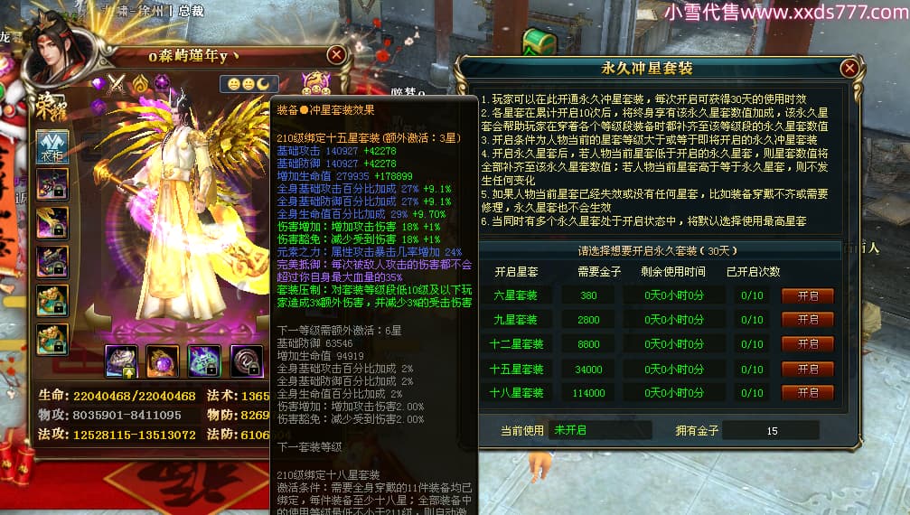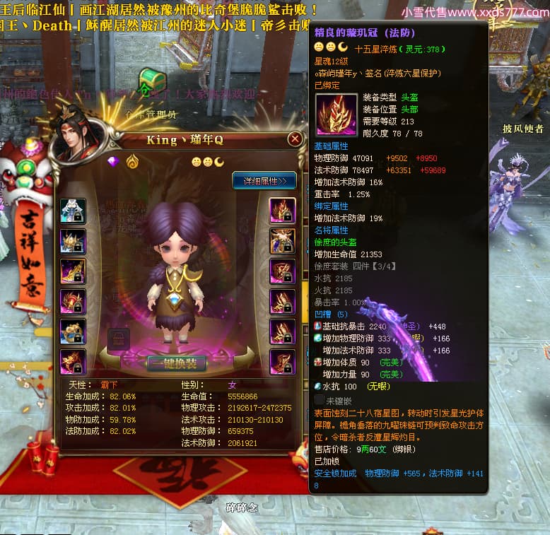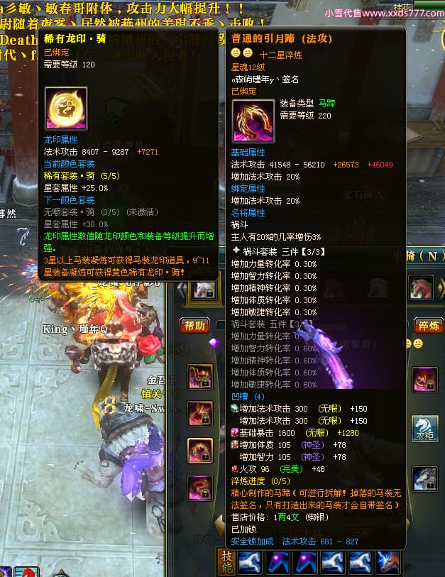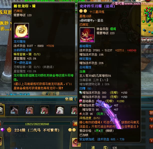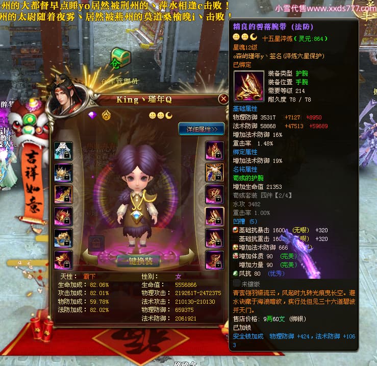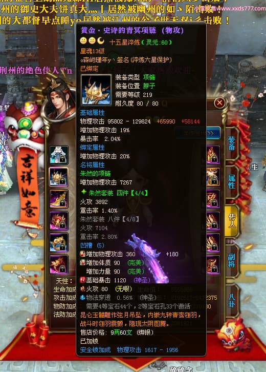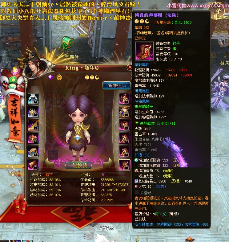 编号X24689 o森屿瑾年y丶 龙啸风云 徐州 本国排名22名 19500W战力 人物黄金史诗紫15X(5件混沌) 传人精良紫15X 副将精良紫12X 马史诗紫12X 极品紫15披风 人物星魂16级 传人星魂12级 副将星魂6级 马星魂12级 人物铭刻1件16级其余15级 人物点亮7件16星其余14星 马铭刻13级 点亮12星 人物绿龙印 马黄龙印 五六等单双属性神圣完美优秀石头 黄蓝孔