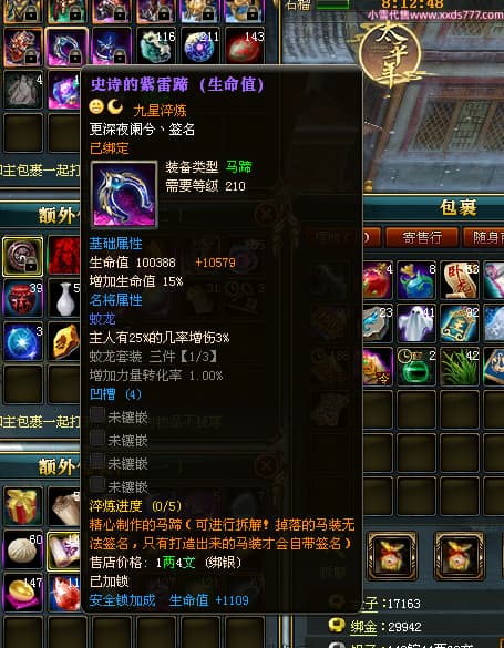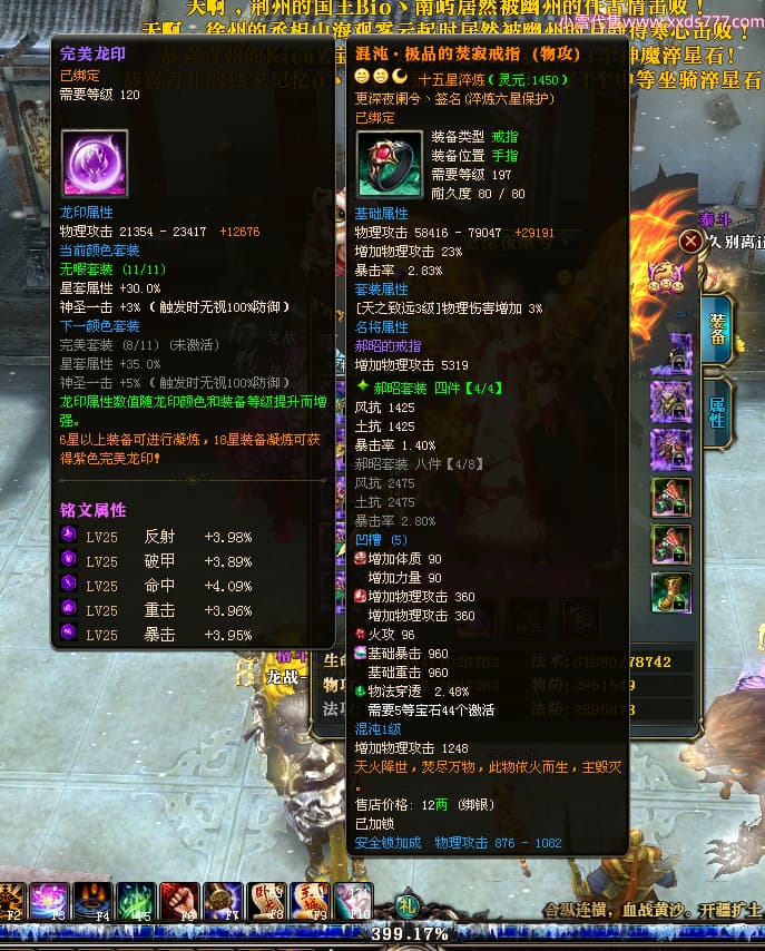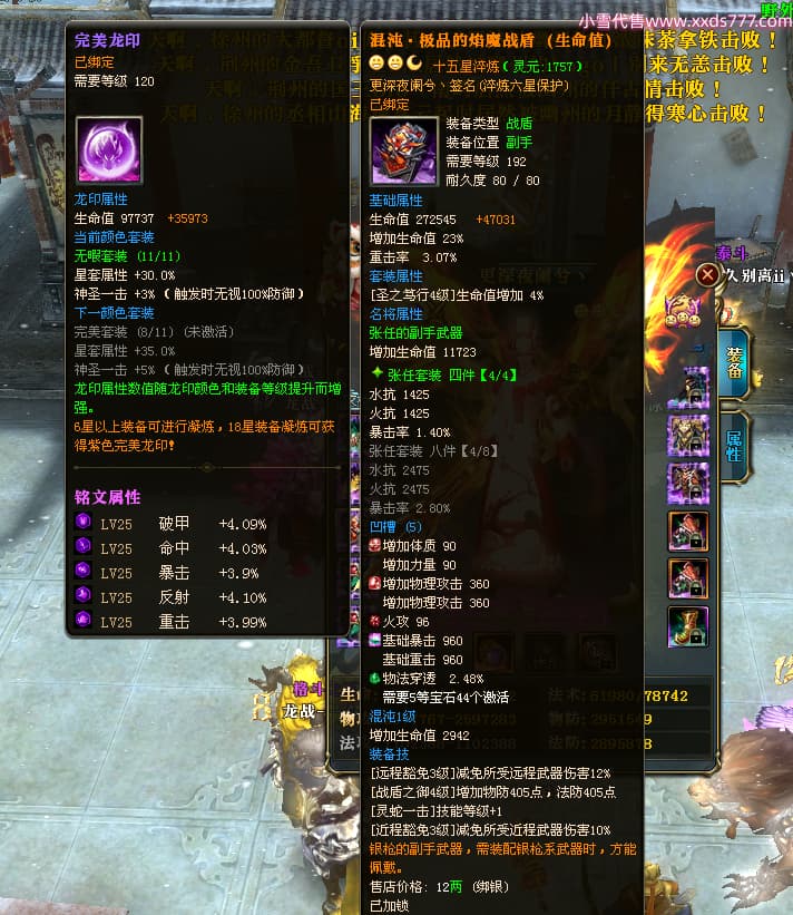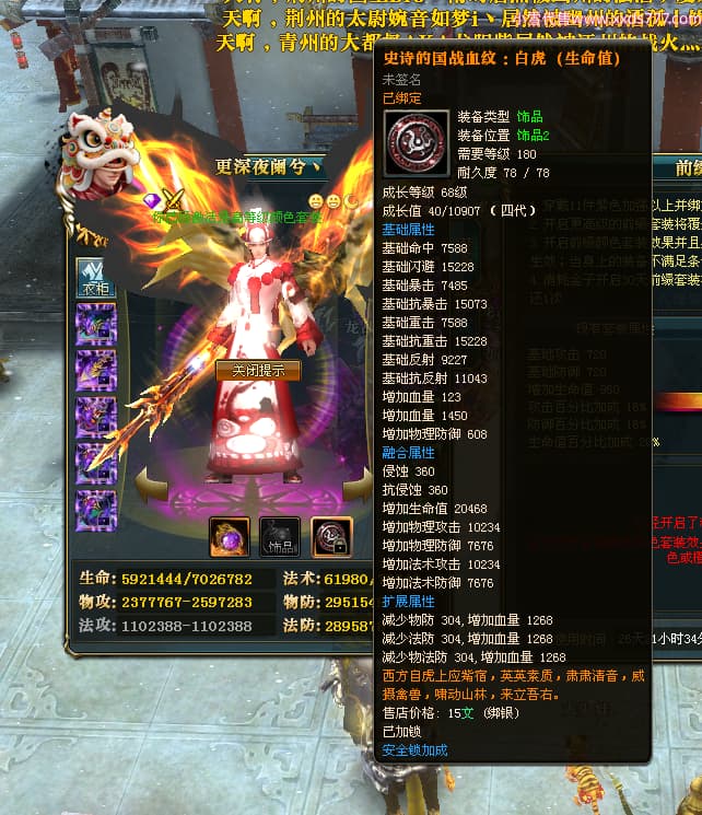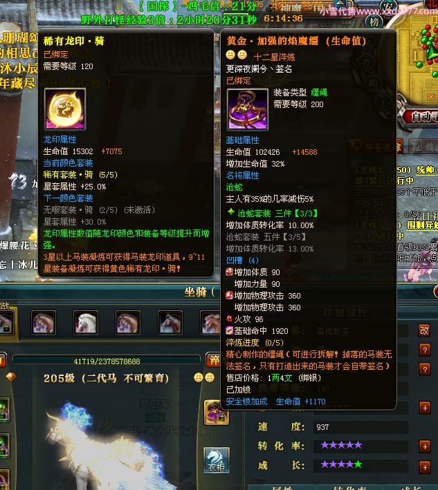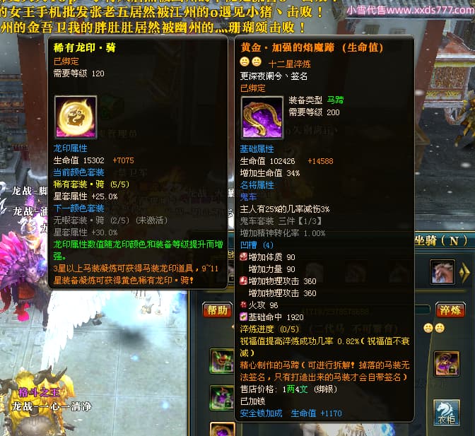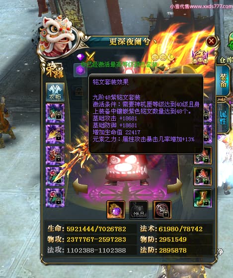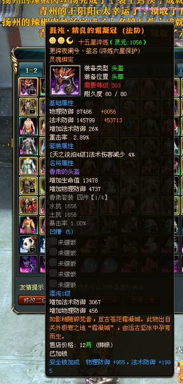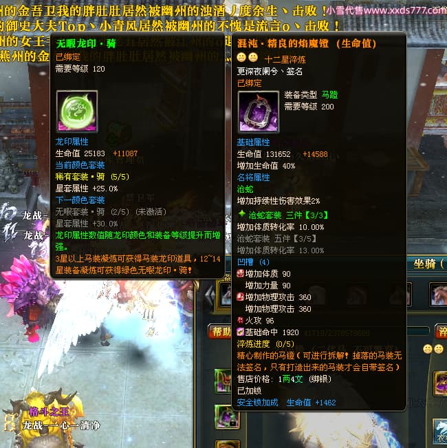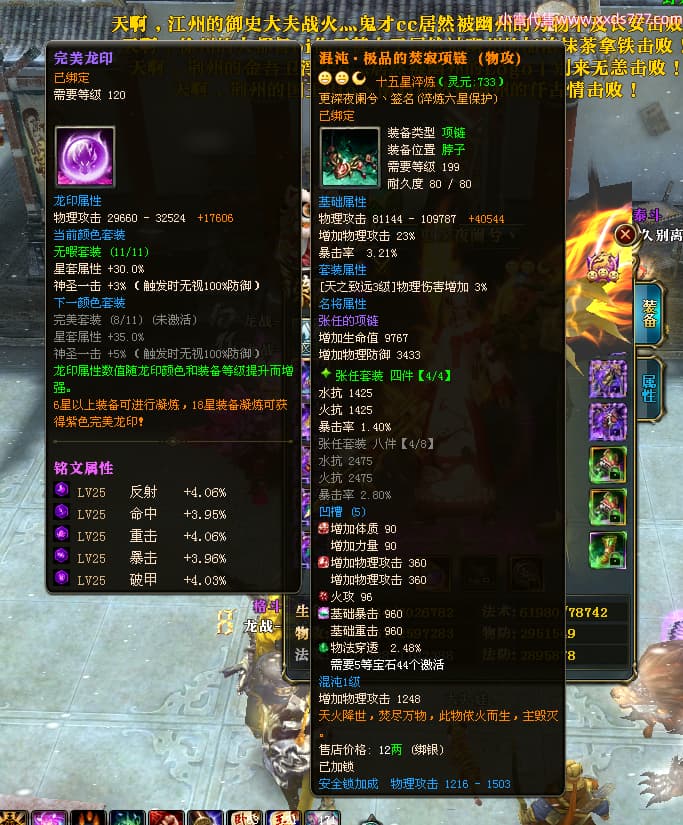 编号L24693 更深夜阑兮丶 龙战王者 荆州 世界排名79名 6103W战力 人物黄金精良橙15X(8件混沌) 马黄金加强橙12X 人物绿龙印(8件紫龙印) 马黄龙印(2件绿龙印) 六等单双属性石头 已开2次永久15星套