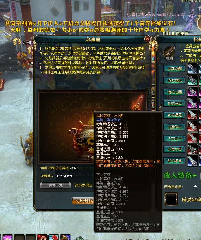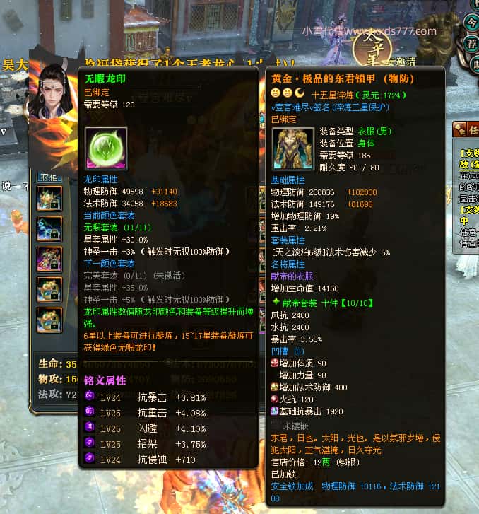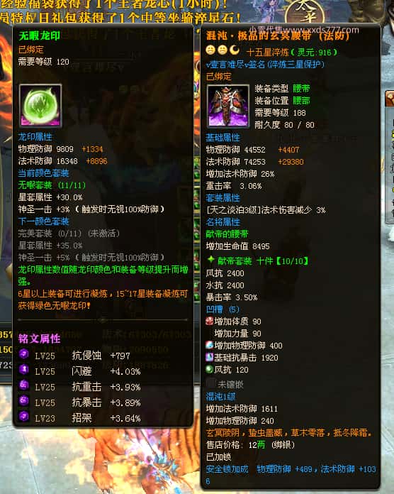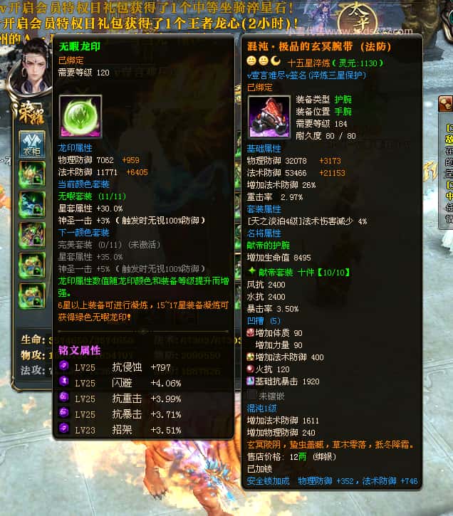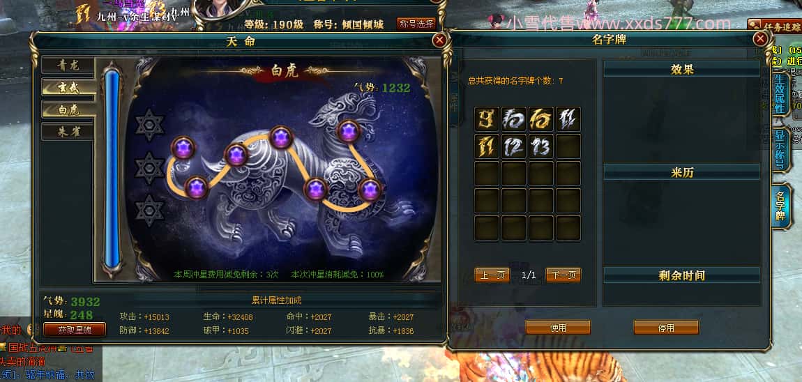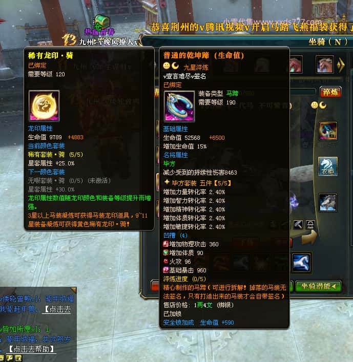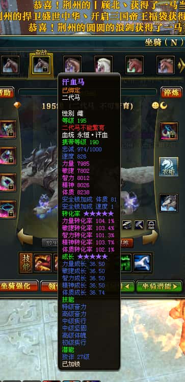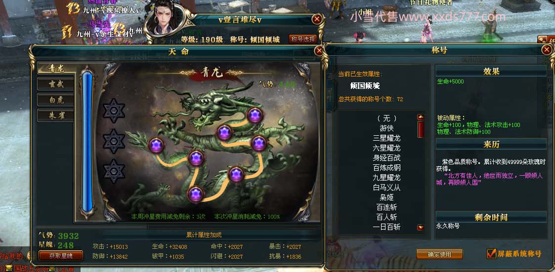 编号J24694 v壹言难尽v 九州龙虎 荆州世界第85名 3632W战力 人物黄金极品紫15X(6件混沌) 马普通橙9X 人物绿龙印 马黄龙印 六等单双属性石头 开了2次永久15星套装 可以转移百分百安全