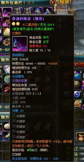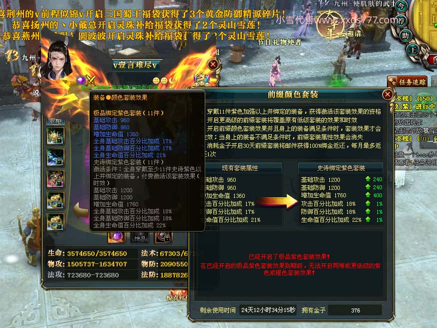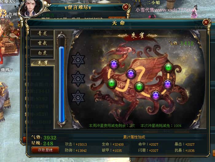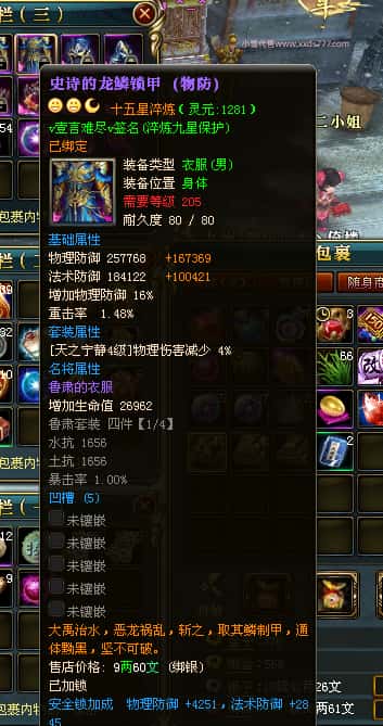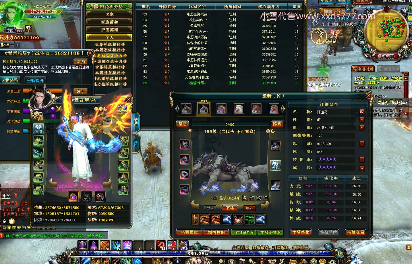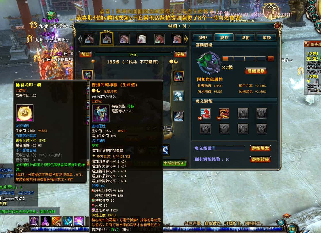 编号J24694 v壹言难尽v 九州龙虎 荆州世界第85名 3632W战力 人物黄金极品紫15X(6件混沌) 马普通橙9X 人物绿龙印 马黄龙印 六等单双属性石头 开了2次永久15星套装 可以转移百分百安全