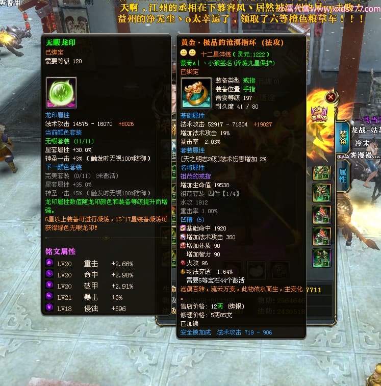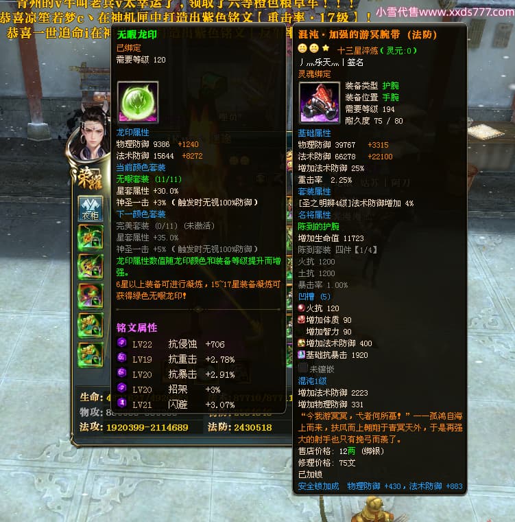 编号L24700 iKun丶迷途 龙战王者 青州 本国排名76名 4497战力 人物黄金加强橙12X(6件15X5件混沌) 马普通橙10X 人物绿龙印 马黄龙印 六等单双属性石头 已开启永久15星套