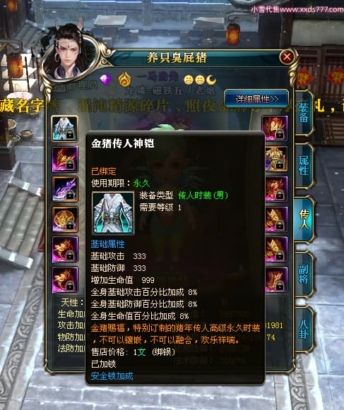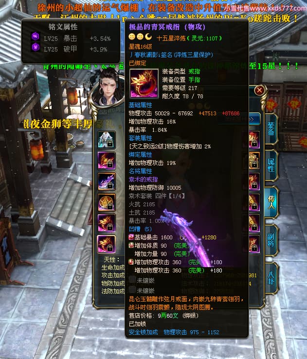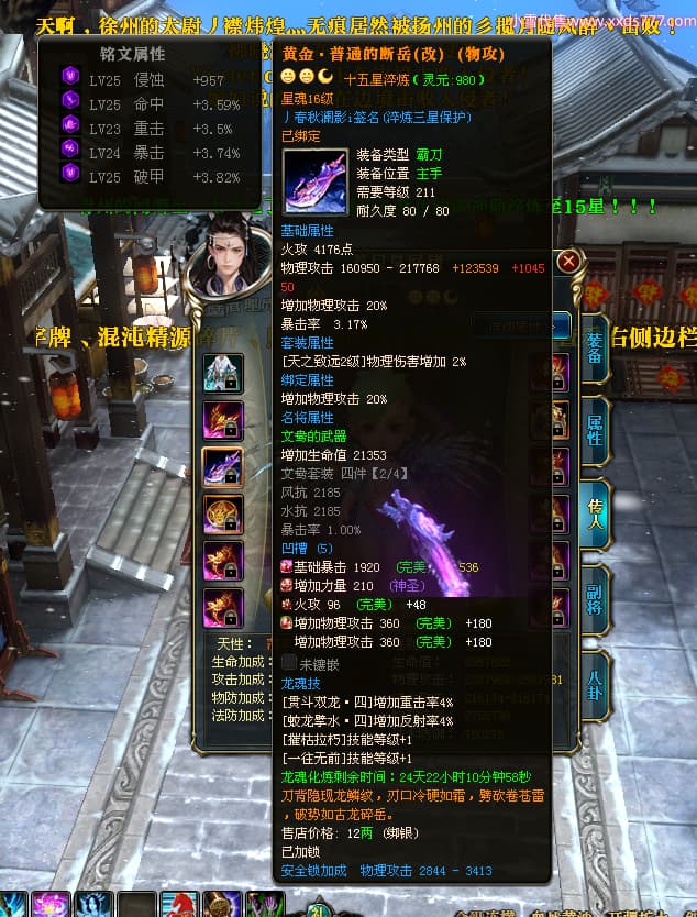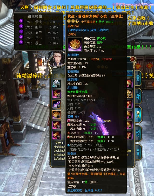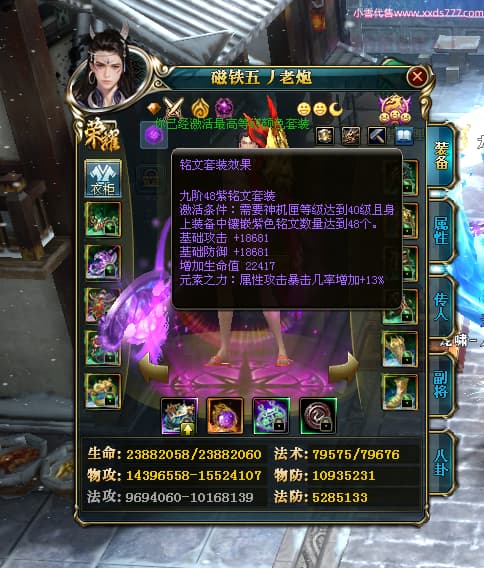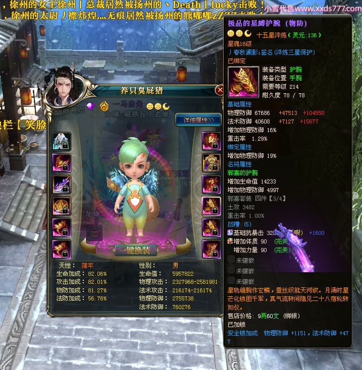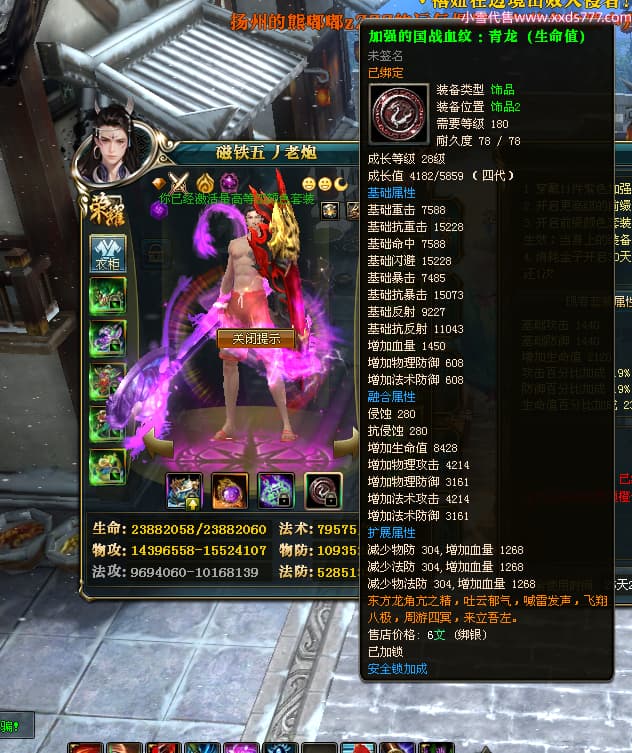 编号X24701 磁铁五丿老炮 龙啸风云 豫州 世界排名101名 23121W战力 人物黄金普通橙15X(3件18X6件混沌) 传人极品紫15X 副将精良紫12X 马加强橙12X 极品紫12披风 人物星魂16级 传人星魂16级 副将星魂6级 马星魂16级 人物铭刻4件16级其余15级 人物点亮7件16星其余14星 马铭刻13级 点亮12星 人物绿龙印 马黄龙印 五六等单双属性神圣完美无暇石头 蓝孔 已开启永久15星套