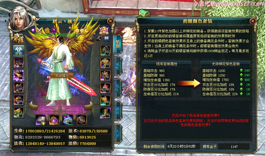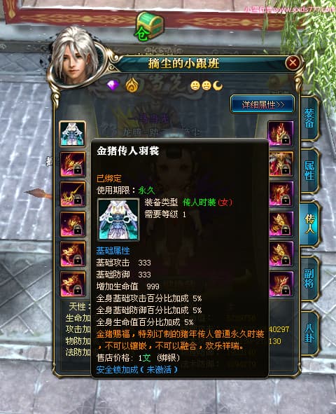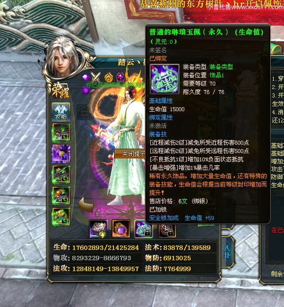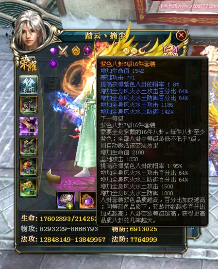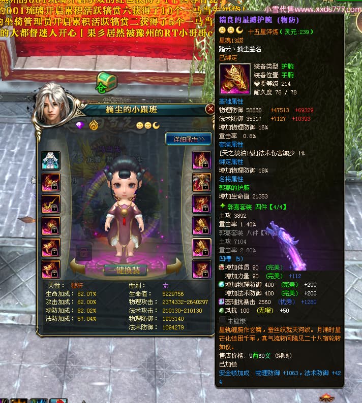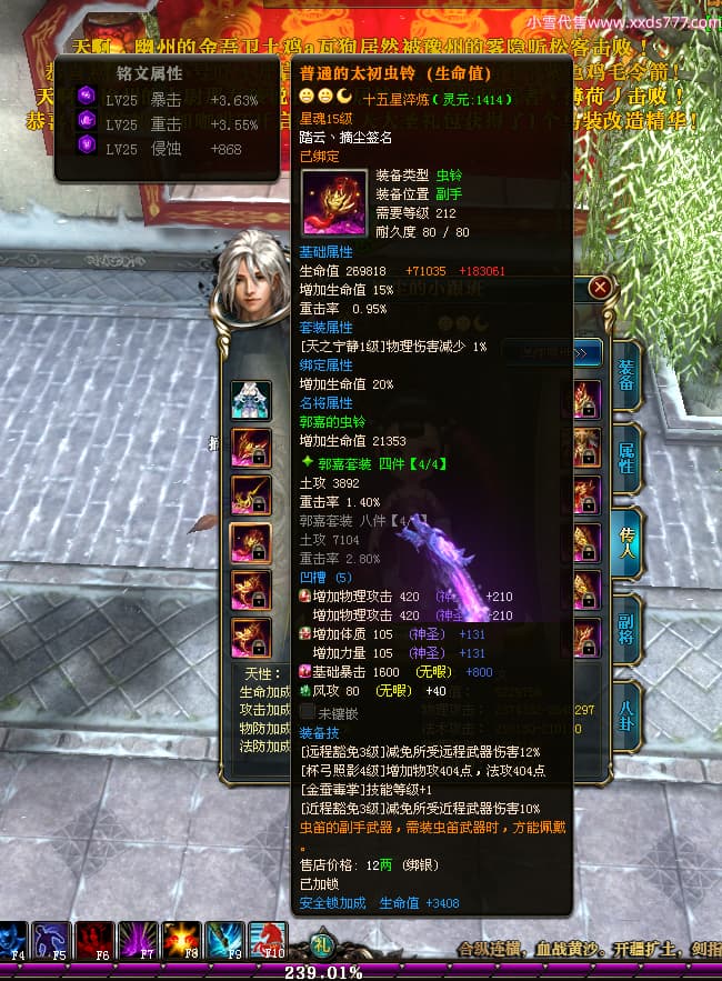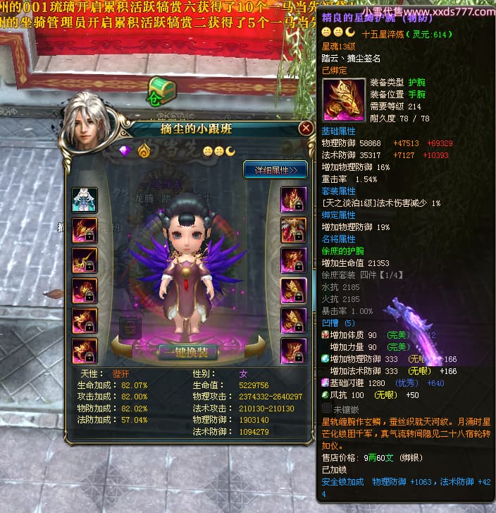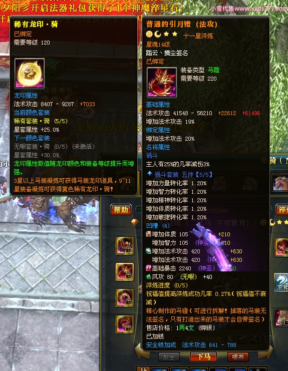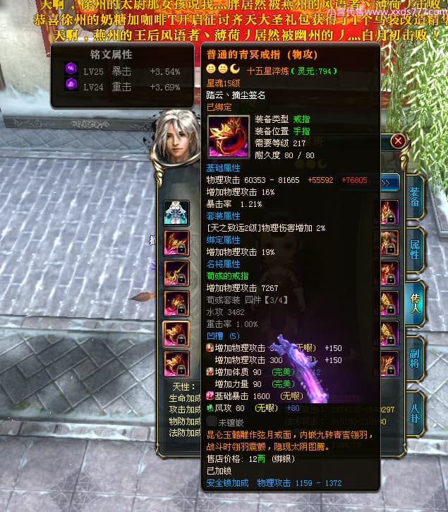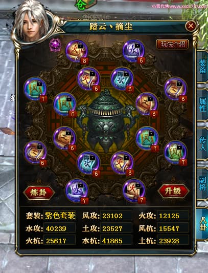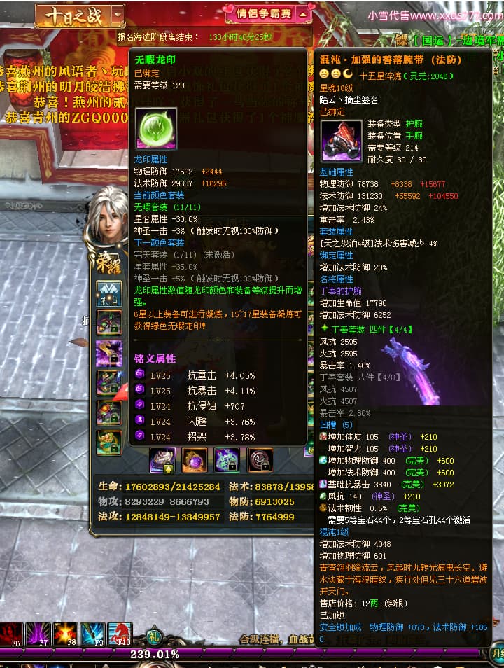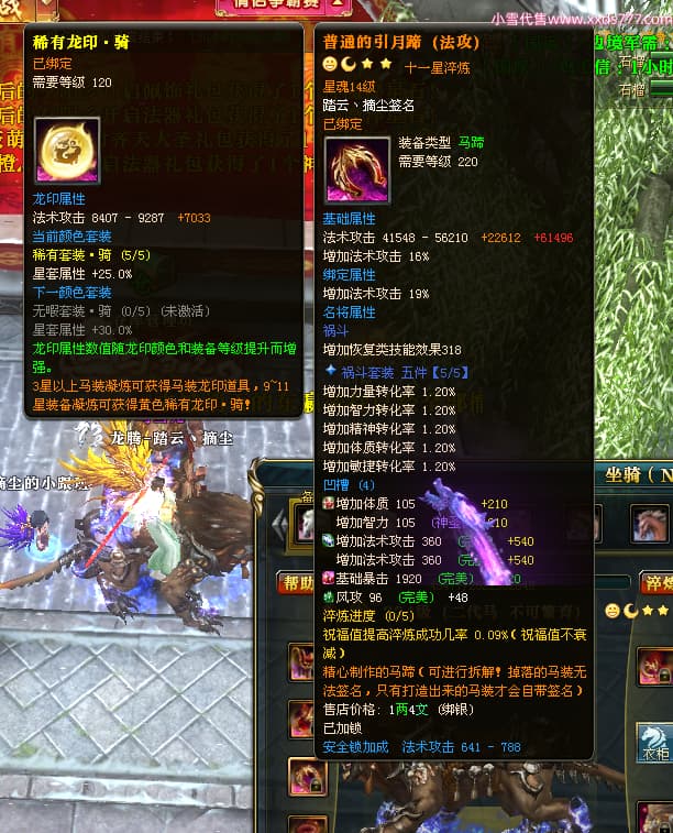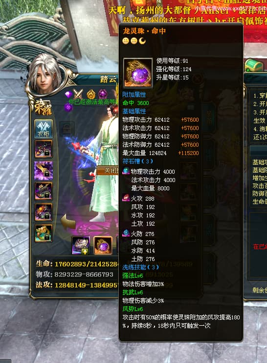 编号T24702 踏云丶摘尘 龙腾问鼎 荆州 本国排名41名 19567W战力 人物黄金通加强15X(6件混沌) 传人精良紫15X 副将极品紫12X 马普通橙11X 精良紫15披风 人物星魂16级 传人星魂13级 副将星魂6级 马星魂14级 人物铭刻1件17级其余15级 点亮16星 马铭刻15级 点亮12星 人物绿龙印(1件紫龙印) 马黄龙印 五六等单双属性完美无暇神圣石头 黄孔