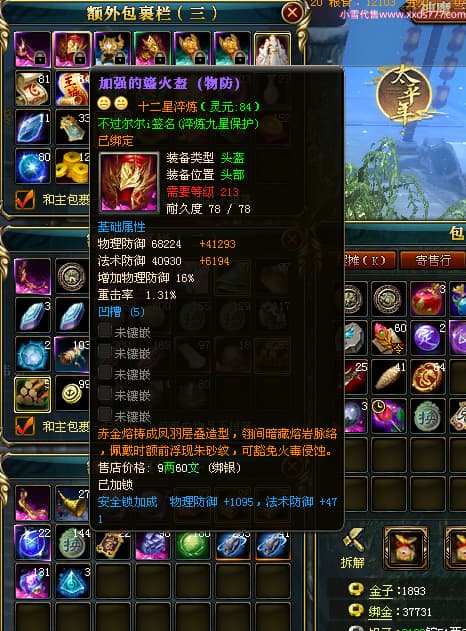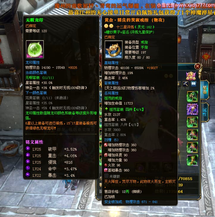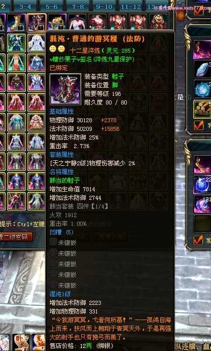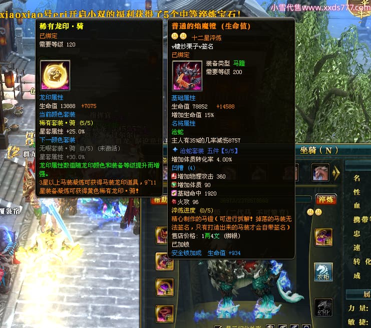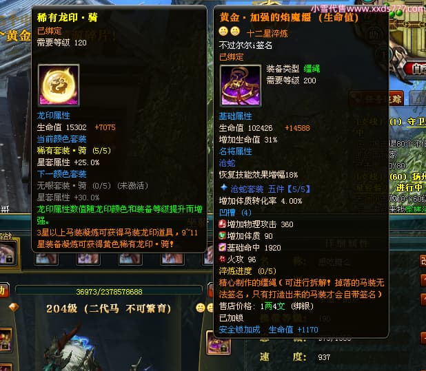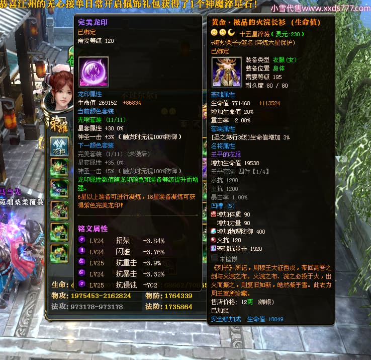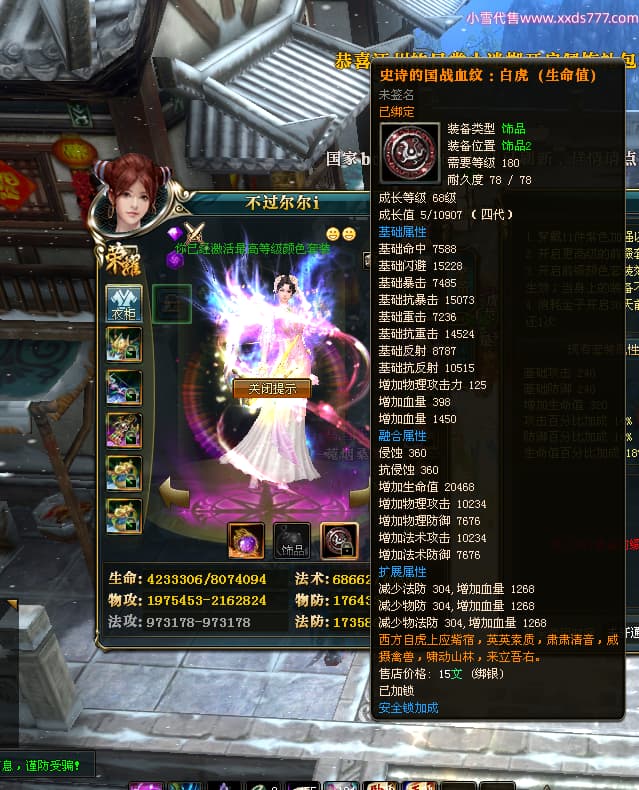 编号Q24704 不过尔尔i 群龙纵横 幽州 本国排名21名 5016W战力 人物黄金加强橙12X(4件15X5件混沌) 马普通橙12X 人物绿龙印(1件紫龙印) 马黄龙印 六等单双属性石头 已开完永久15星套