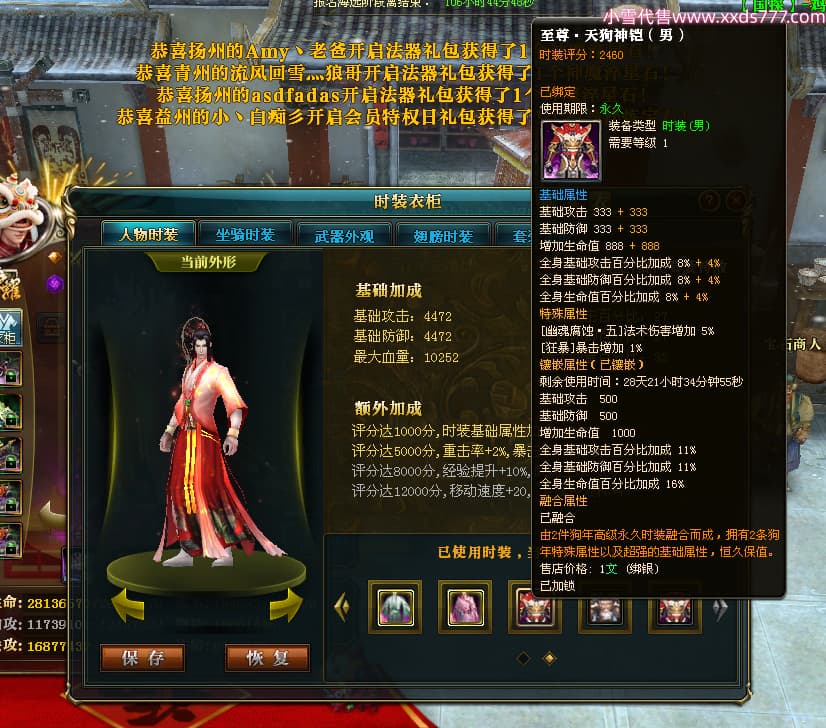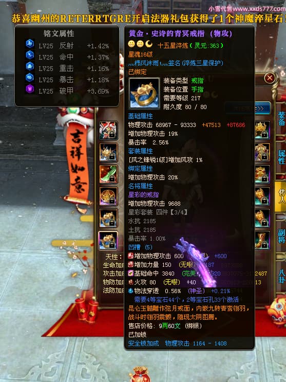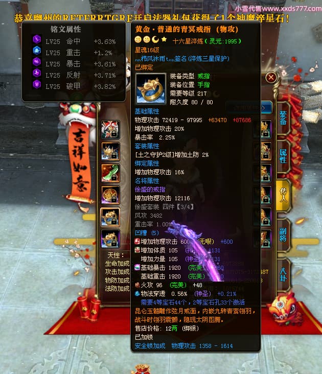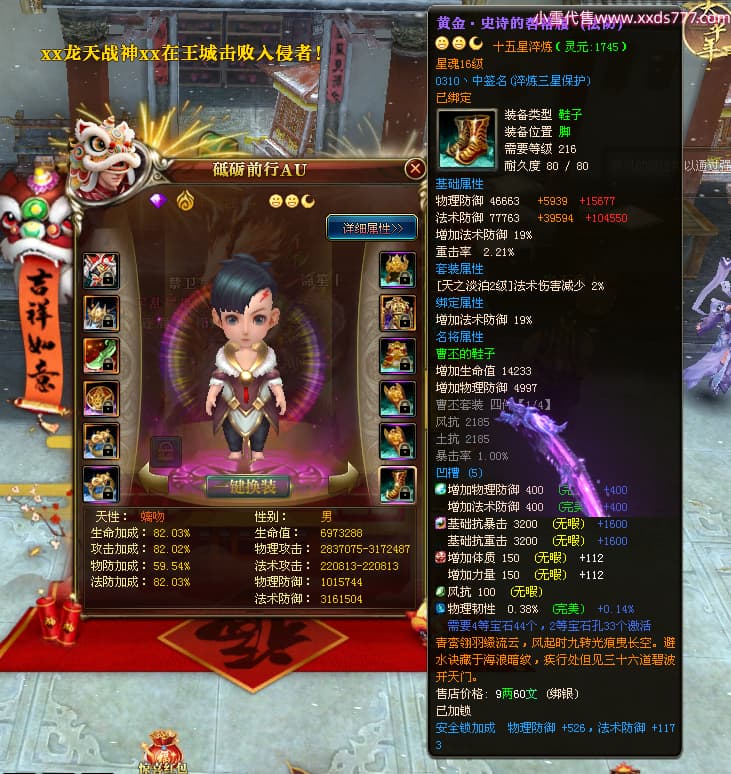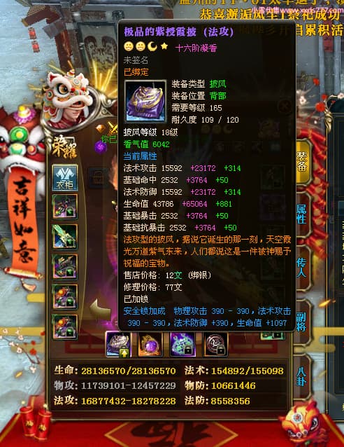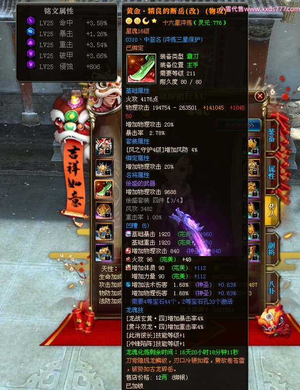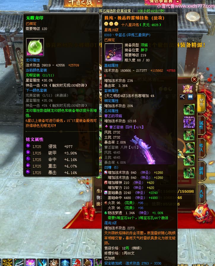 编号Z24718 灬栉风沐雨t灬 逐鹿天下 徐州 世界排名34名 29006W战力 人物黄金极品橙16X(4件18X10件混沌) 传人黄金史诗紫15X 副将精良紫12X 马黄金精良橙13X 极品紫16披风 人物星魂16级 传人星魂16级 副将星魂6级 马星魂16级 人物铭刻3件18级1件16级其余15级 人物点亮2件18星其余16星 马铭刻13级 点亮3件14星其余12星 人物绿龙印(1件紫龙印) 马黄龙印 六等单双属性神圣完美无暇石头 黄绿孔 已开4次永久15星套