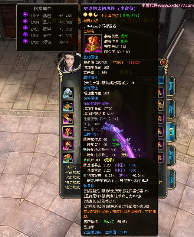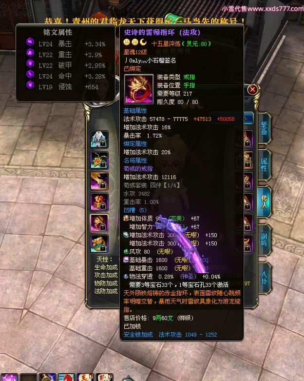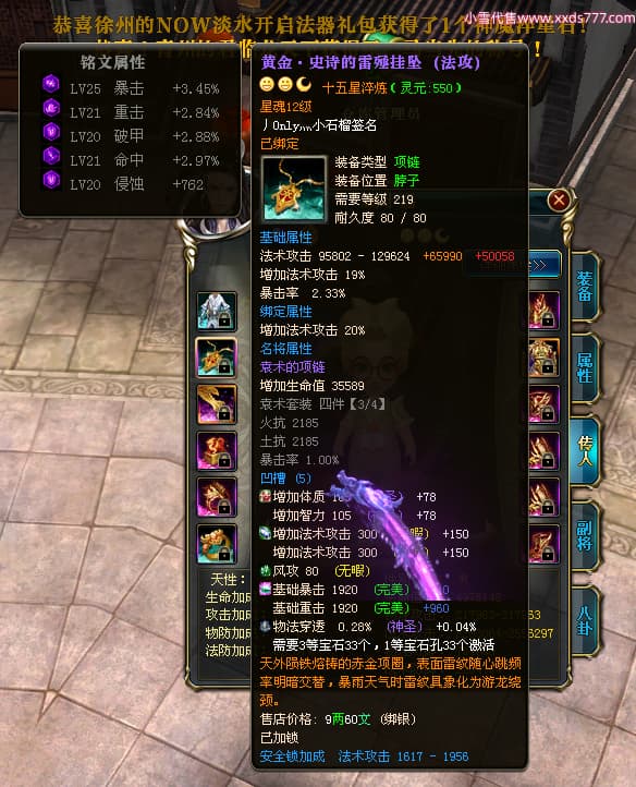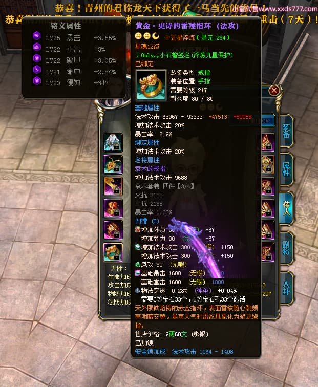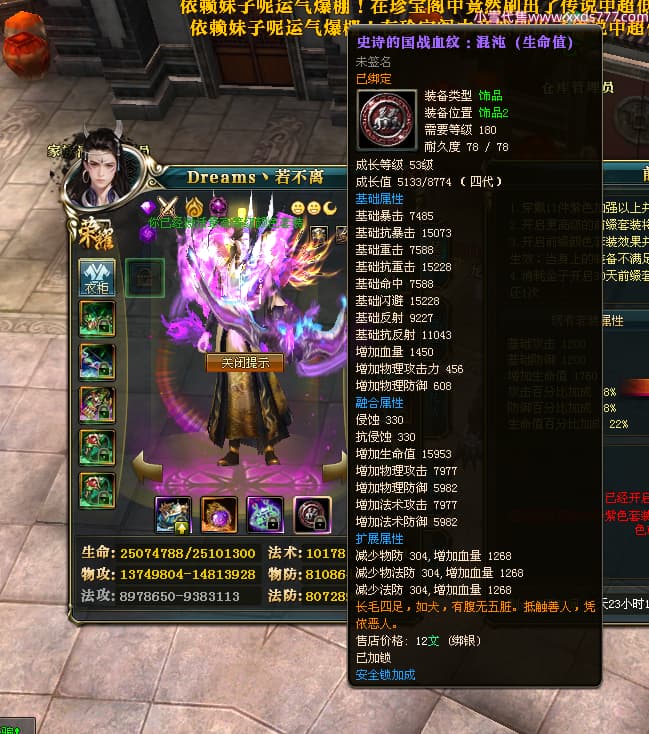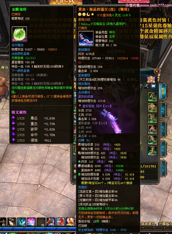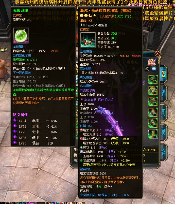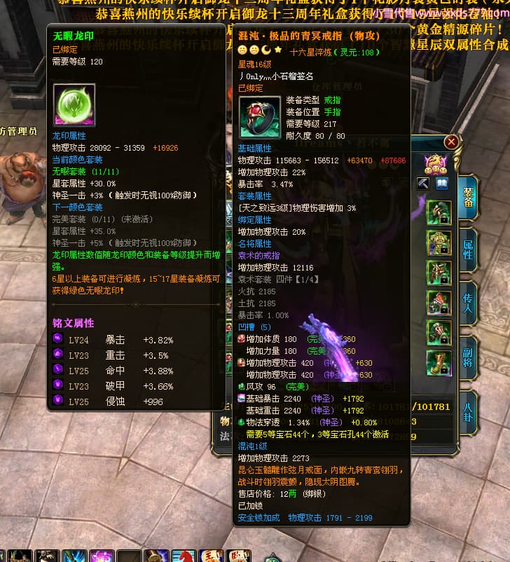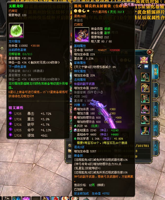 编号X24721 Dreams丶若不离 龙啸风云 益州 本国排名27名 22887W战力 人物黄金普通橙16X(1件18X8件混沌) 传人史诗紫15X 副将史诗紫12X 马加强橙12X 精良紫15披风 人物星魂16级 传人星魂11级 副将星魂6级 马星魂15级 人物铭刻15级 点亮5件16星其余14星 马铭刻12级 点亮12星 人物绿龙印 马黄龙印 六等单双属性神圣完美无暇石头 黄绿孔 可以转移百分百安全