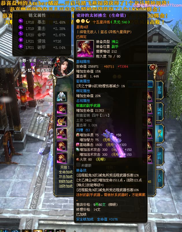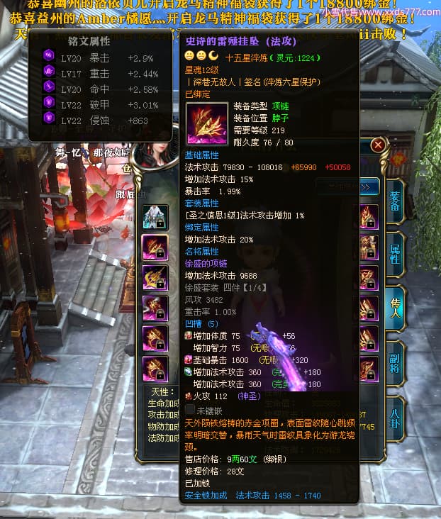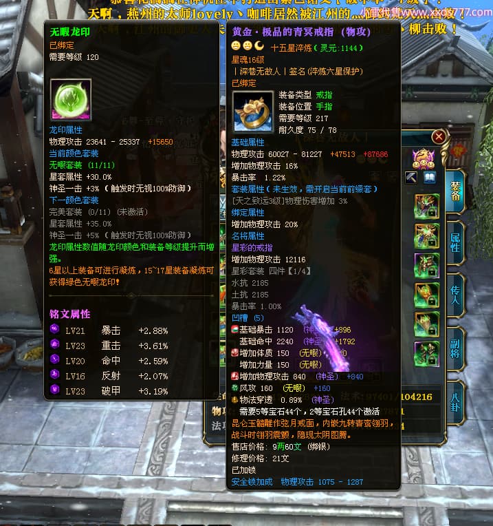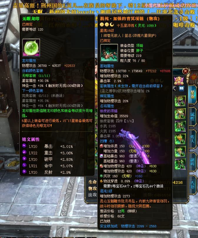 编号W24723 丨深巷无故人丨 龙舞九州 青州 本国排名70名 14052W战力 人物黄金普通橙15X(4件混沌) 传人史诗紫12X 副将精良紫12X 马史诗紫10X 精良紫15披风 人物星魂16级 传人星魂8级 副将星魂6级 马星魂10级 人物铭刻15级 差一件戒指点亮16星 马铭刻12级 点亮10星 人物绿龙印 马黄龙印 六等单双属性神圣完美无暇石头 黄蓝孔